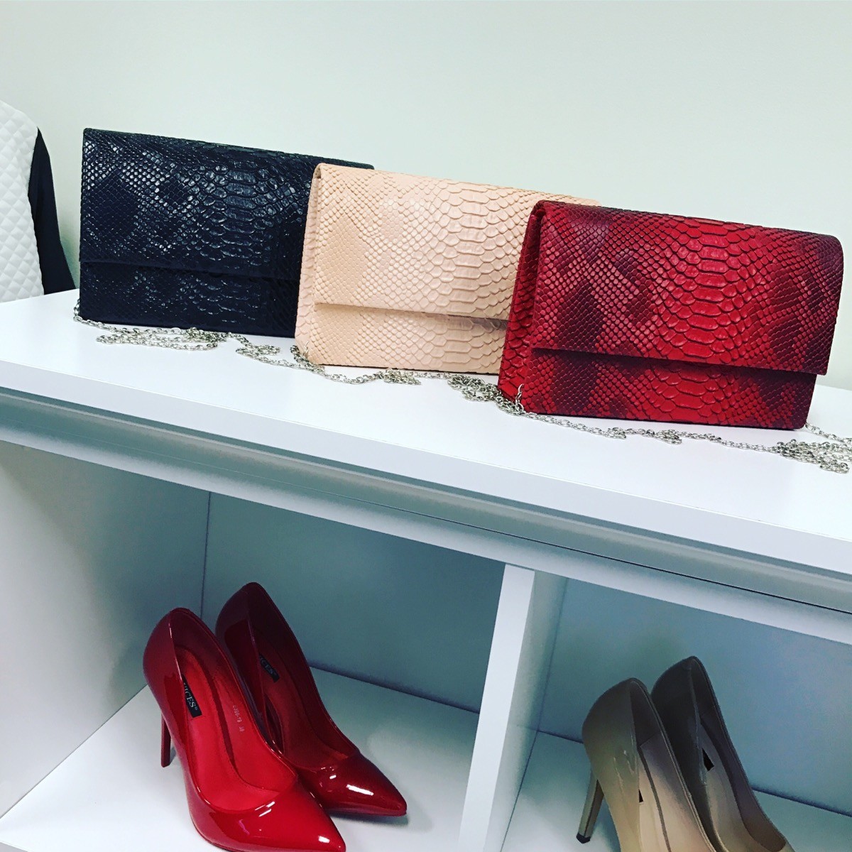 Clutch bag with modest snake pattern (Red)