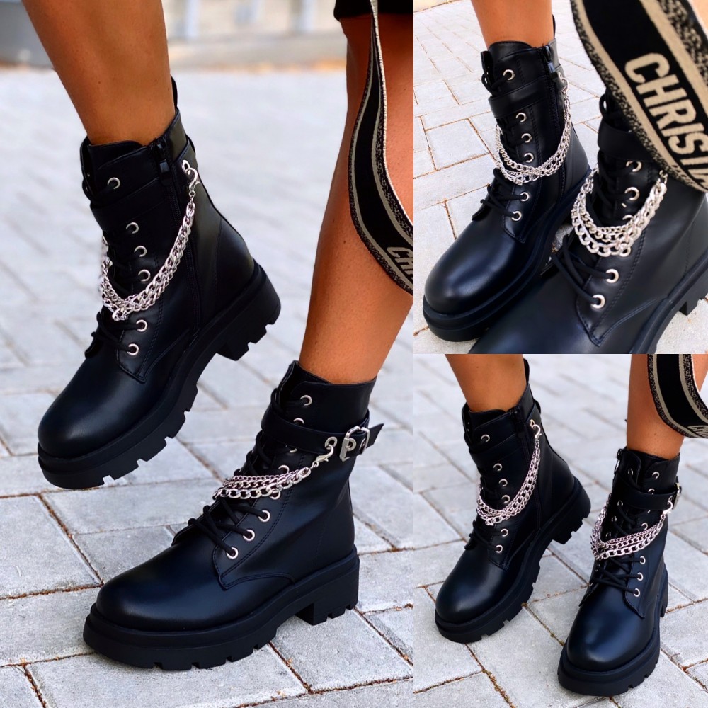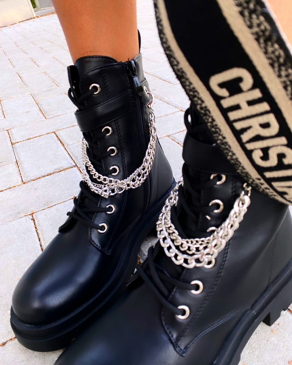 Hõbedase ketiga mugavad saapad (Must, 38)