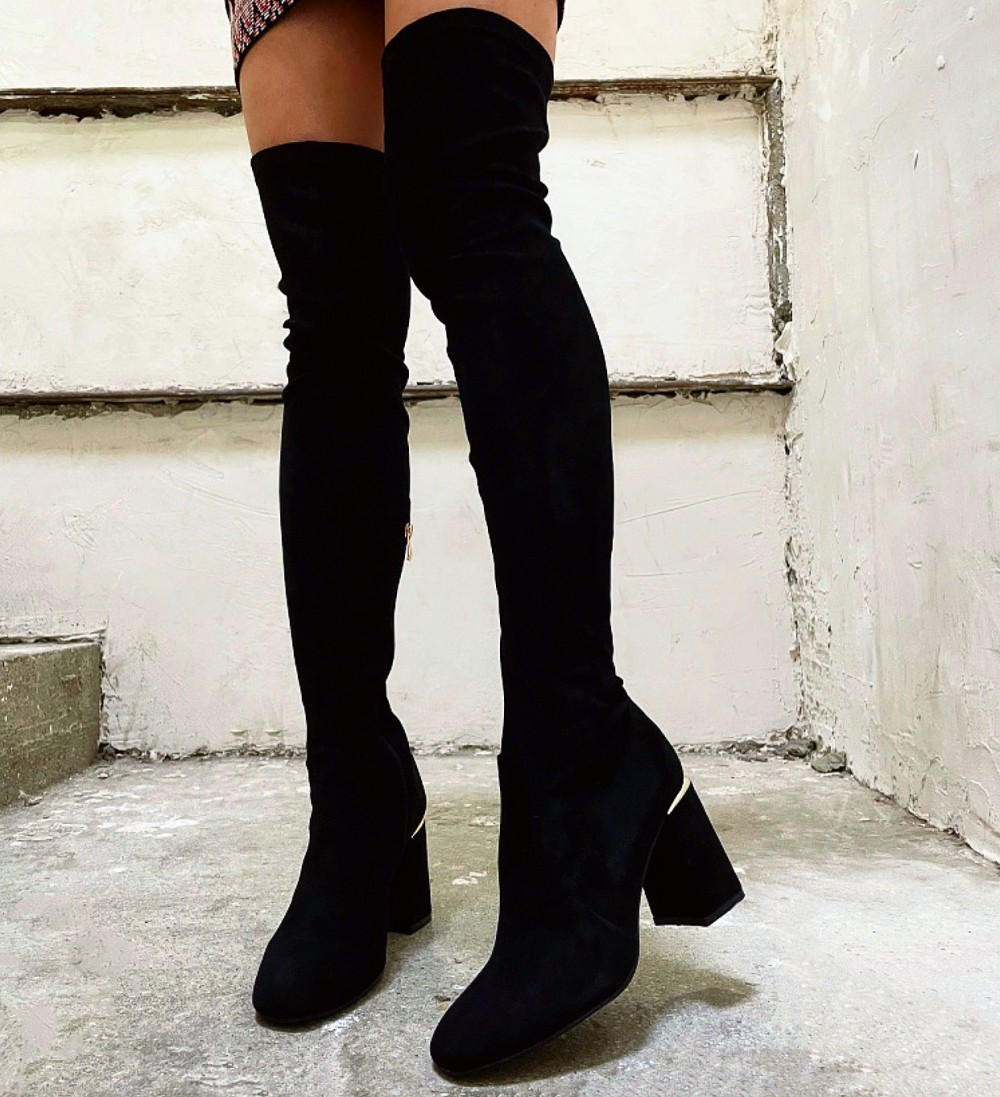 Plokk-kontsaga ülepõlve saapad (Must, 39)