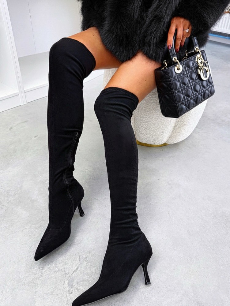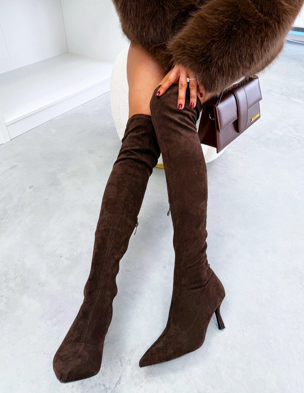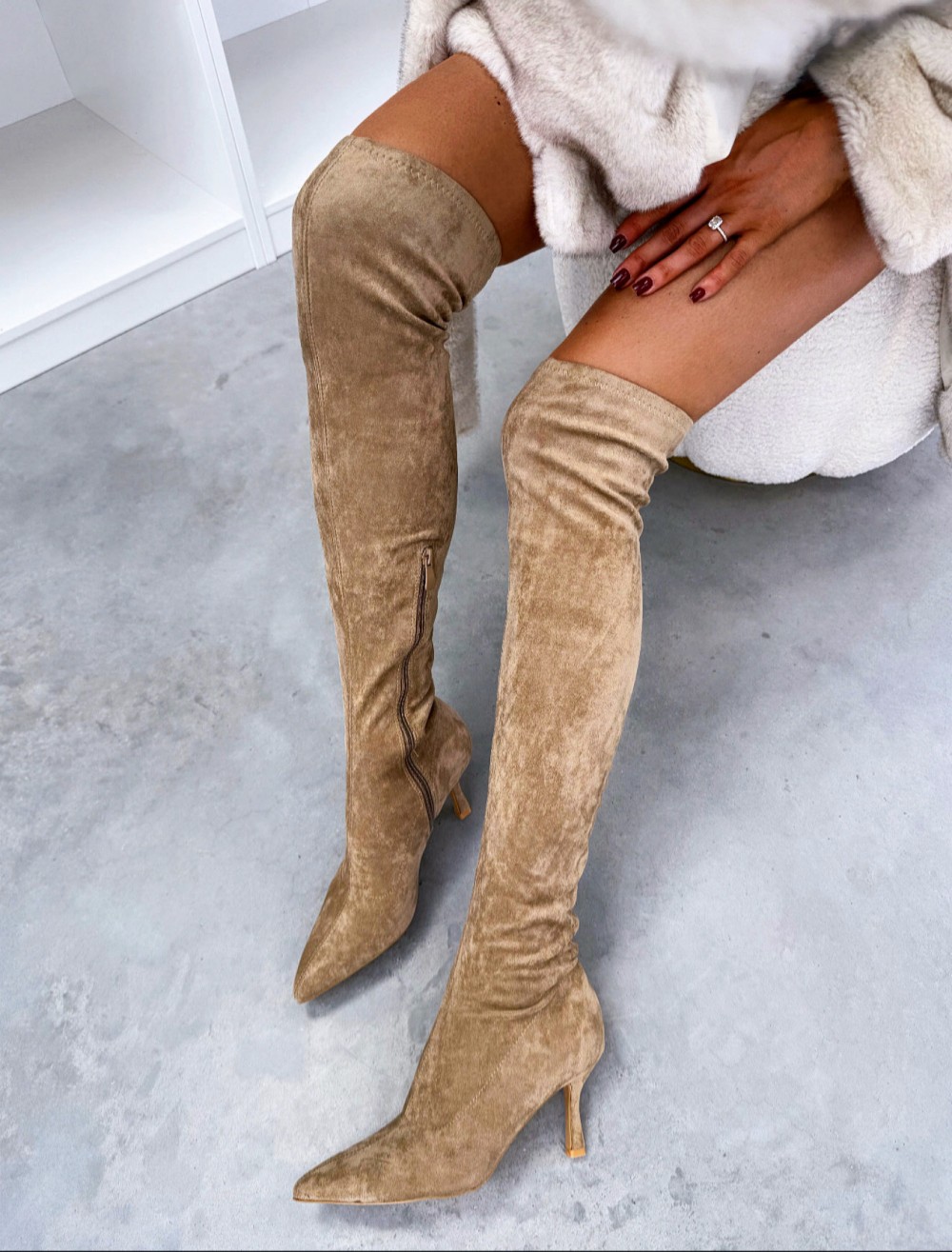 Seemisnahksed kontsaga ülepõlvesaapad (Beež, 38)