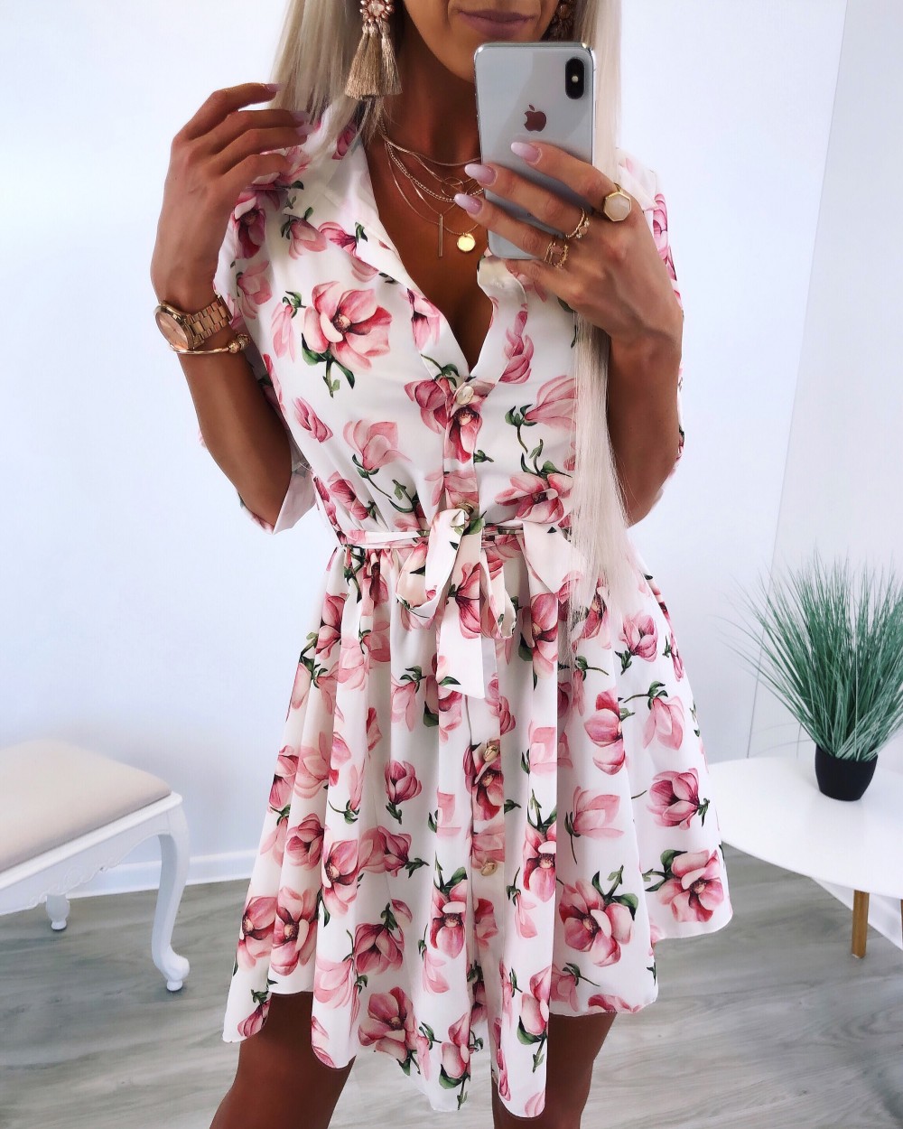 Lilleline vööga kleit (Üks suurus)