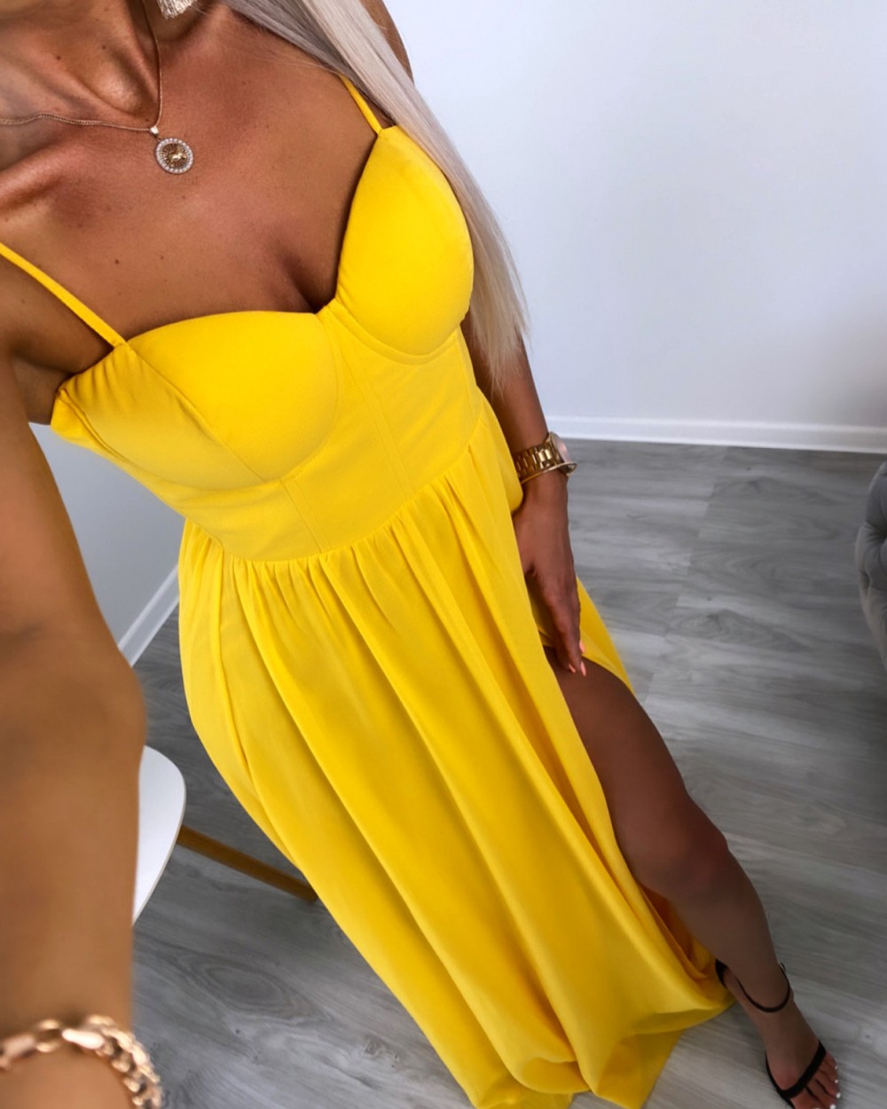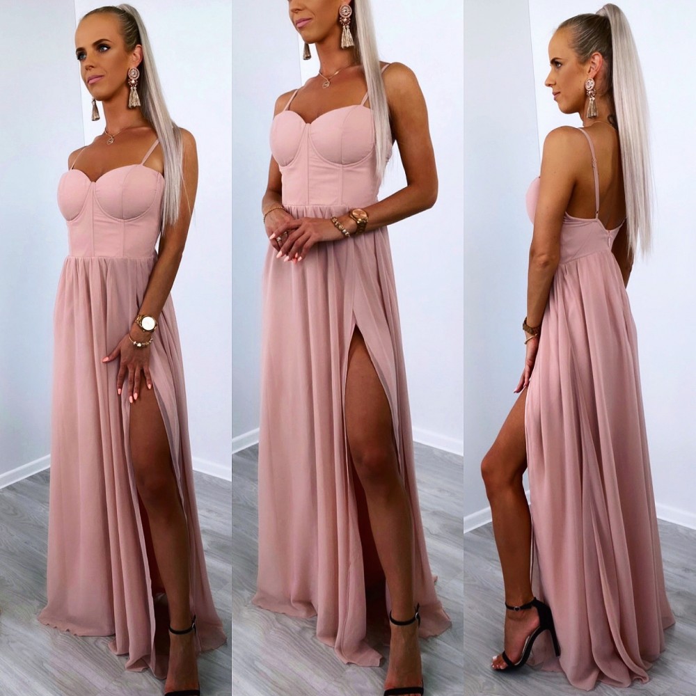 Lõhikuga maksikleit (Roosa, XS/S)
