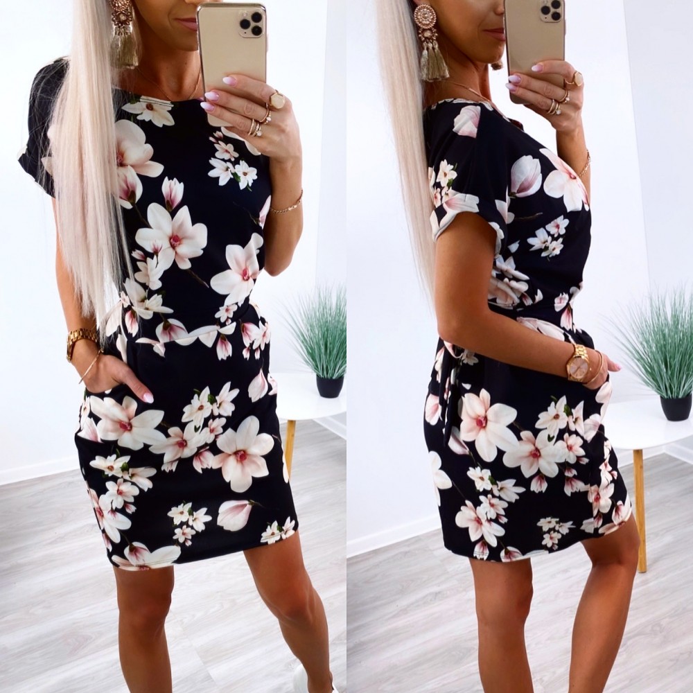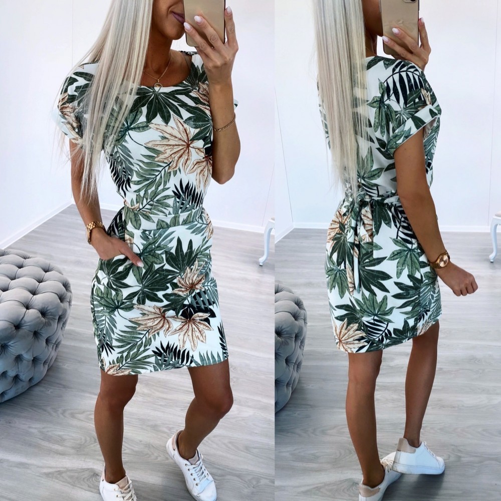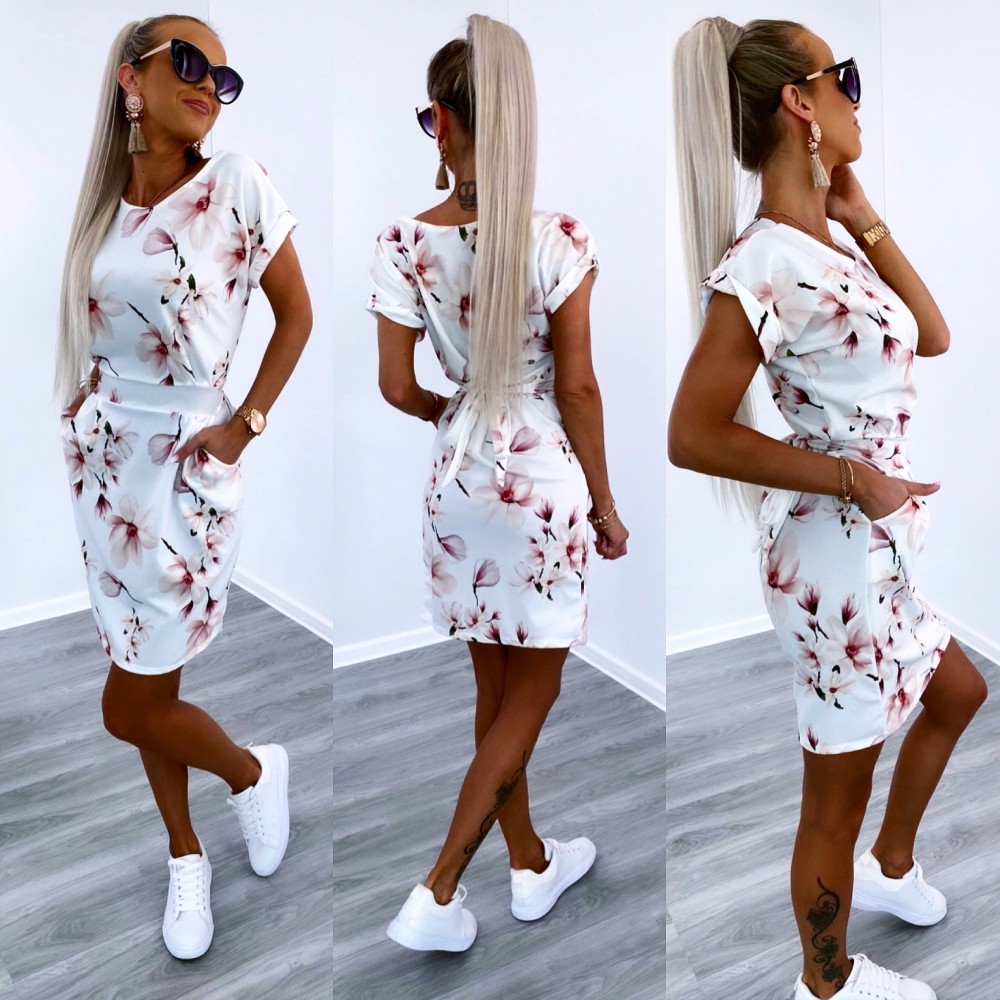 Taskutega lilleline vabaaja kleit (Üks suurus, Sinine)