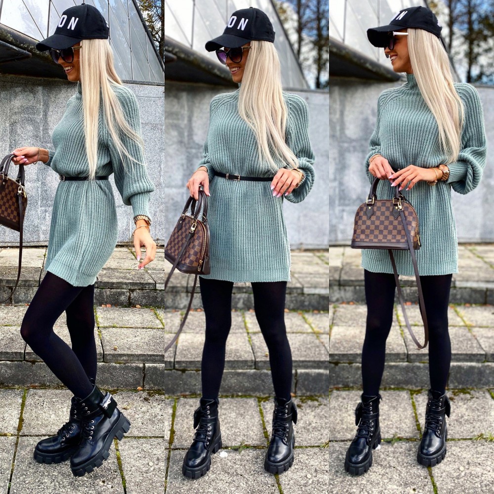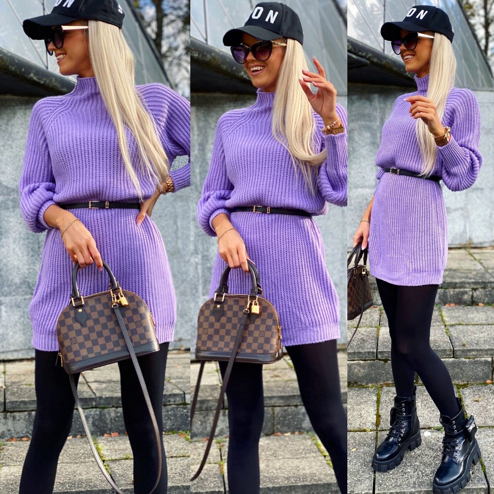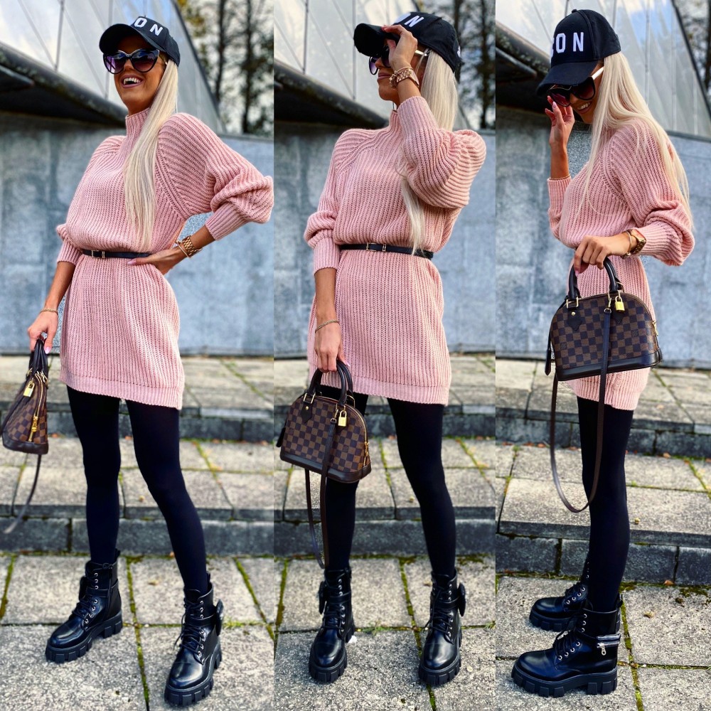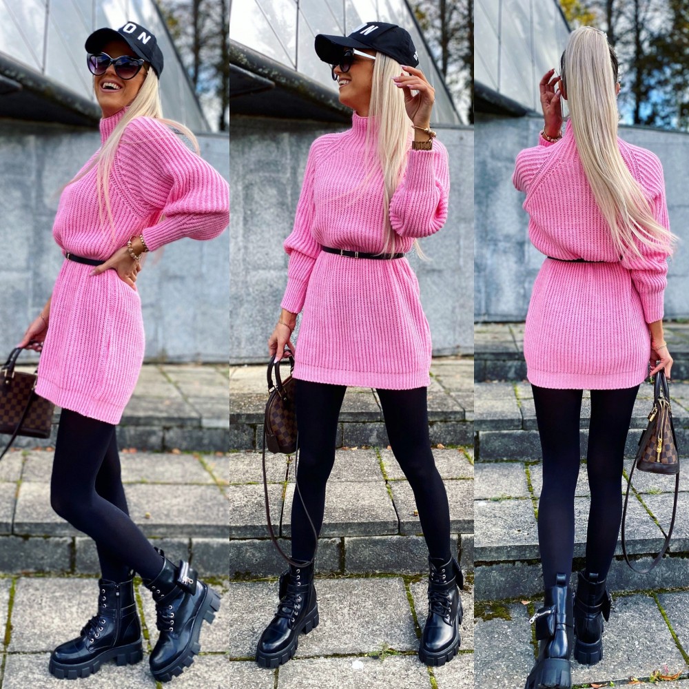 Vööga kudumkleit (Üks suurus, Roosa)