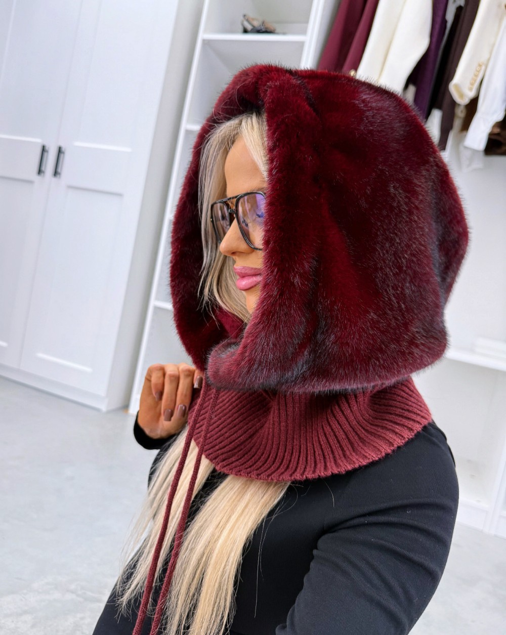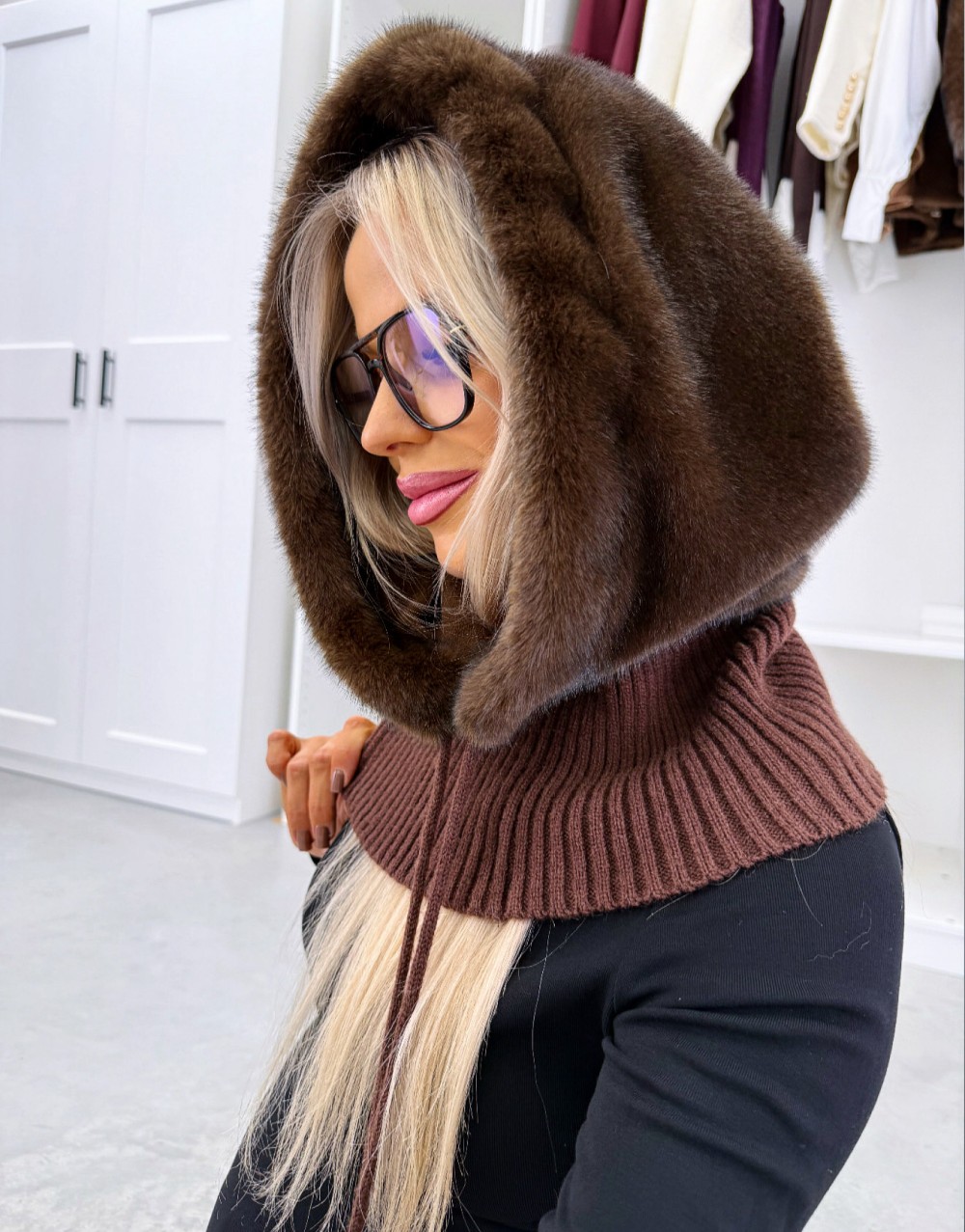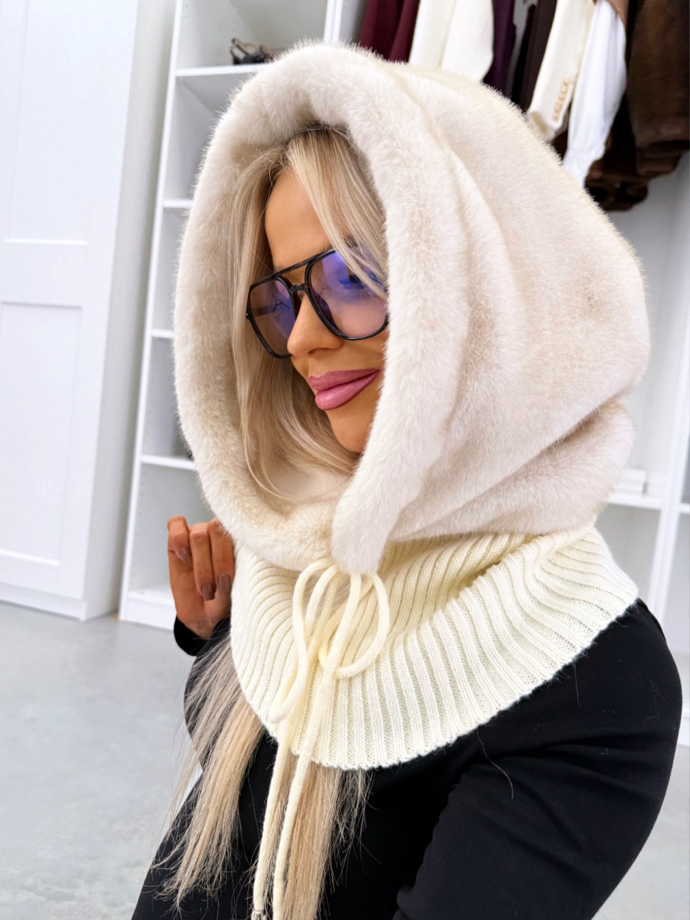 Kaelusega müts (Üks suurus, Must)