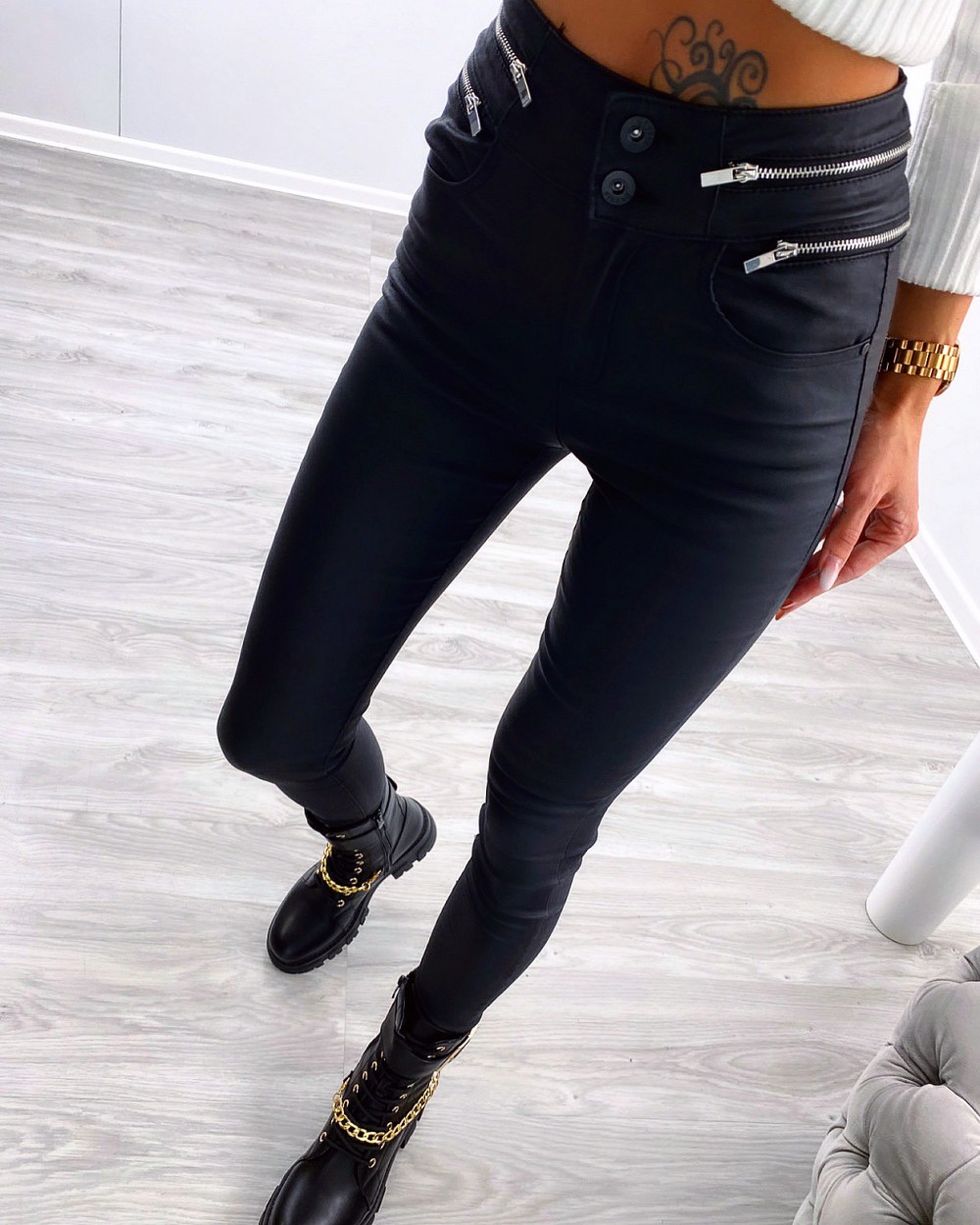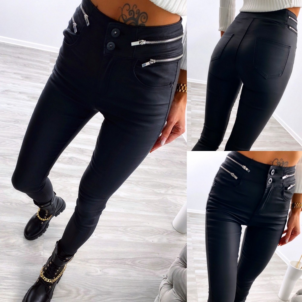 Hõbedaste lukkudega matt-nahksed stretch püksid (M, Must)