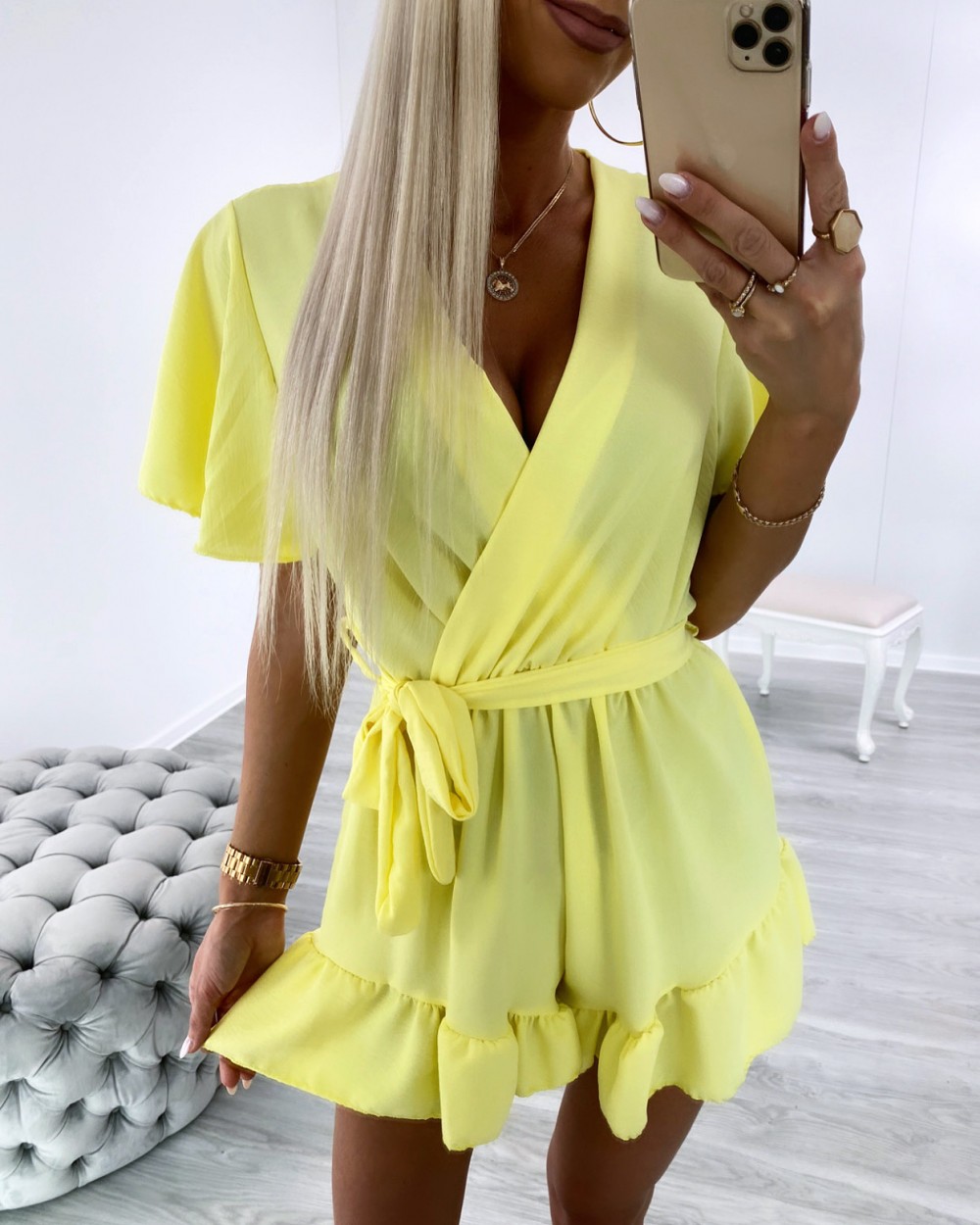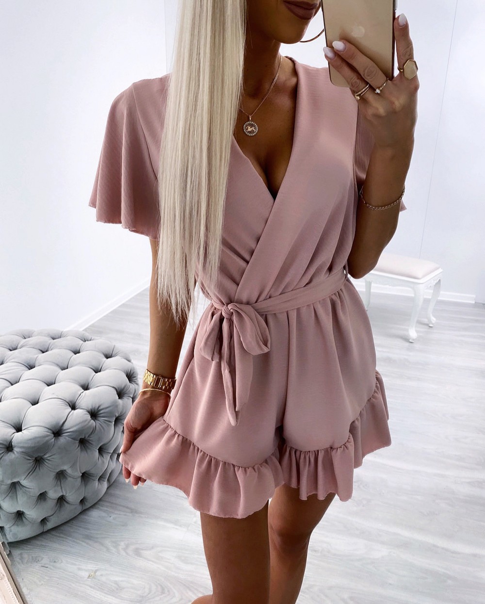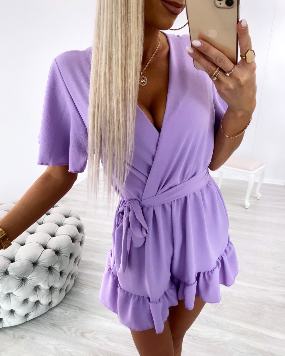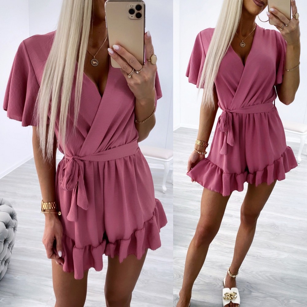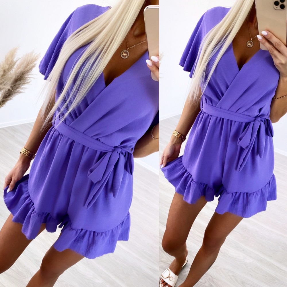 Keskelt paelaga lühike jumpsuit (Üks suurus, Valge)