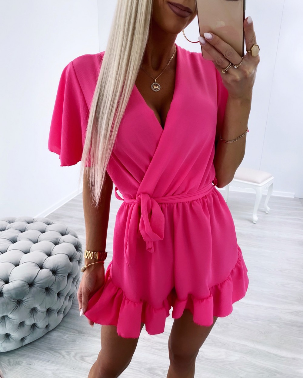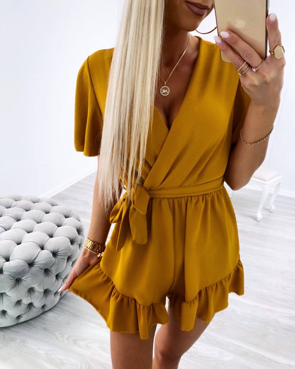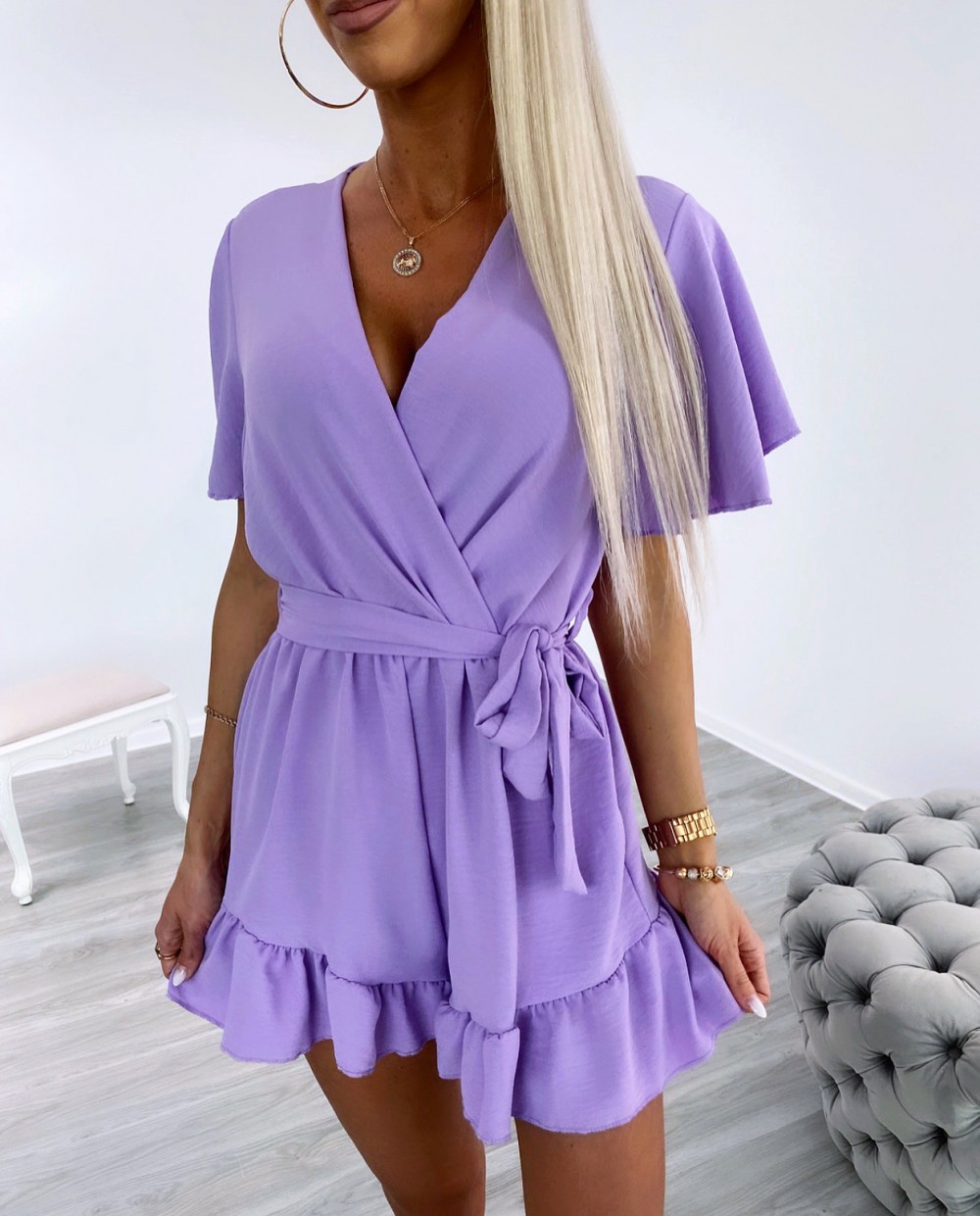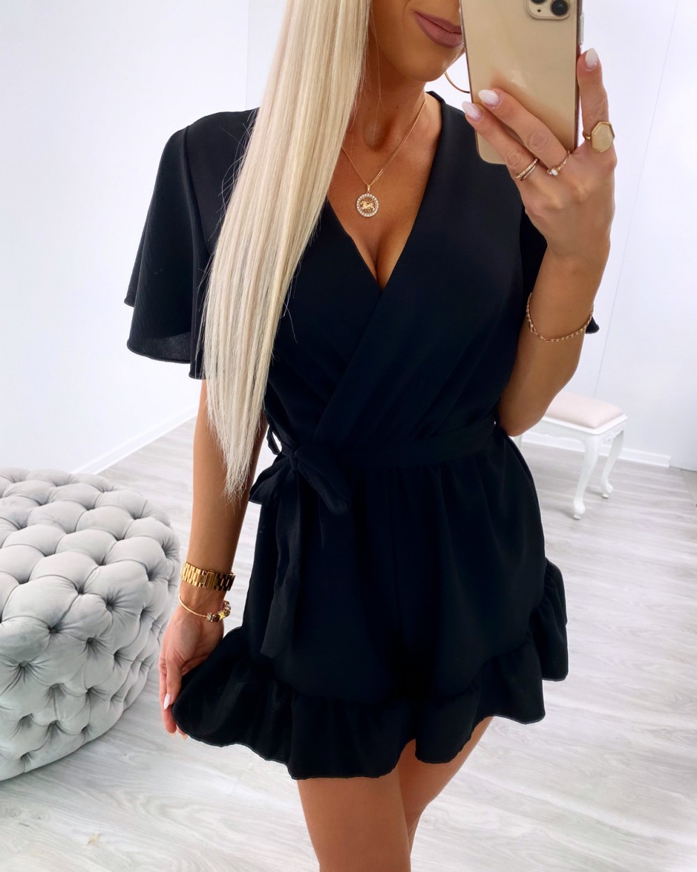 Keskelt paelaga lühike jumpsuit (Üks suurus, Valge)
