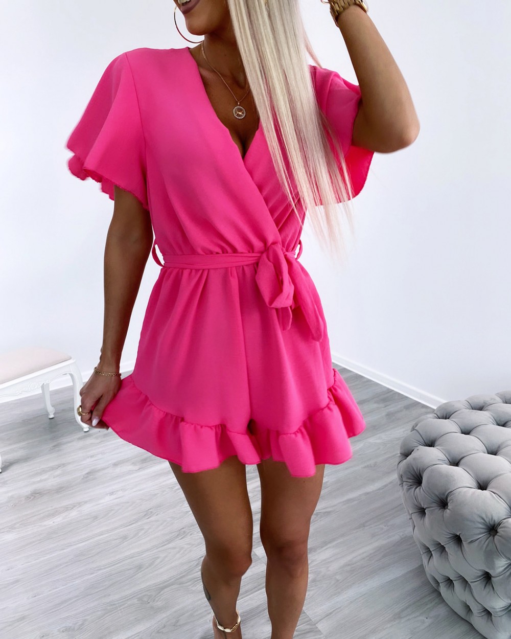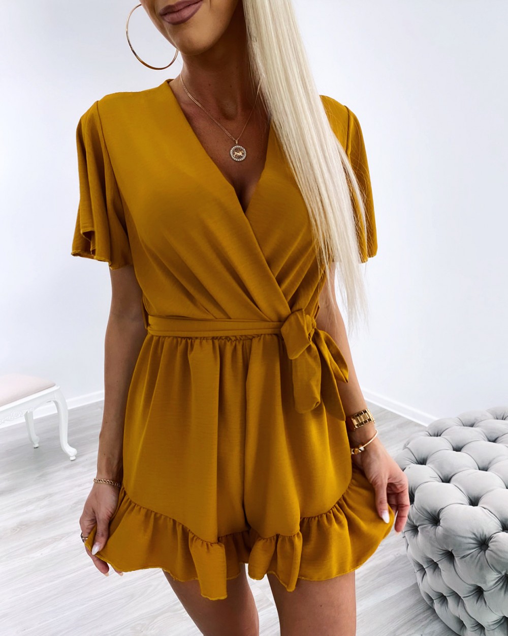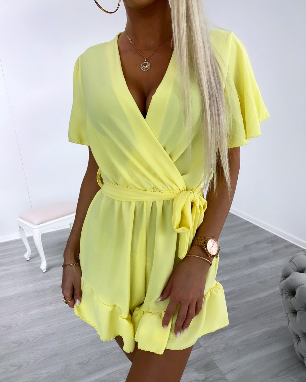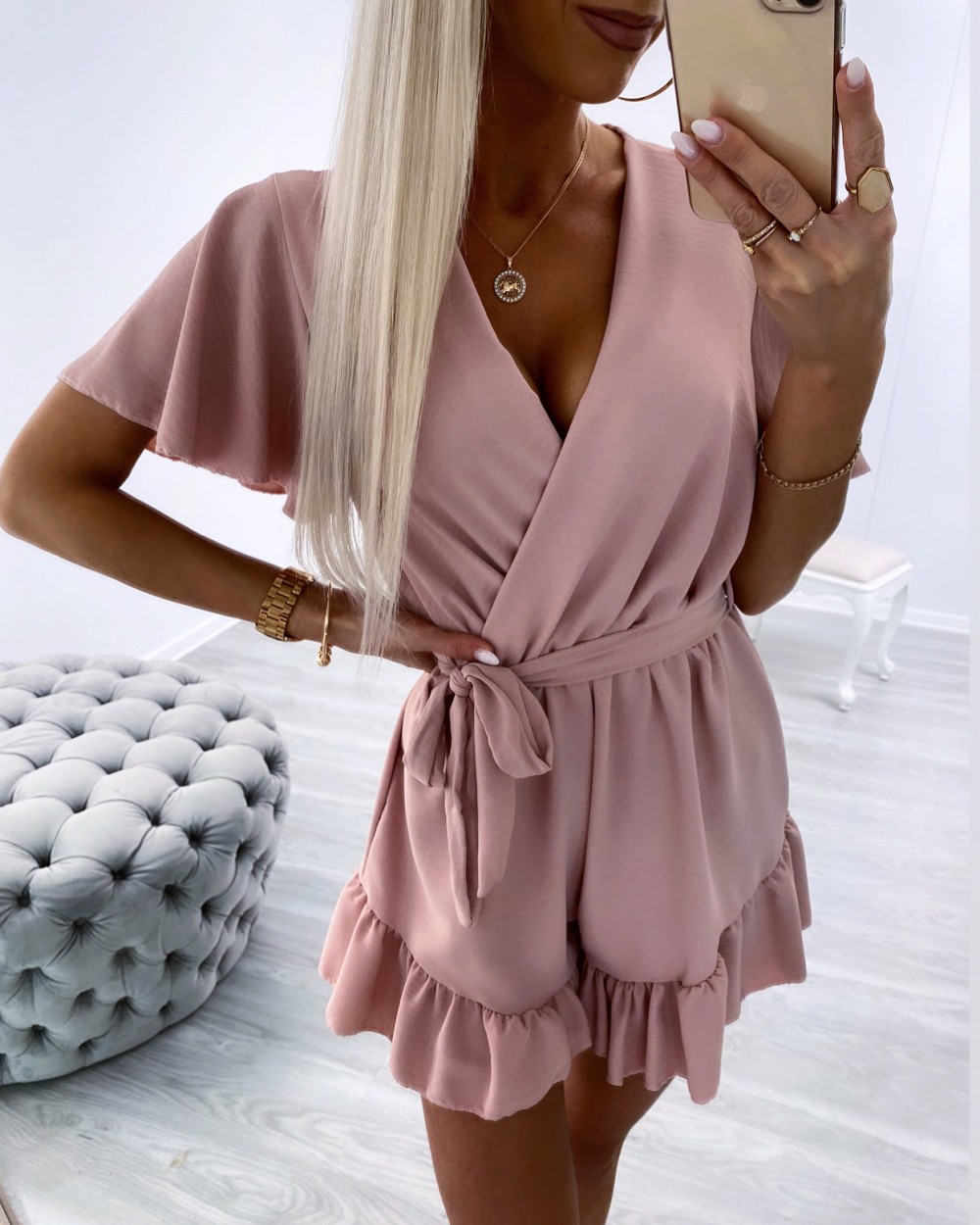 Keskelt paelaga lühike jumpsuit (Üks suurus, Valge)