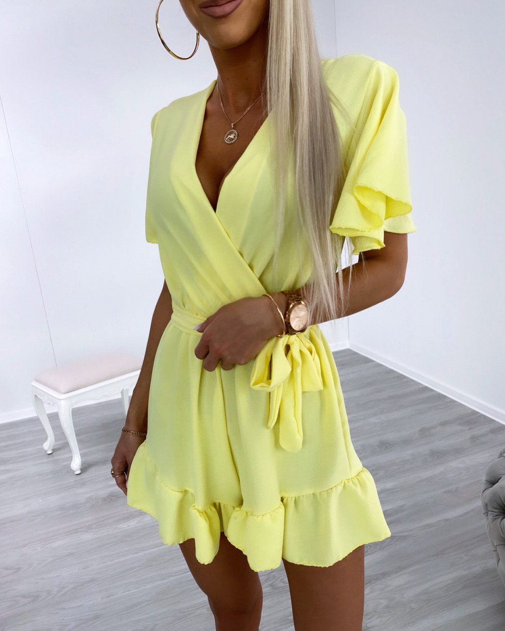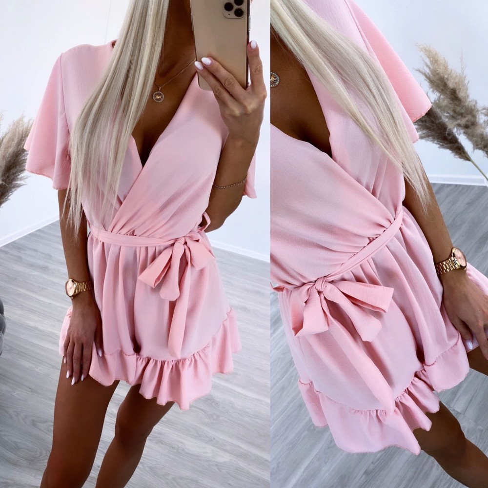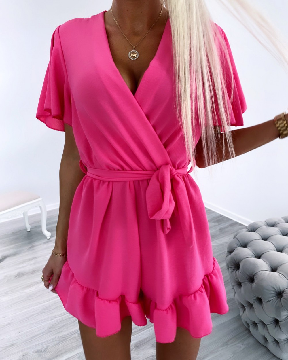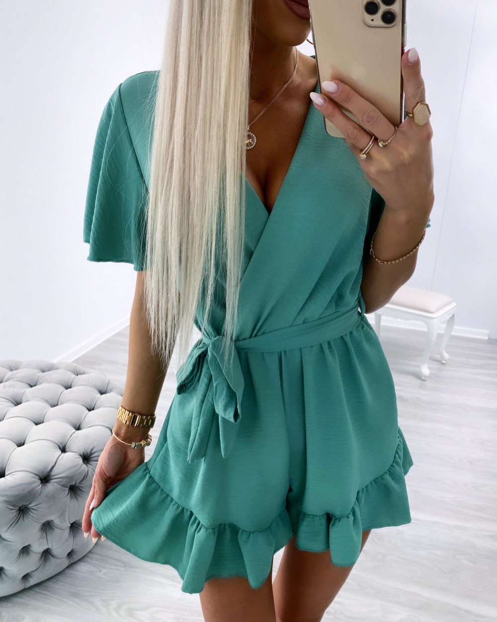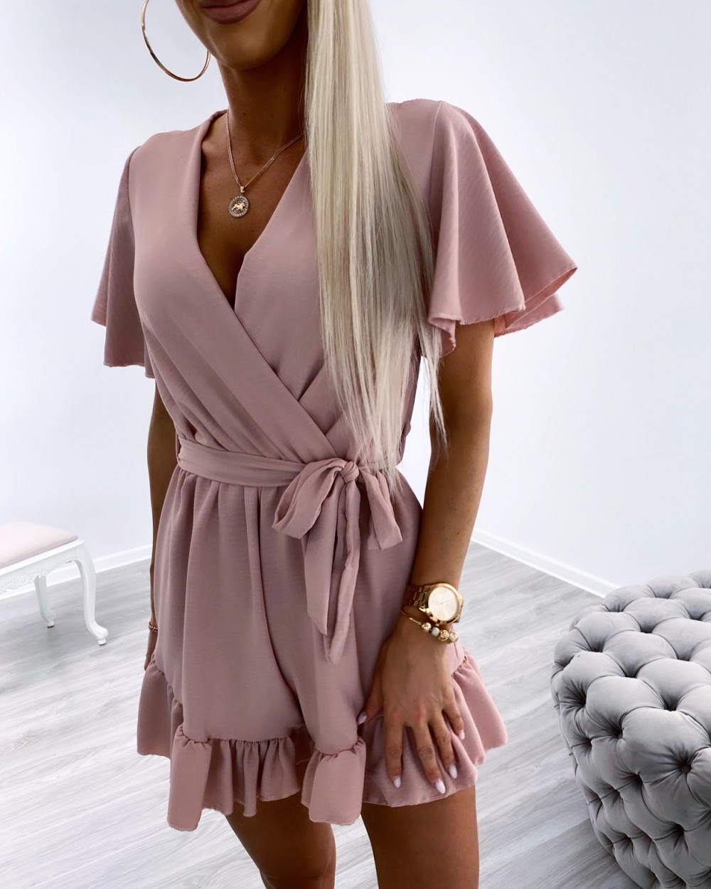 Keskelt paelaga lühike jumpsuit (Üks suurus, Valge)