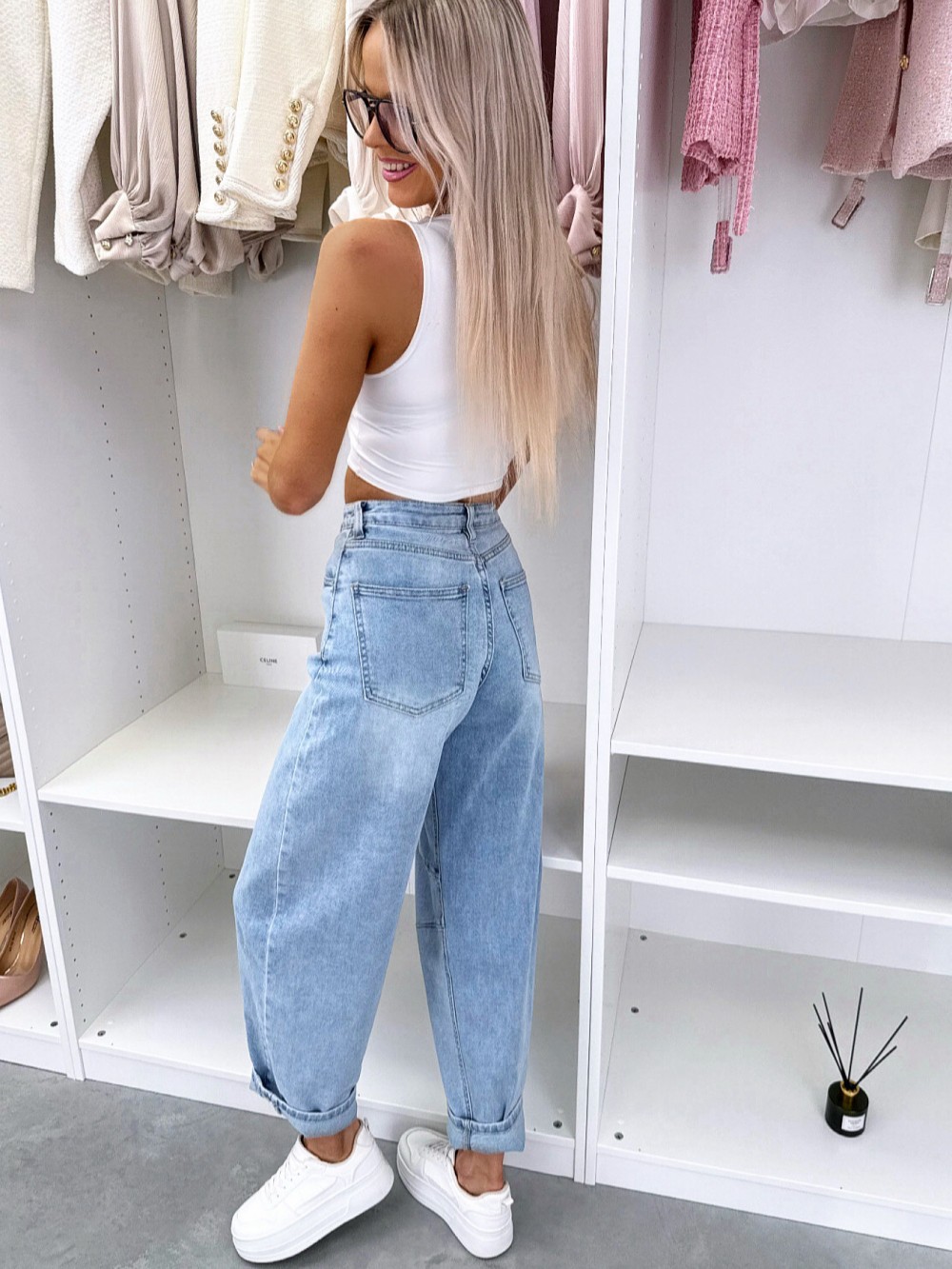 Balloon-fit lõikega teksad (S, Sinine)