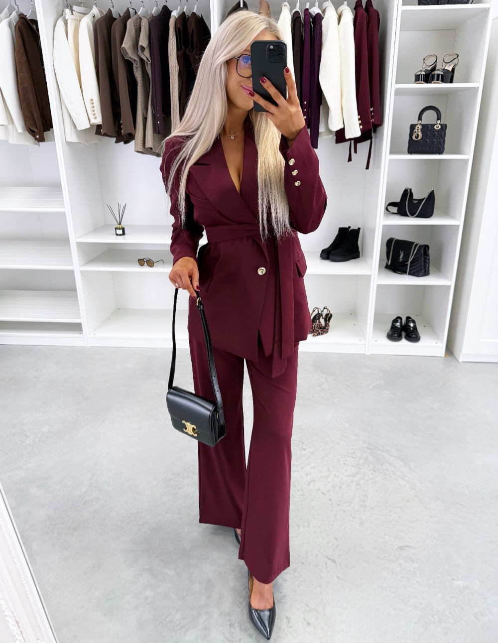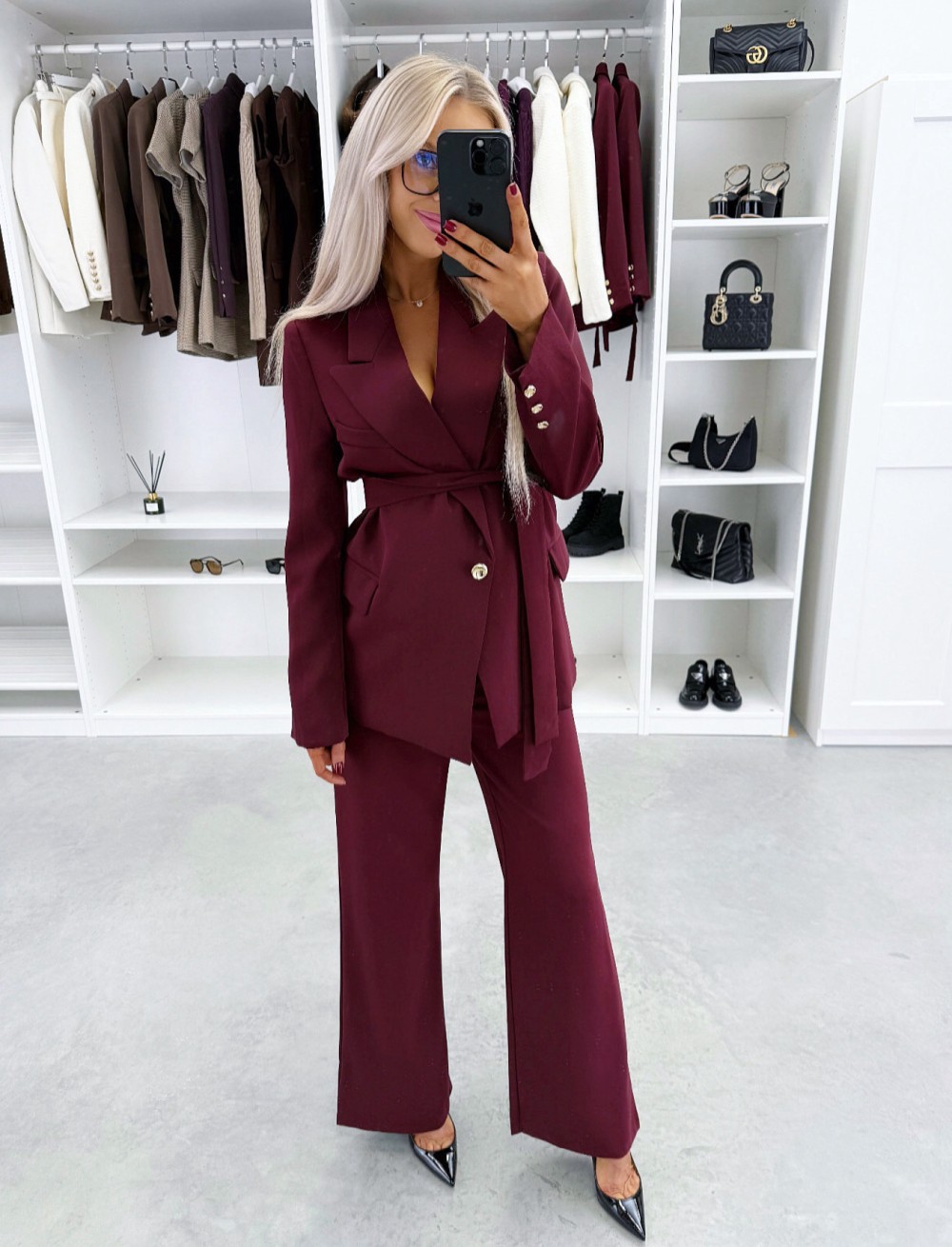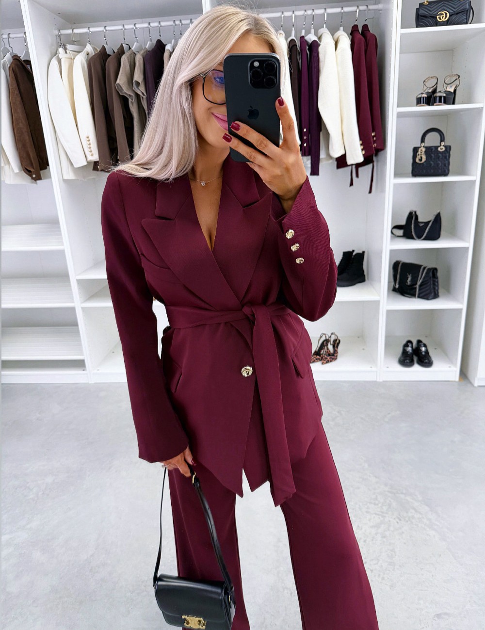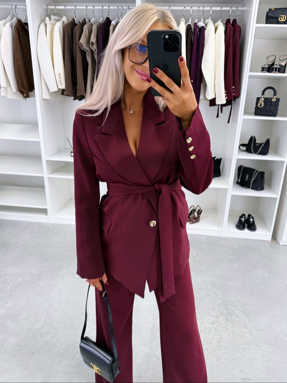 Keskelt seotav pintsak (XS/S, Tumepunane)