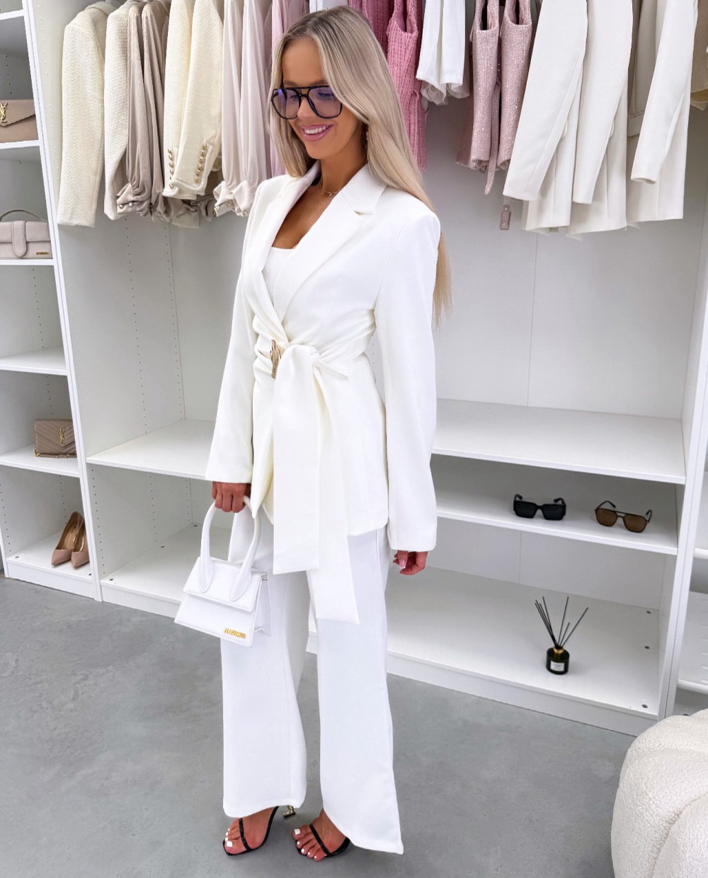Kuldse detailiga seotav pintsak (S, Valge)