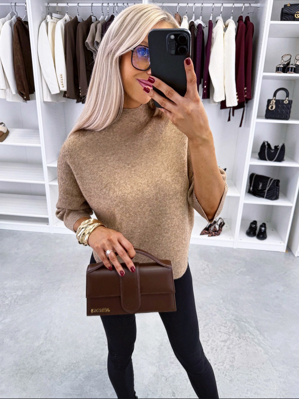 Kõrgema kraega mugav kampsun (Üks suurus, Roosa)
