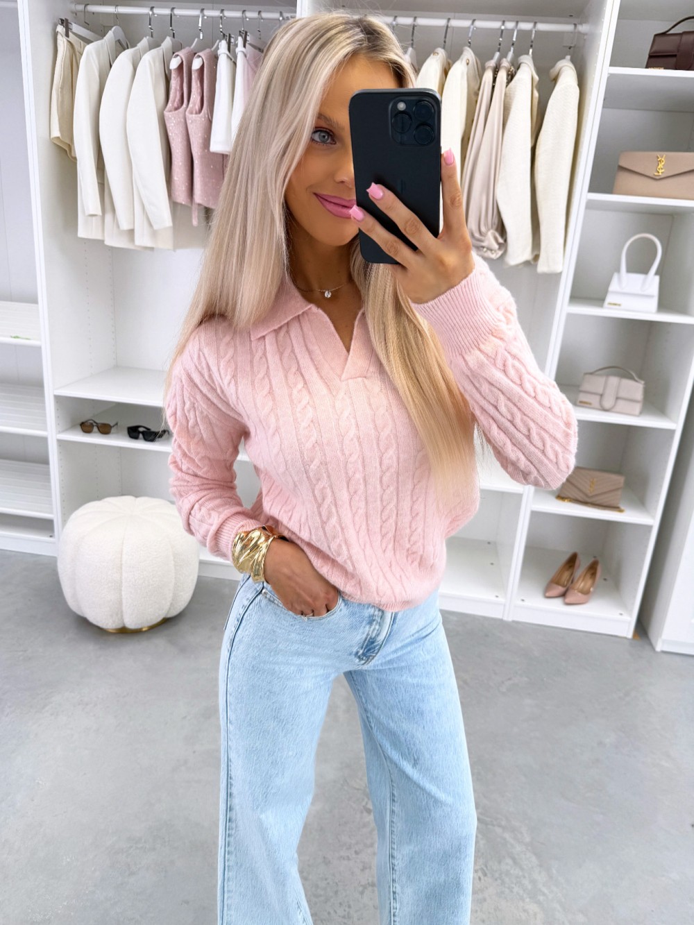 V-kaelusega pehme sviiter (Üks suurus, Roosa)