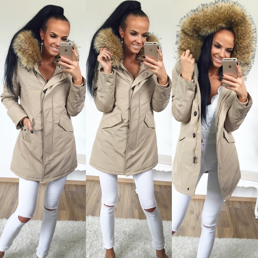 Libedamast materjalist vetthülgav talveparka (M, Beež)
