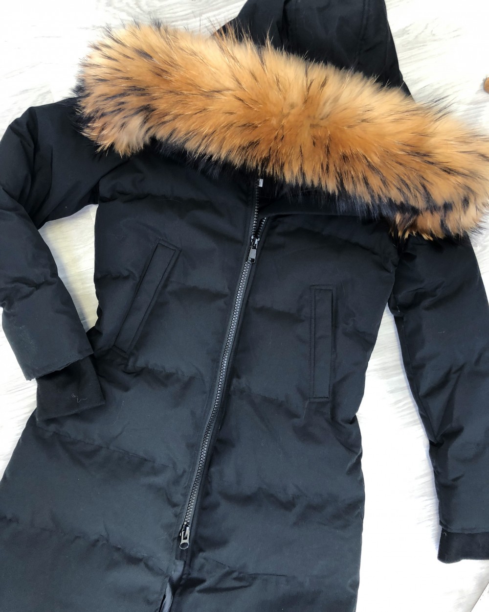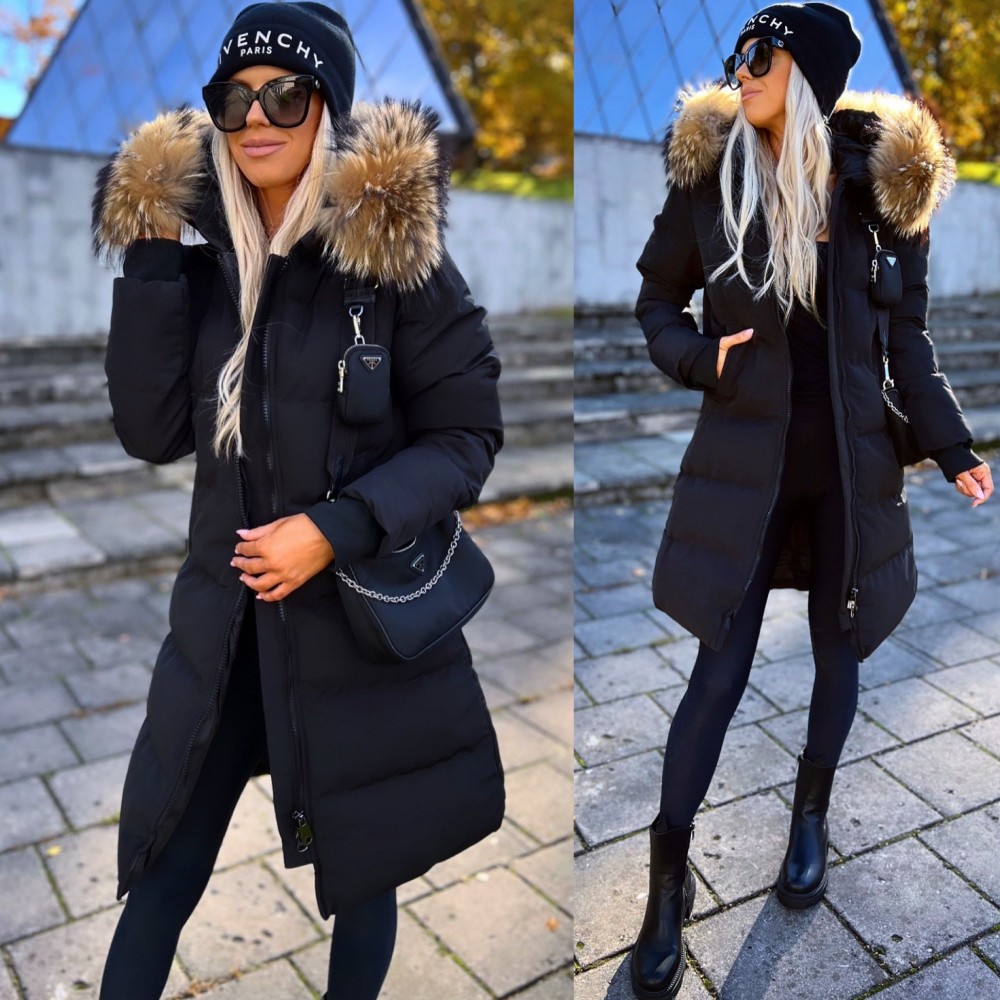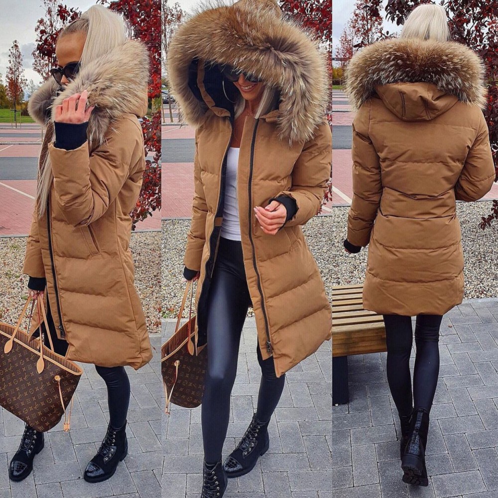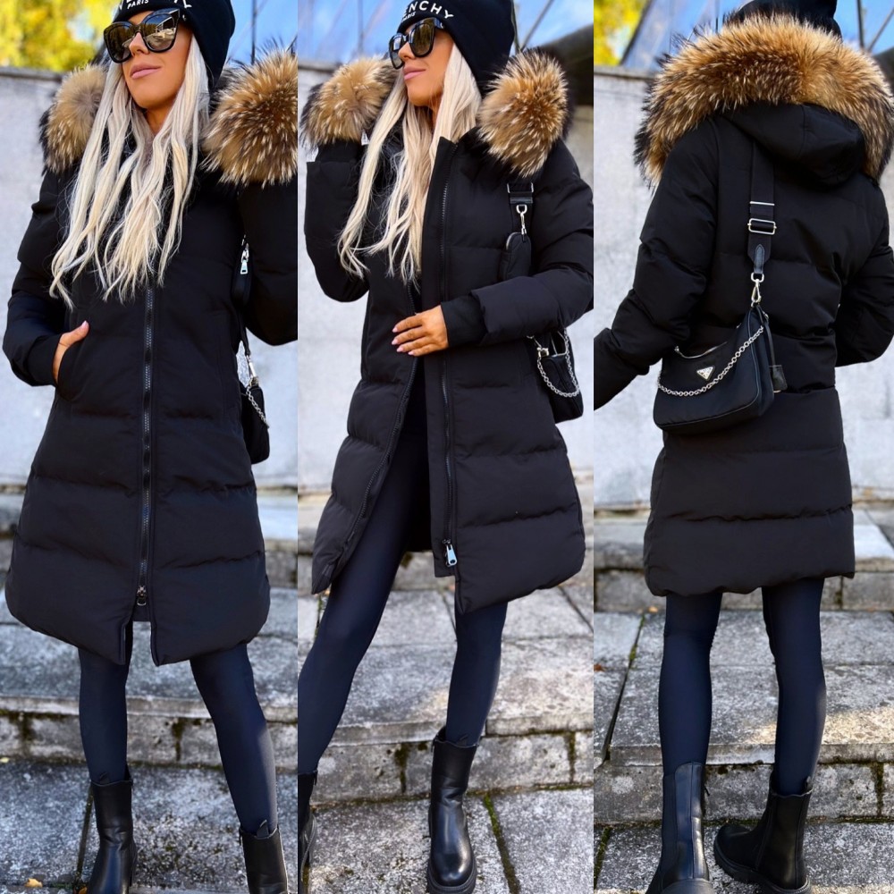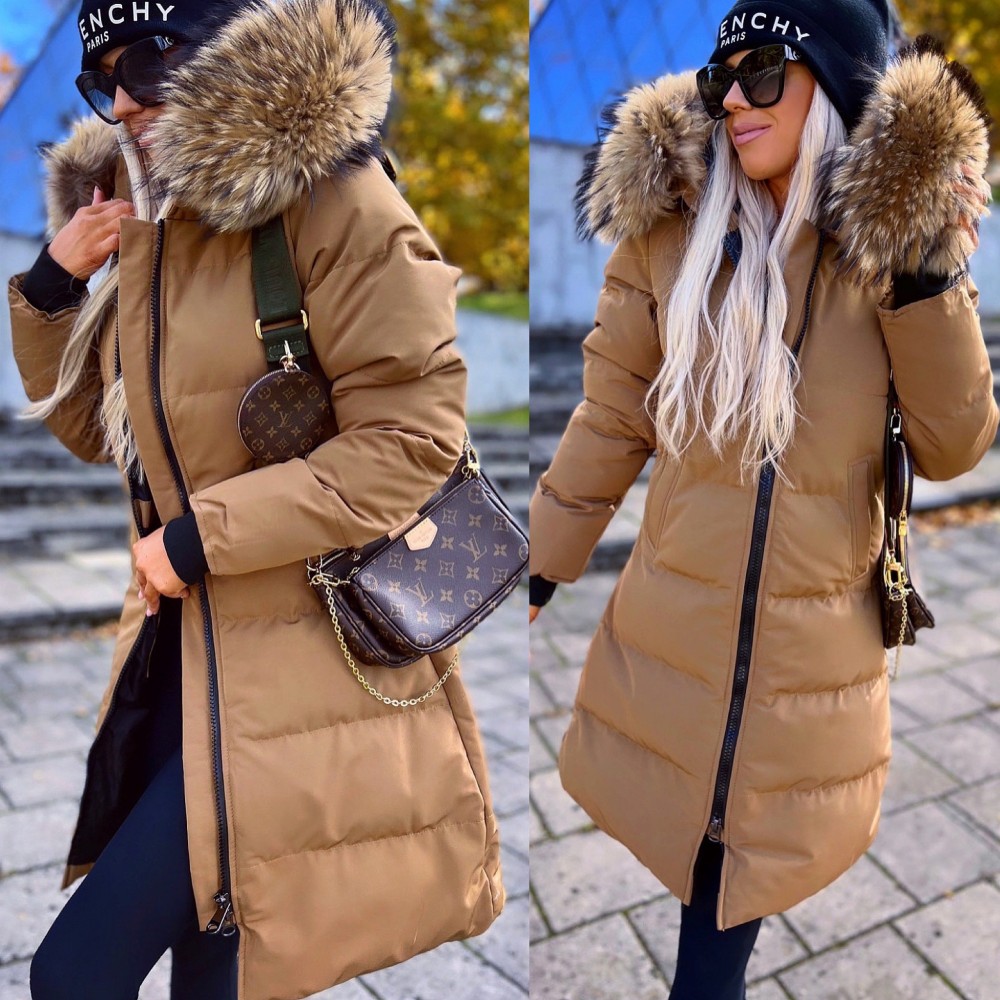 Naturaalse karvaga pikem vetthülgav talvemantel (Punane, XL)