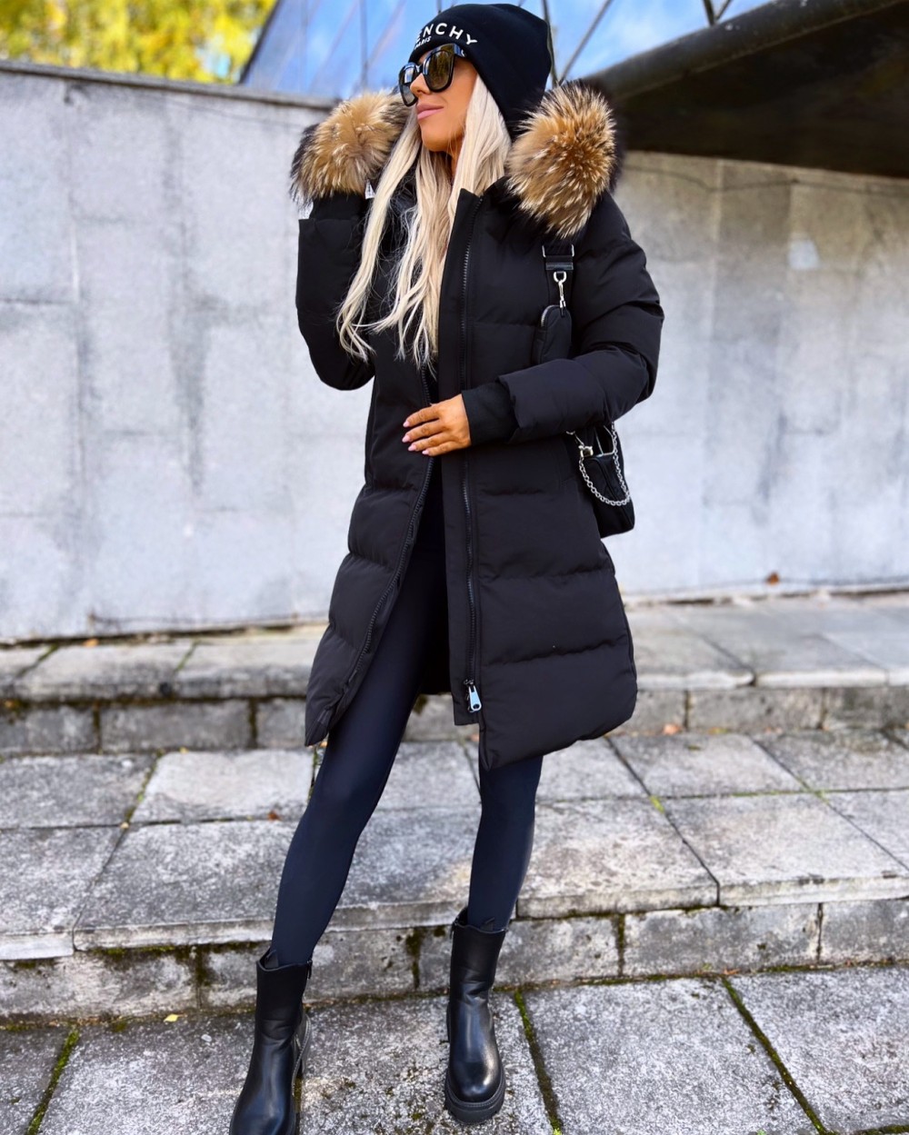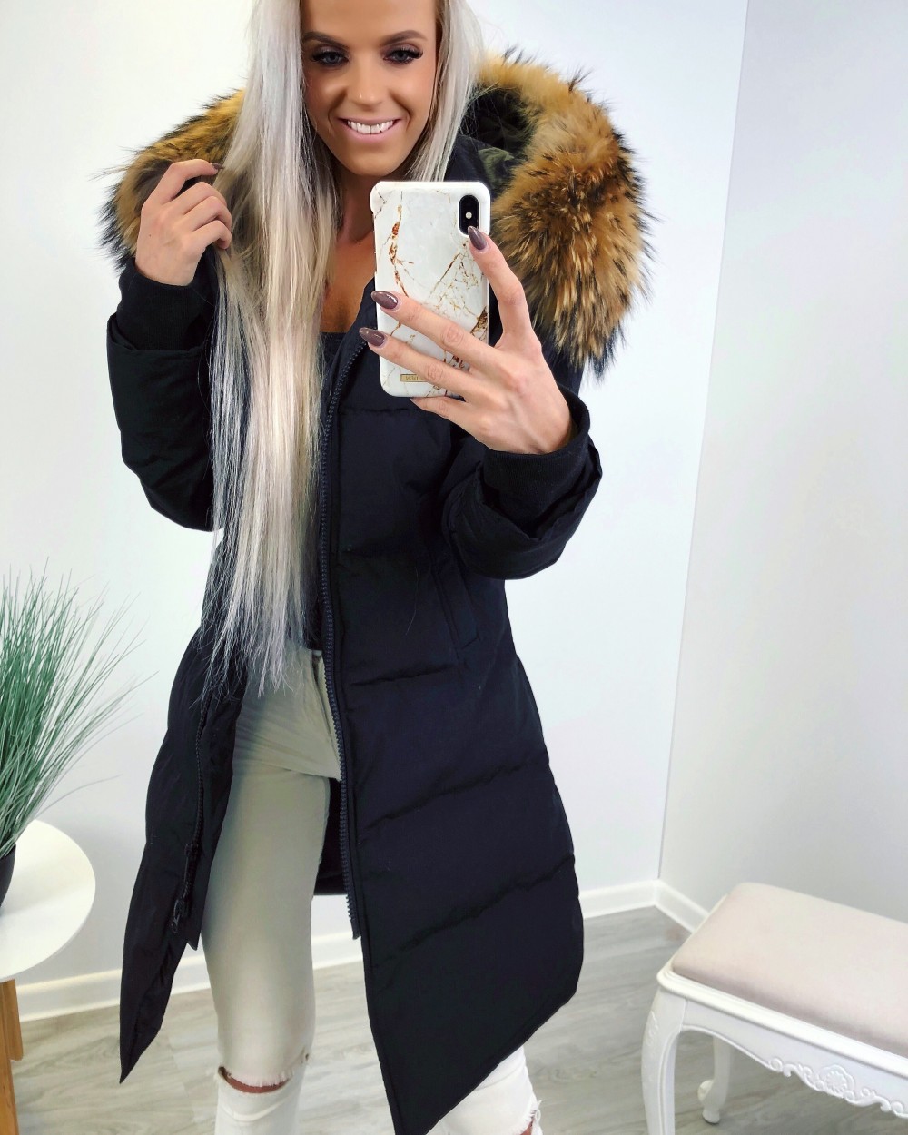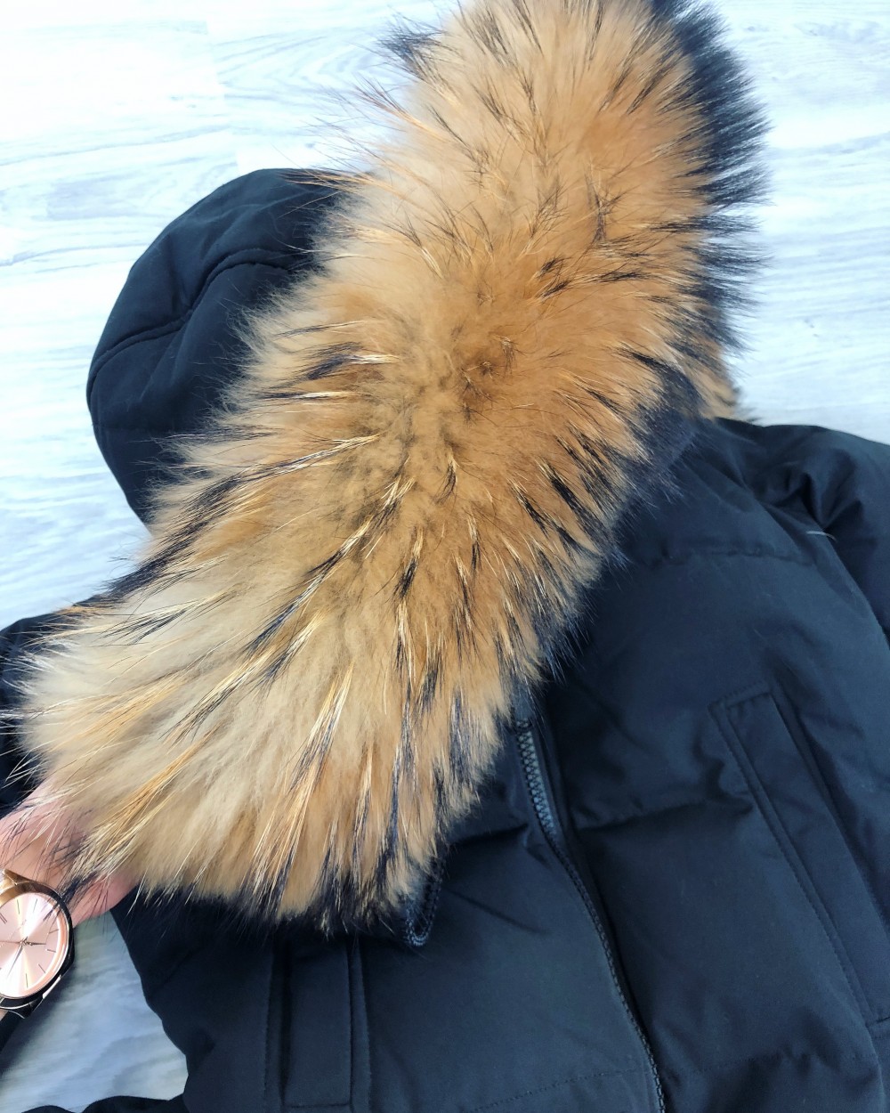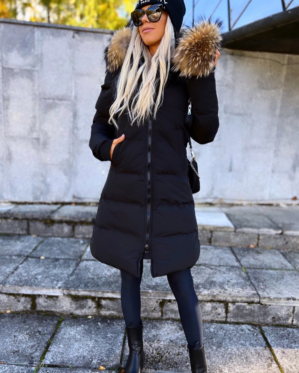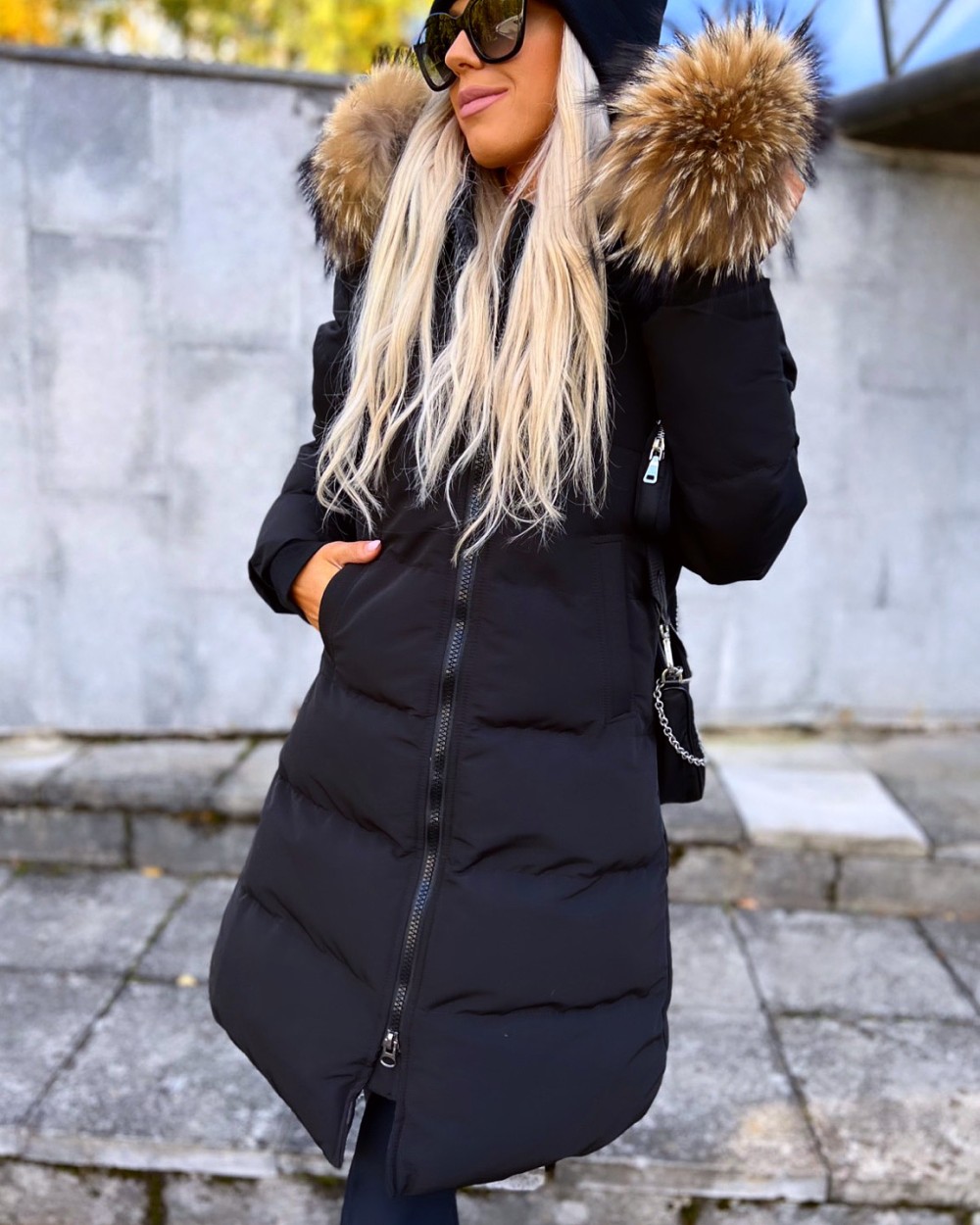 Naturaalse karvaga pikem vetthülgav talvemantel (Punane, XL)