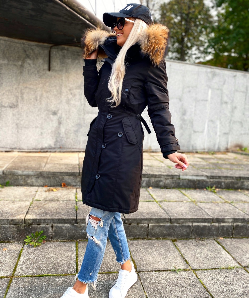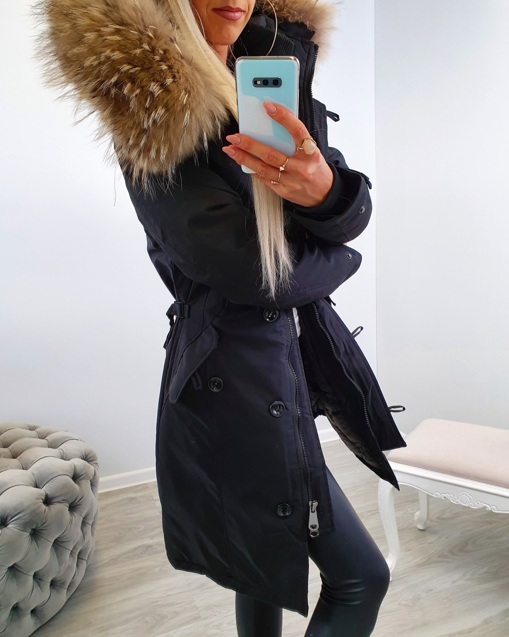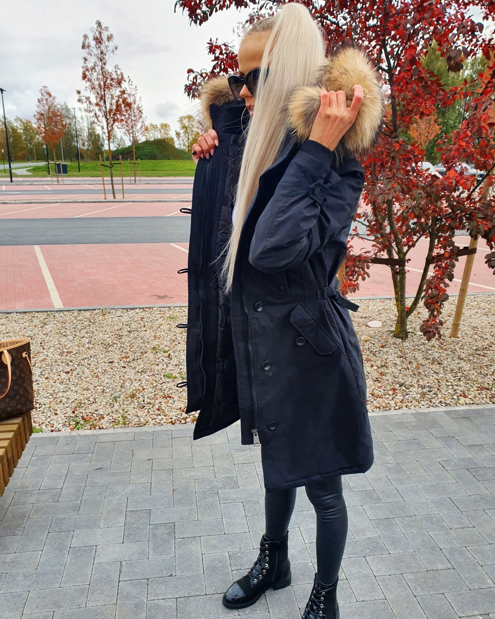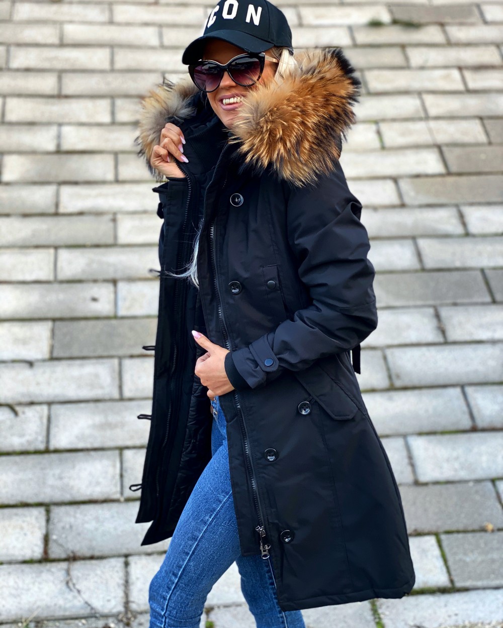 Naturaalse karvaga vetthülgav pikem talveparka (M, Khaki)