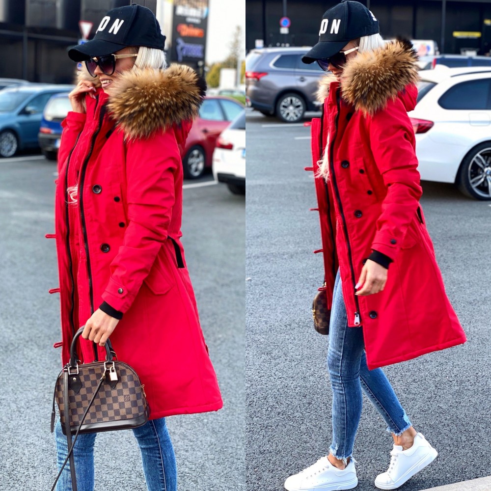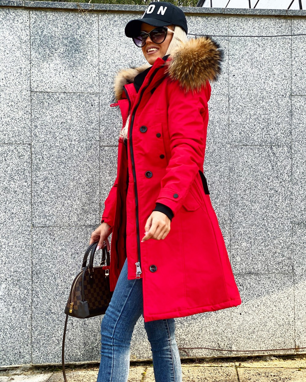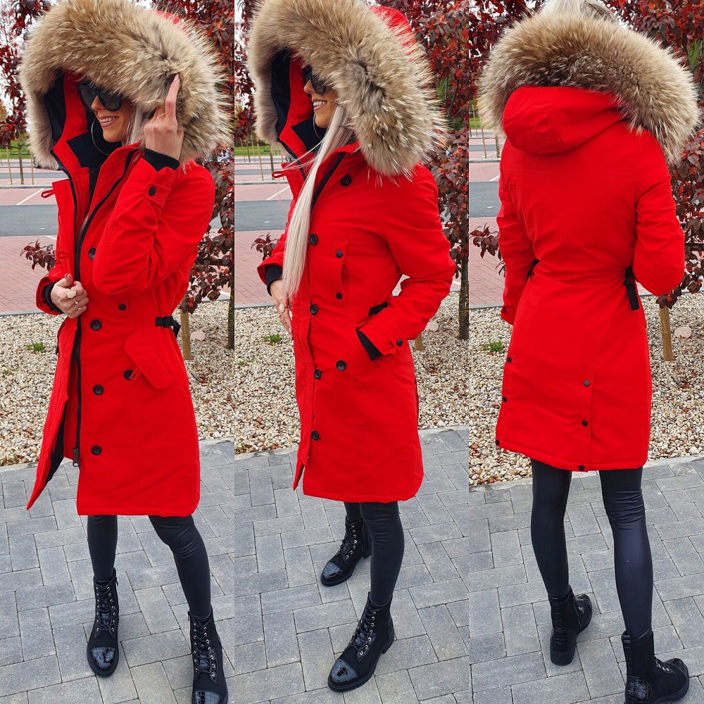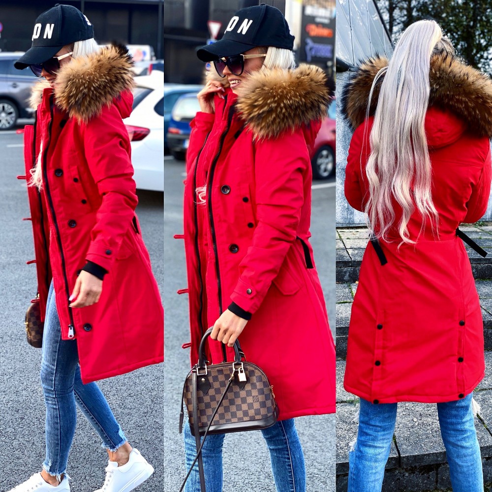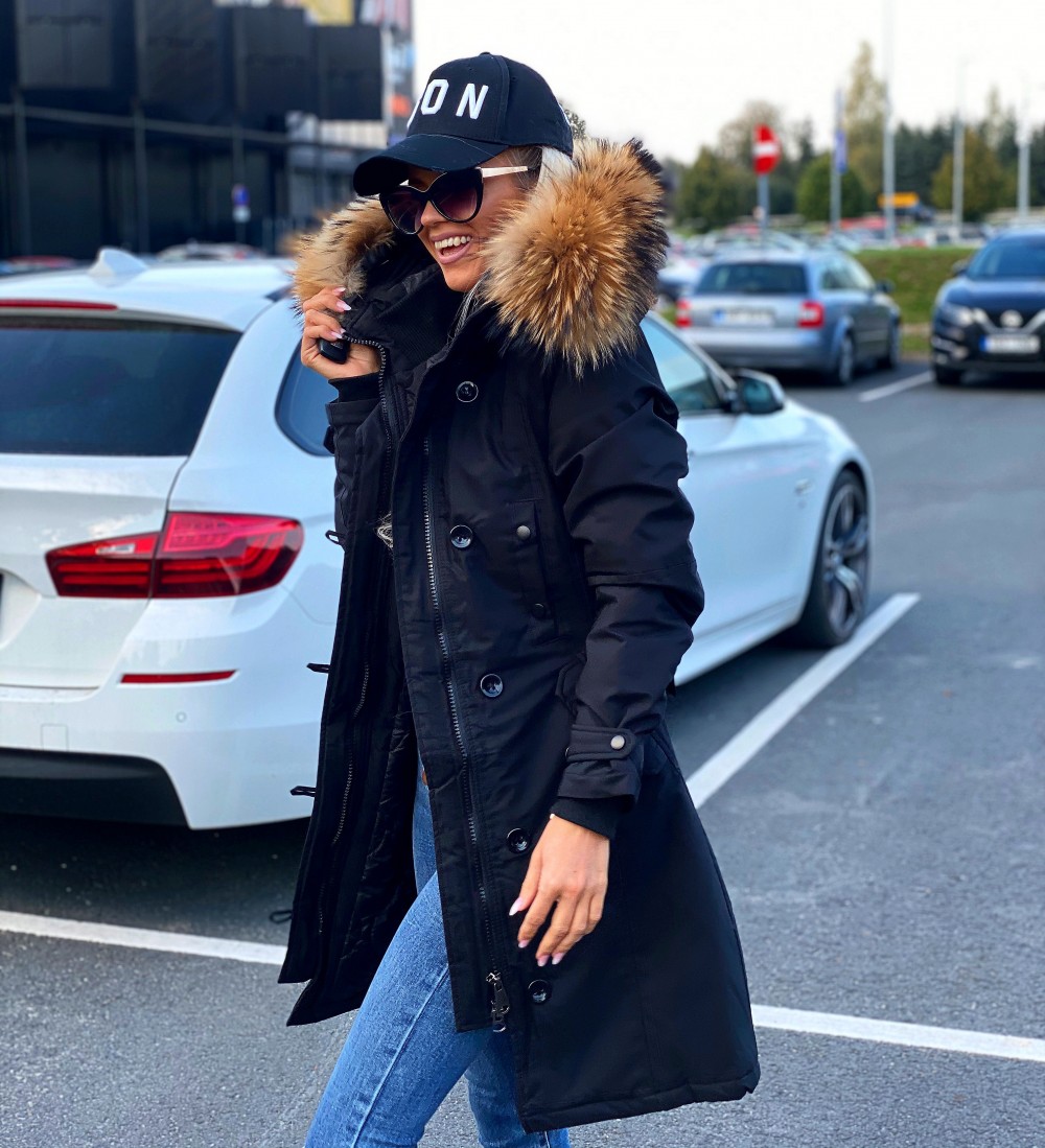 Naturaalse karvaga vetthülgav pikem talveparka (M, Khaki)