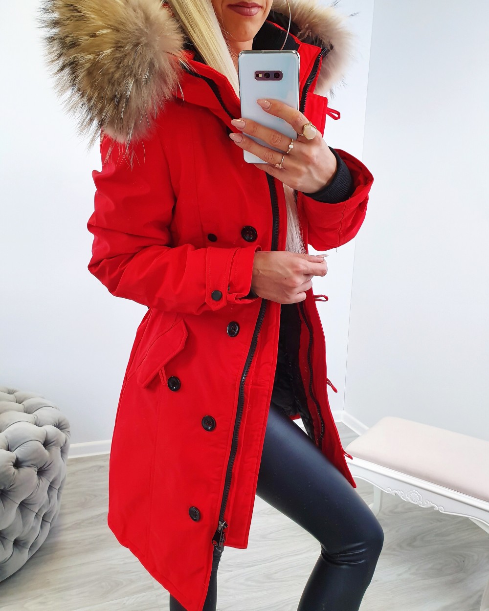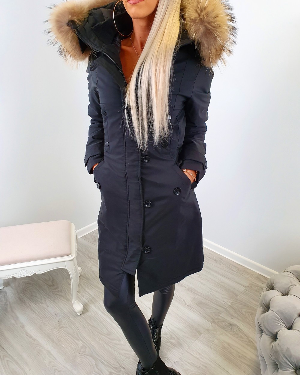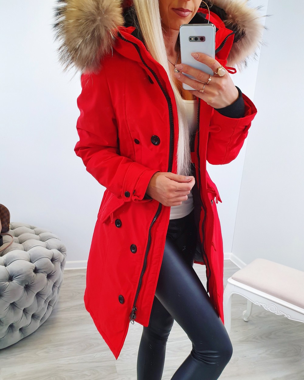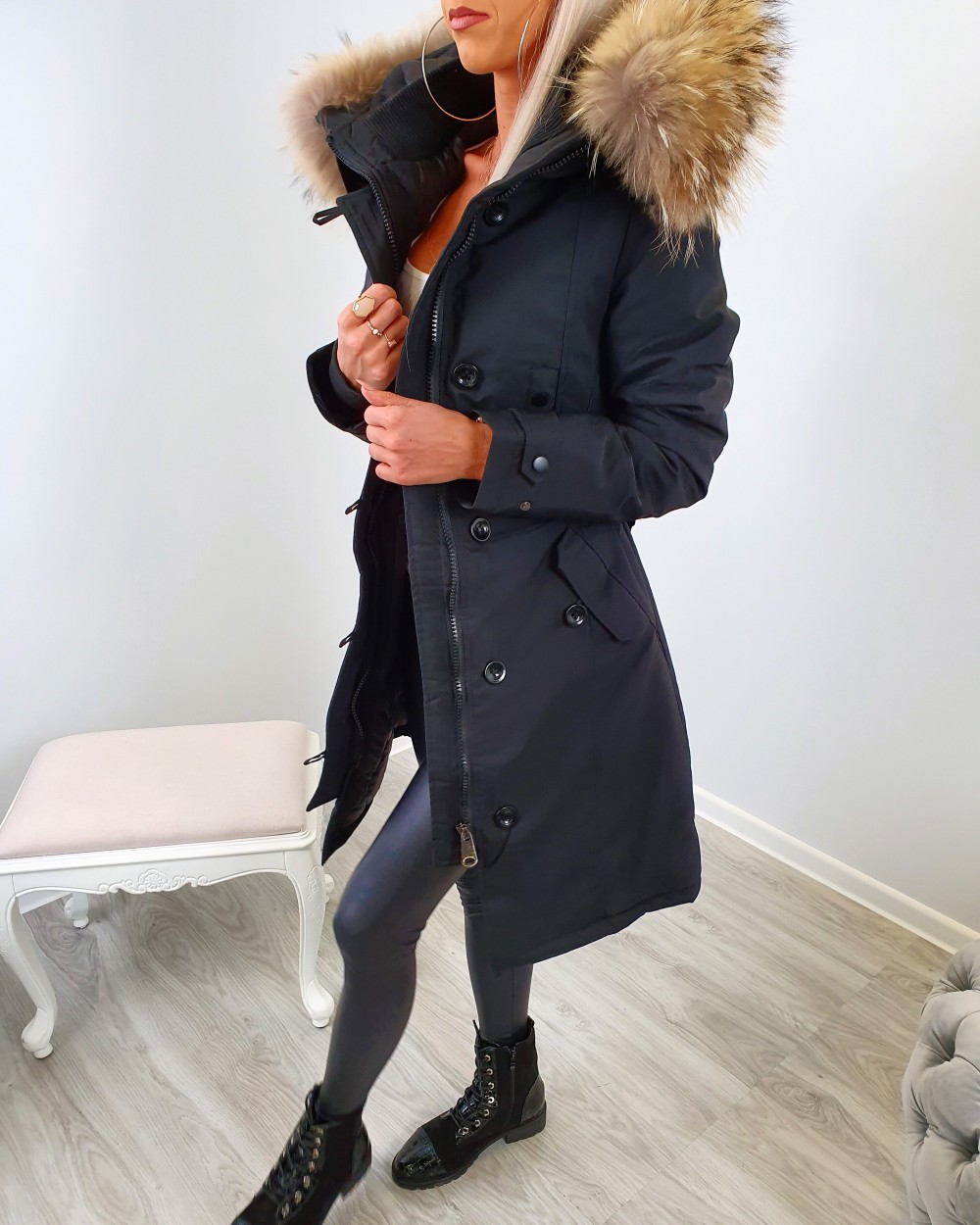 Naturaalse karvaga vetthülgav pikem talveparka (M, Khaki)