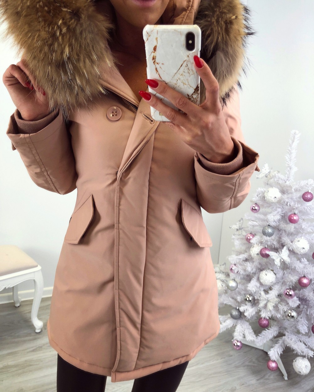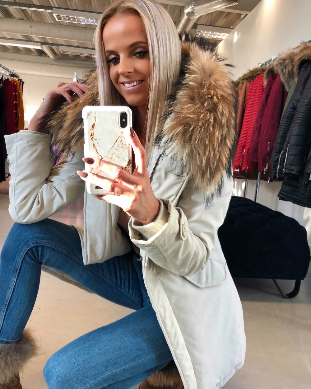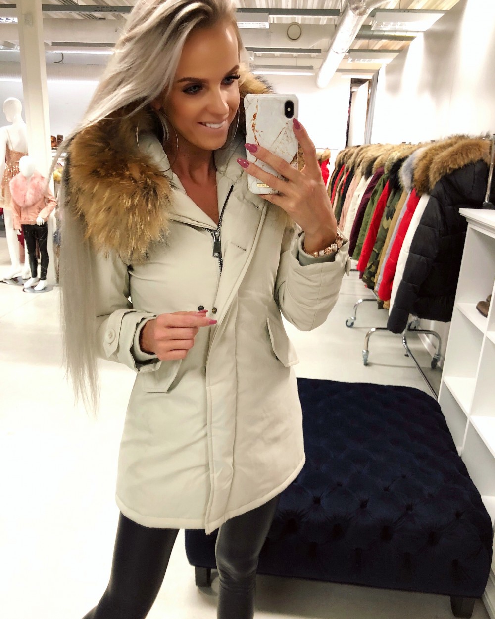 Naturaalse karvaga vetthülgav talveparka (L, Beež)