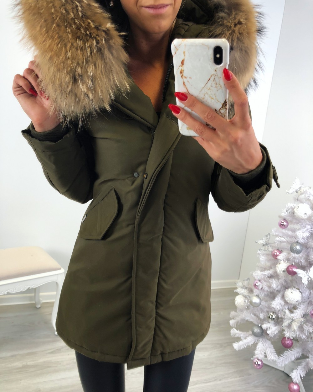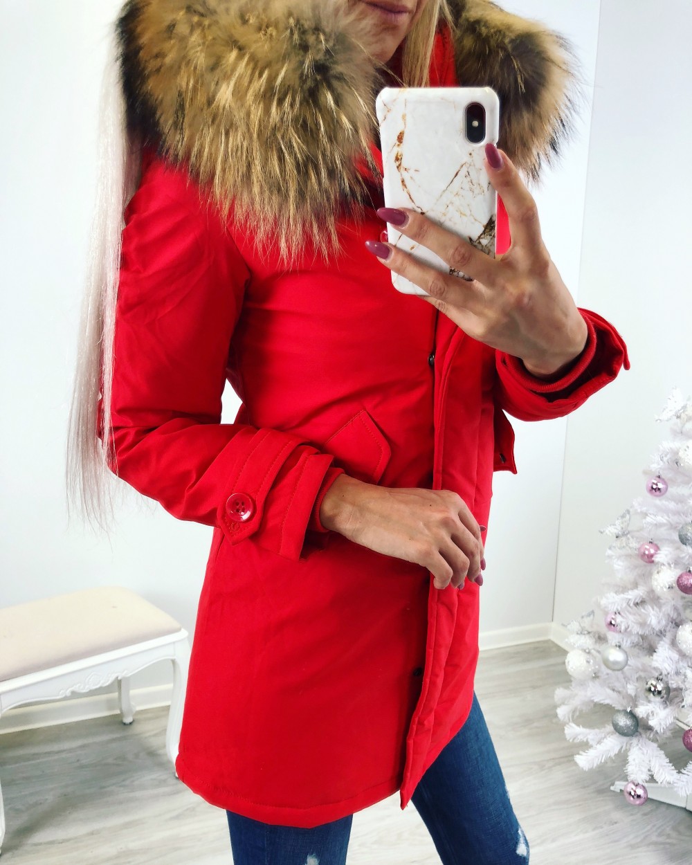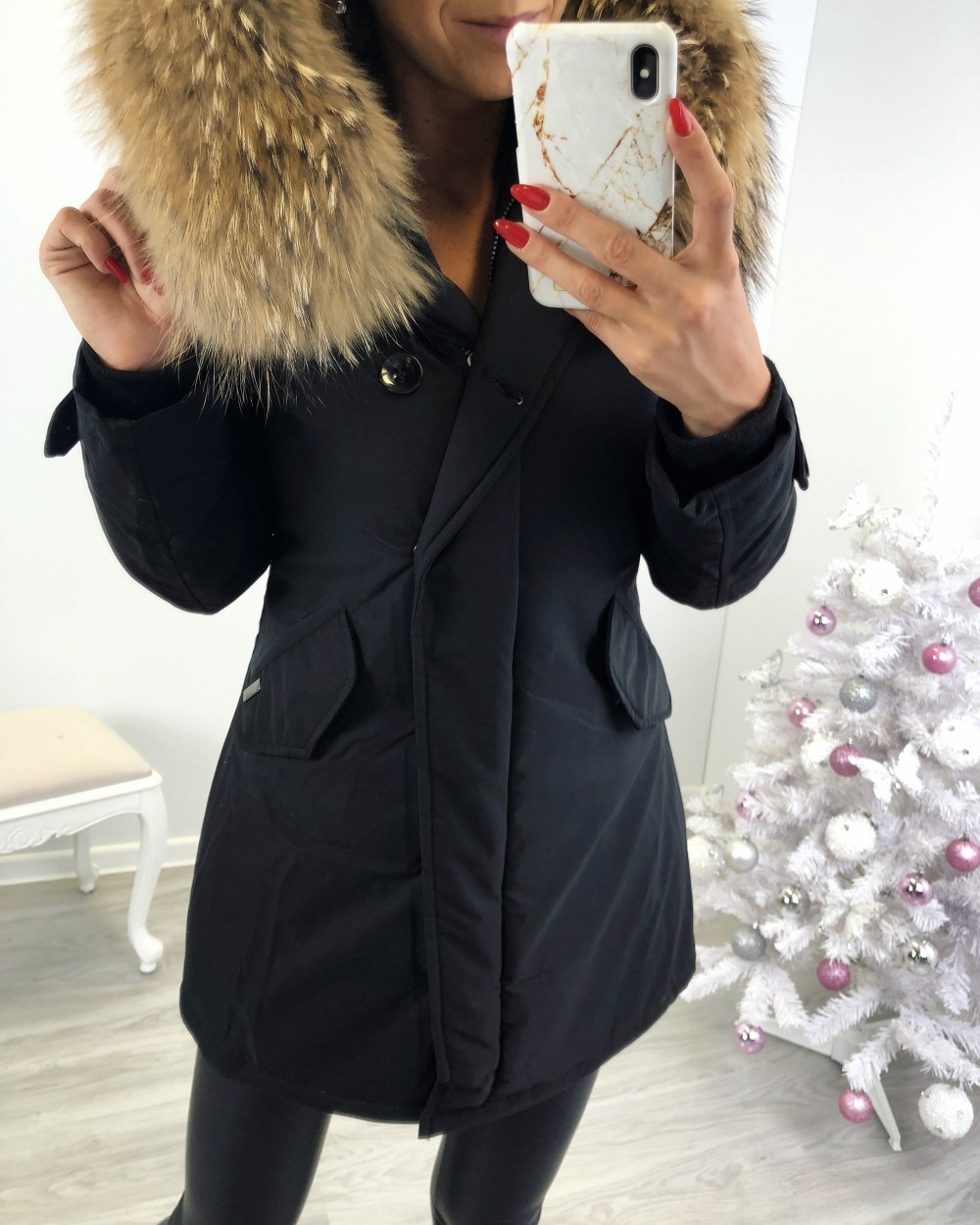 Naturaalse karvaga vetthülgav talveparka (L, Beež)