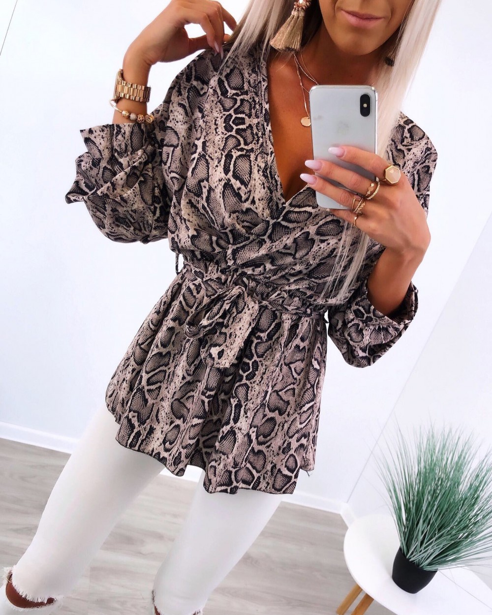 Kroogitud varrukatega vööga pluus (Üks suurus, Ussimuster)