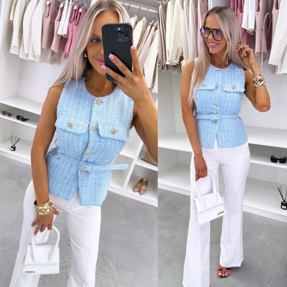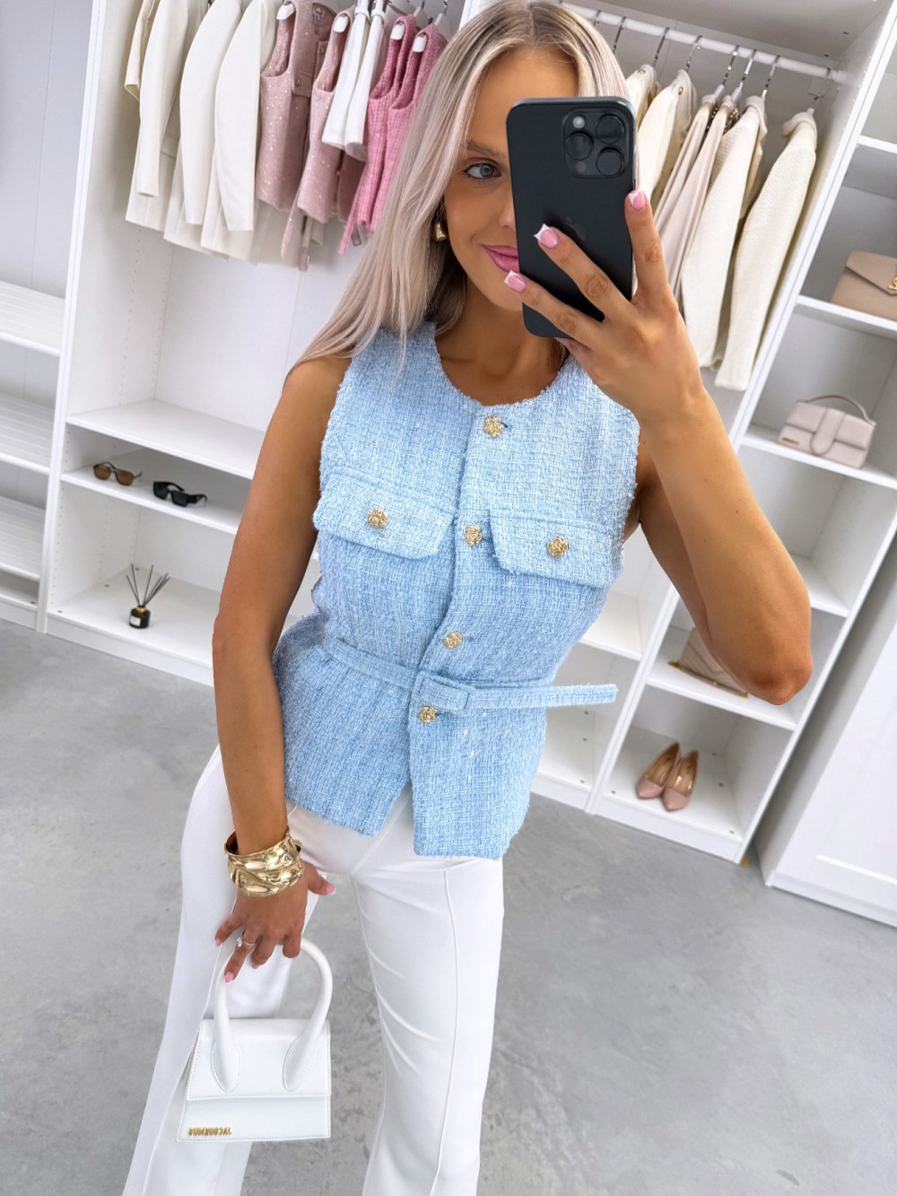 Kuldsete nööpidega vest (Sinine, XS/S)