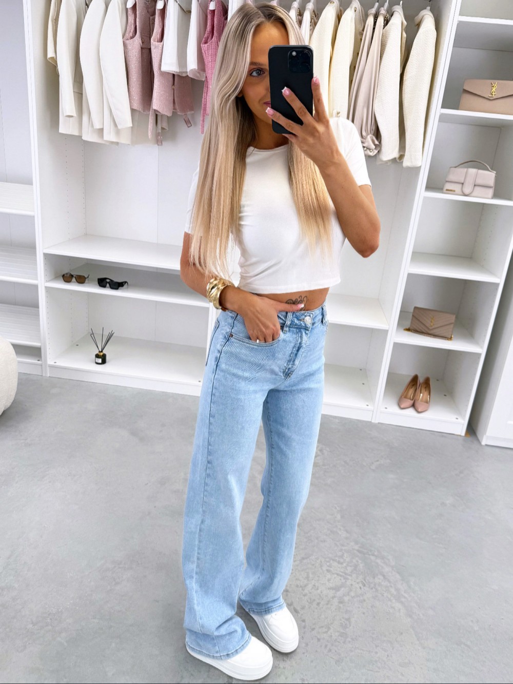 Tamprūs viso ilgio tiesaus kirpimo džinsai (M, Mėlyna)