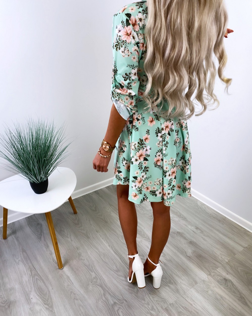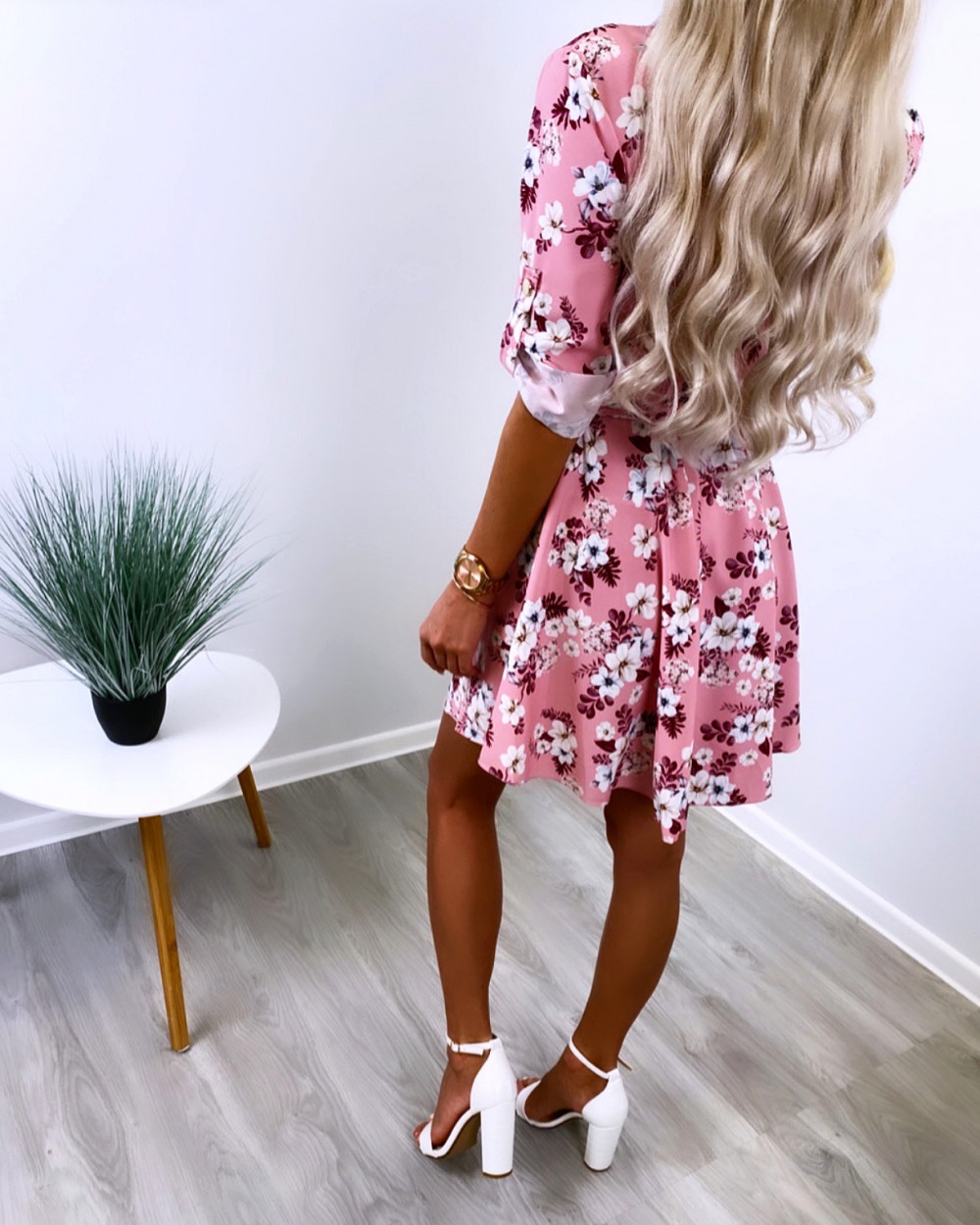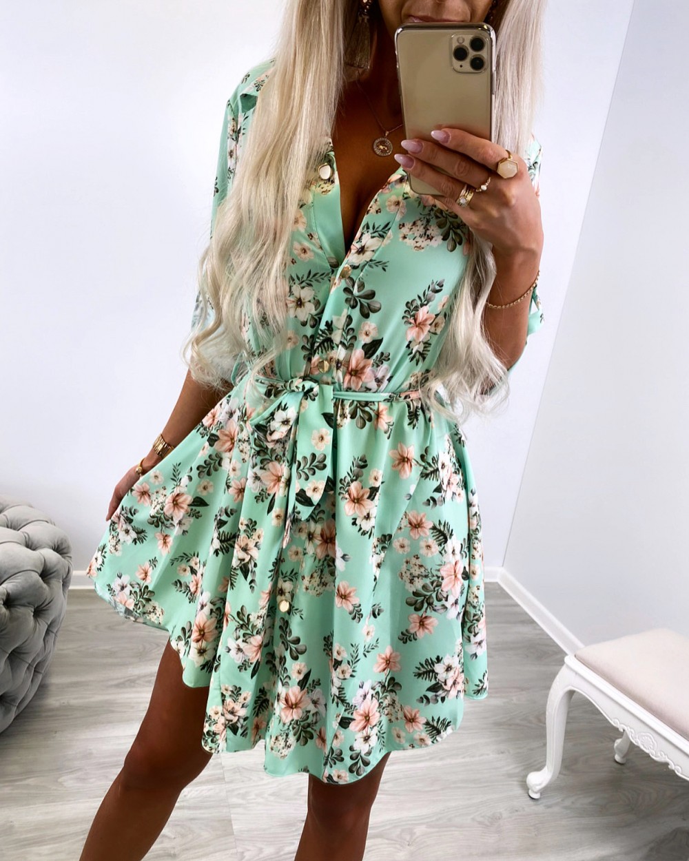 Gėlėta suknelė su diržu (Vienas dydis, Balta)