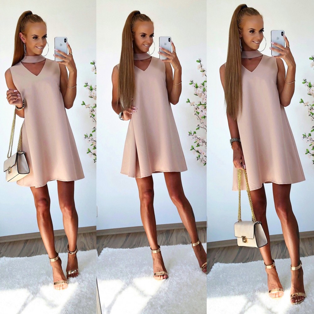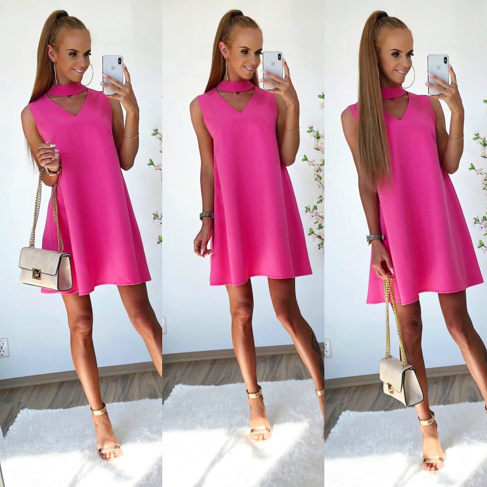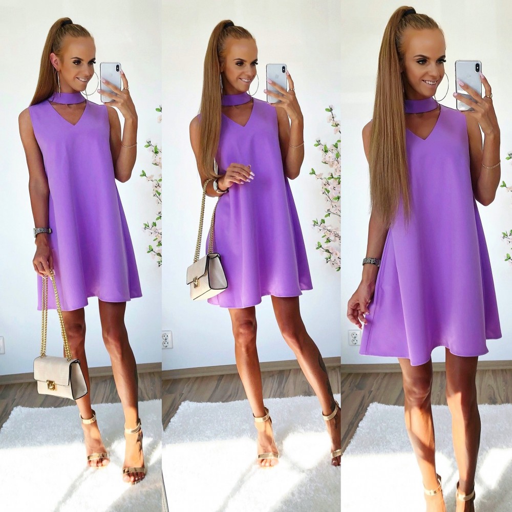 Krentančio audinio suknelė su aukšta apykakle (Vienas dydis, Violetinė)