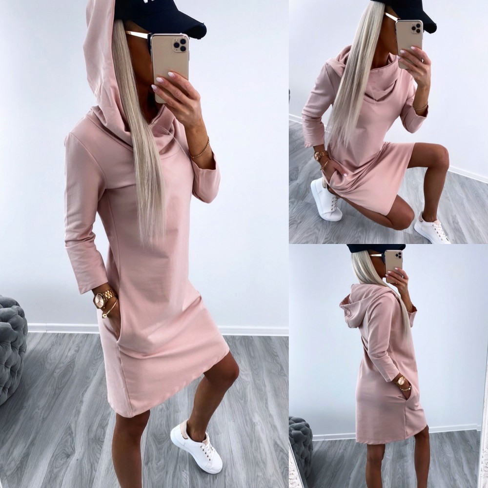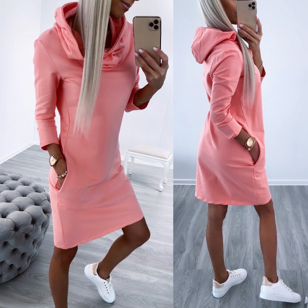 Medvilninė laisvalaikio suknelė (Vienas dydis, Koralų)
