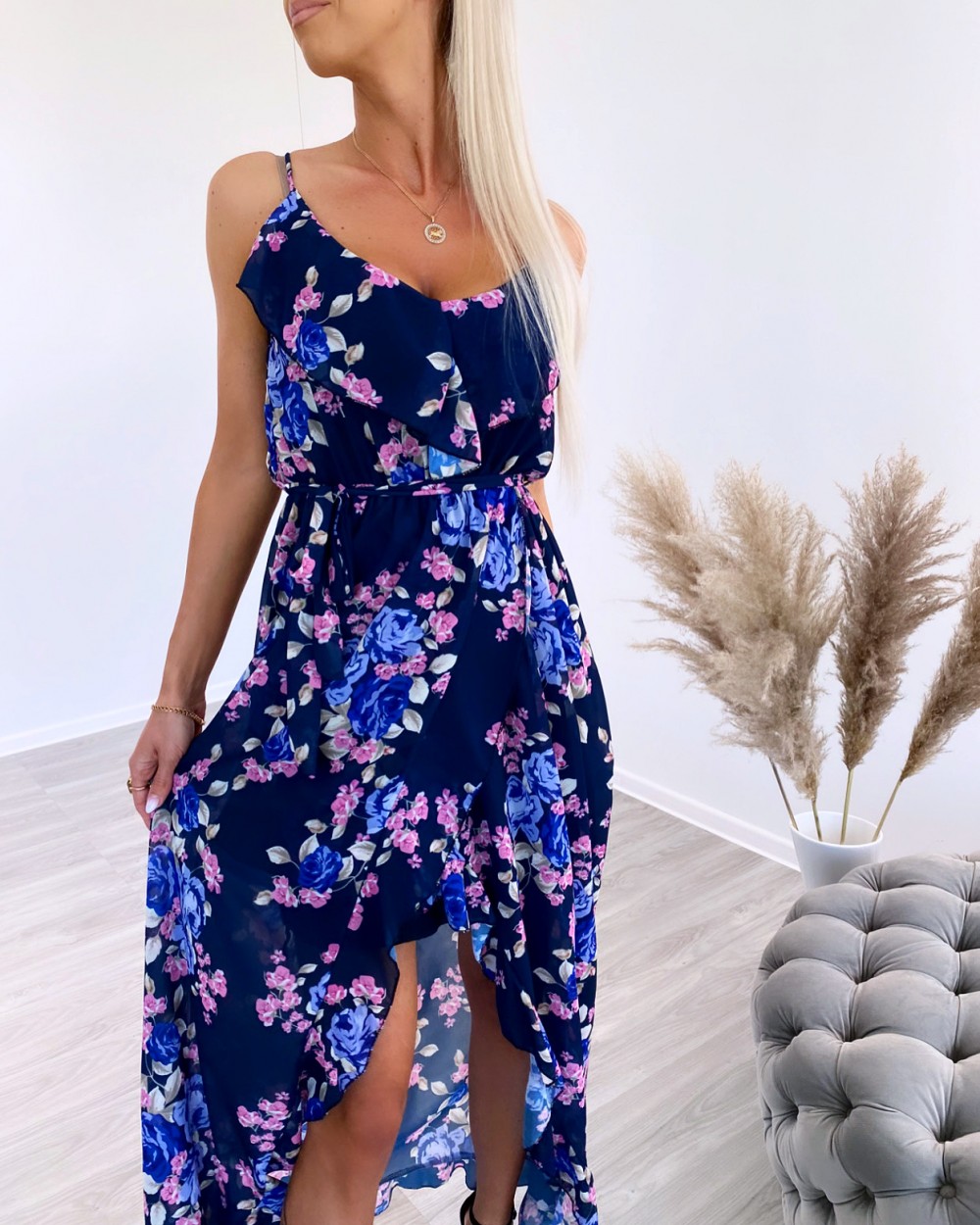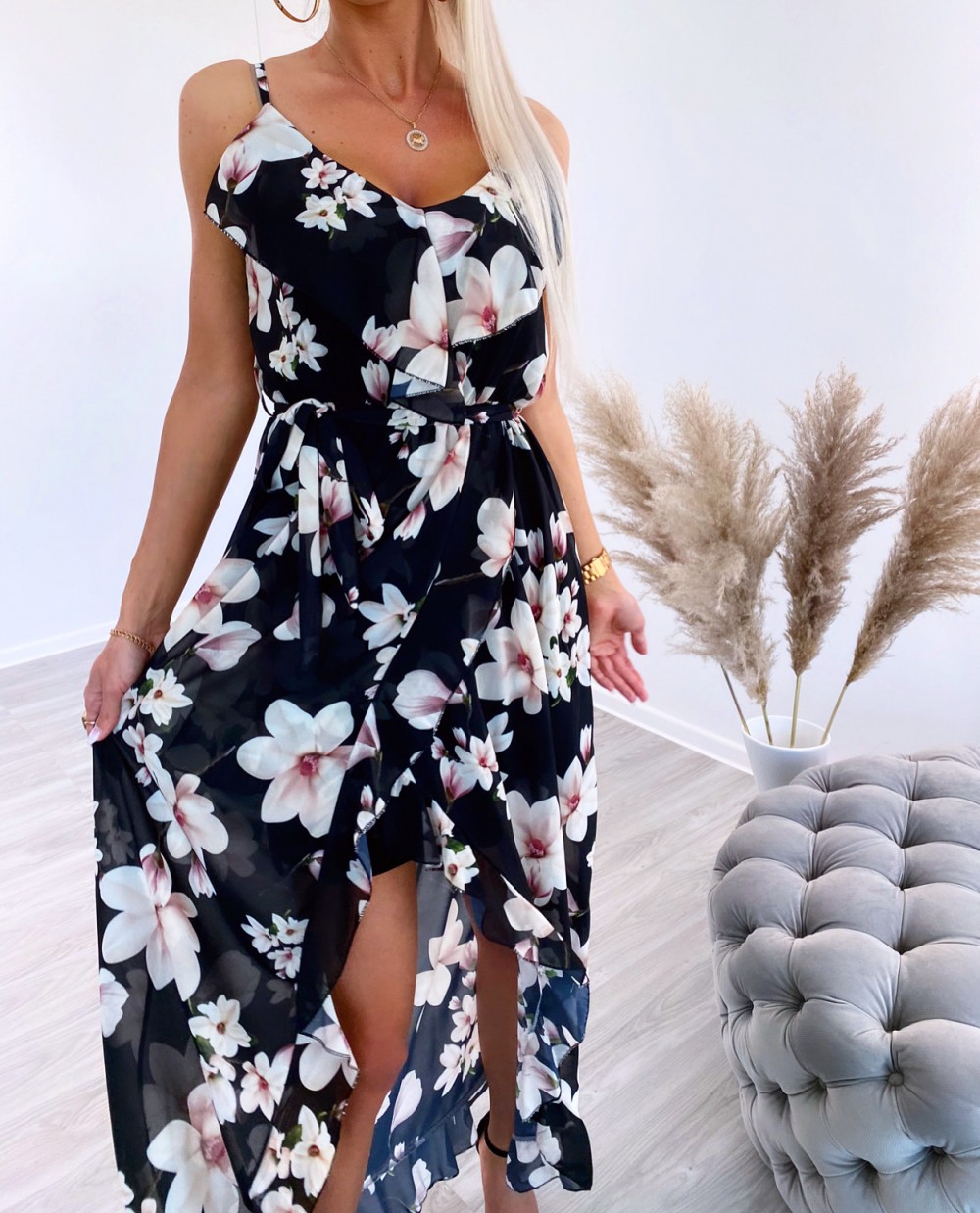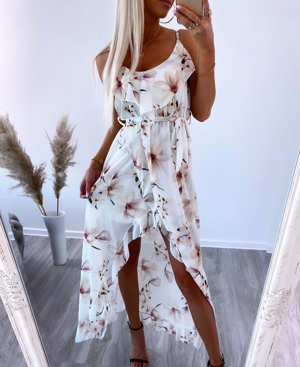 Trijų ketvirčių ilgio suknelė su gėlių raštu (Vienas dydis, Rožinis)