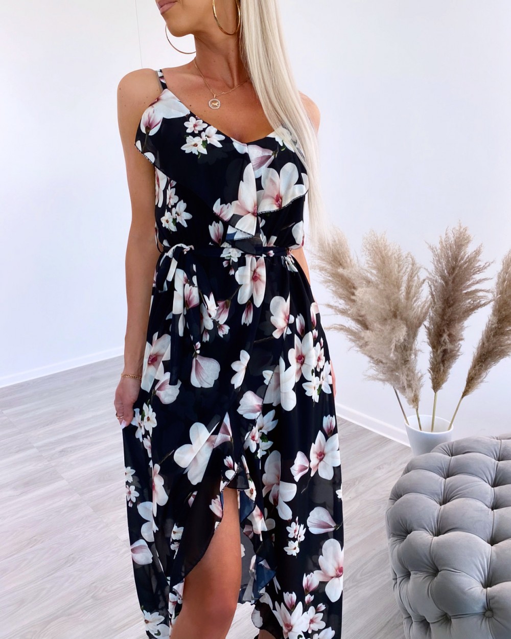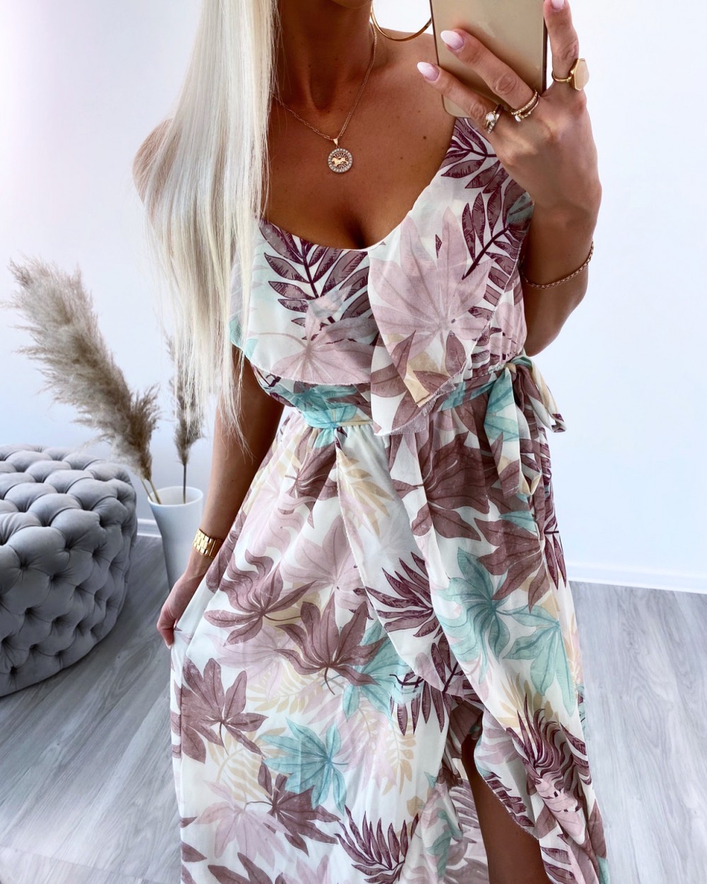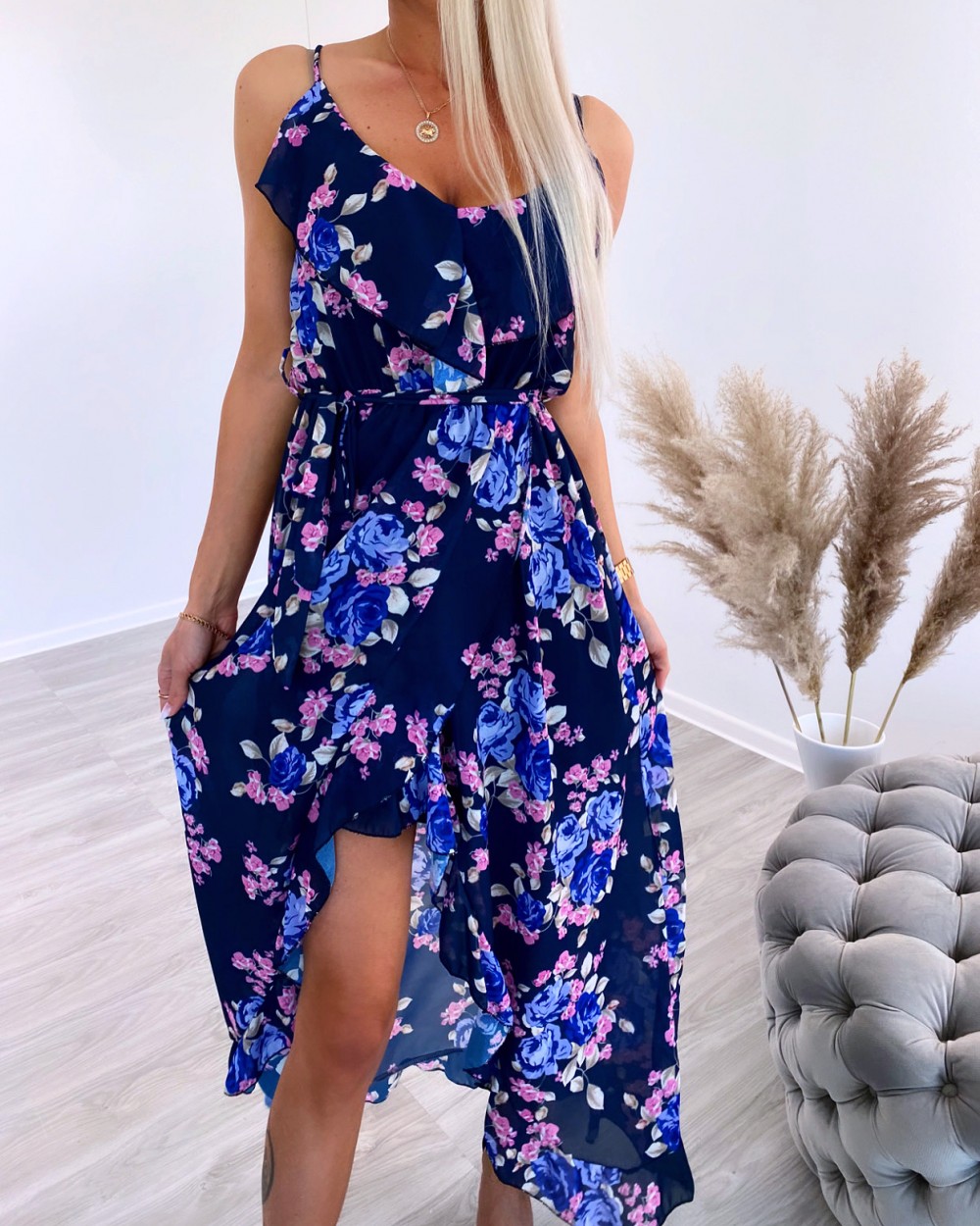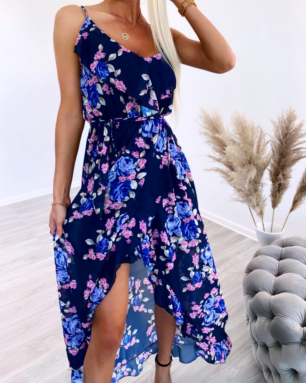 Trijų ketvirčių ilgio suknelė su gėlių raštu (Vienas dydis, Rožinis)