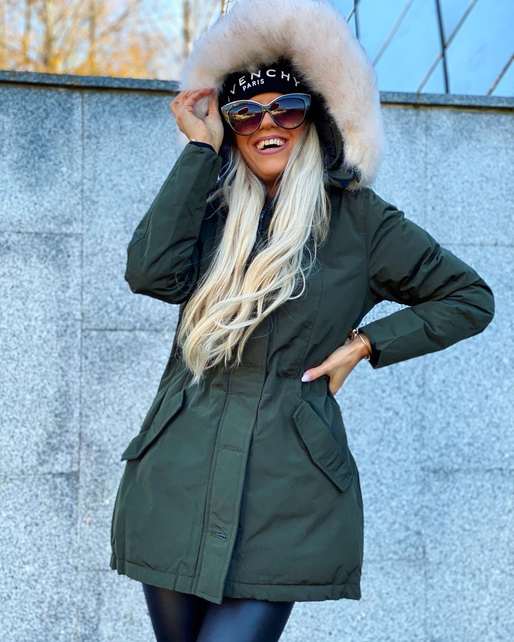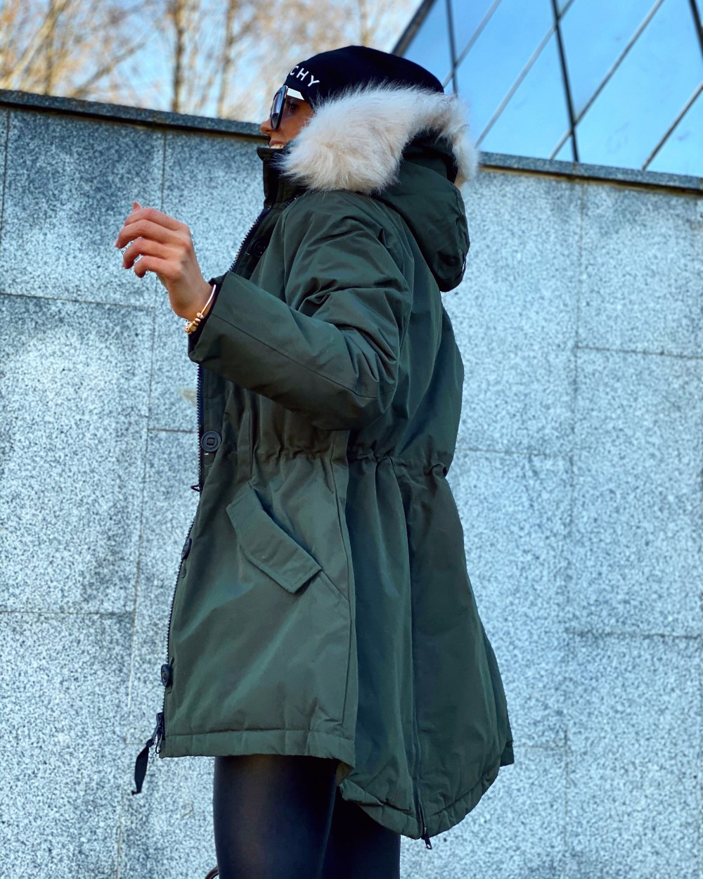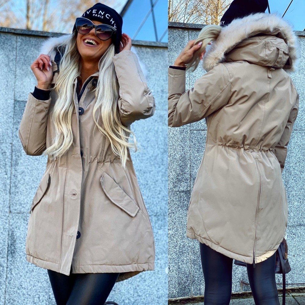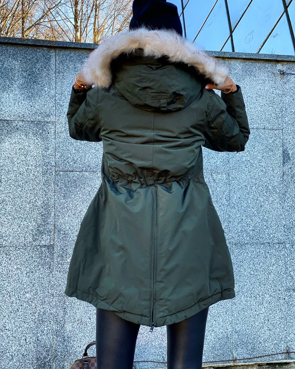 Vėjui ir vandeniui atspari žieminė striukė. Galima reguliuoti nuo vidurio.