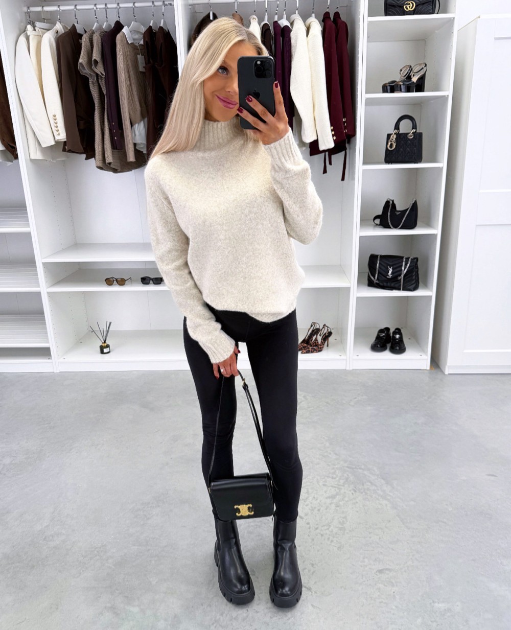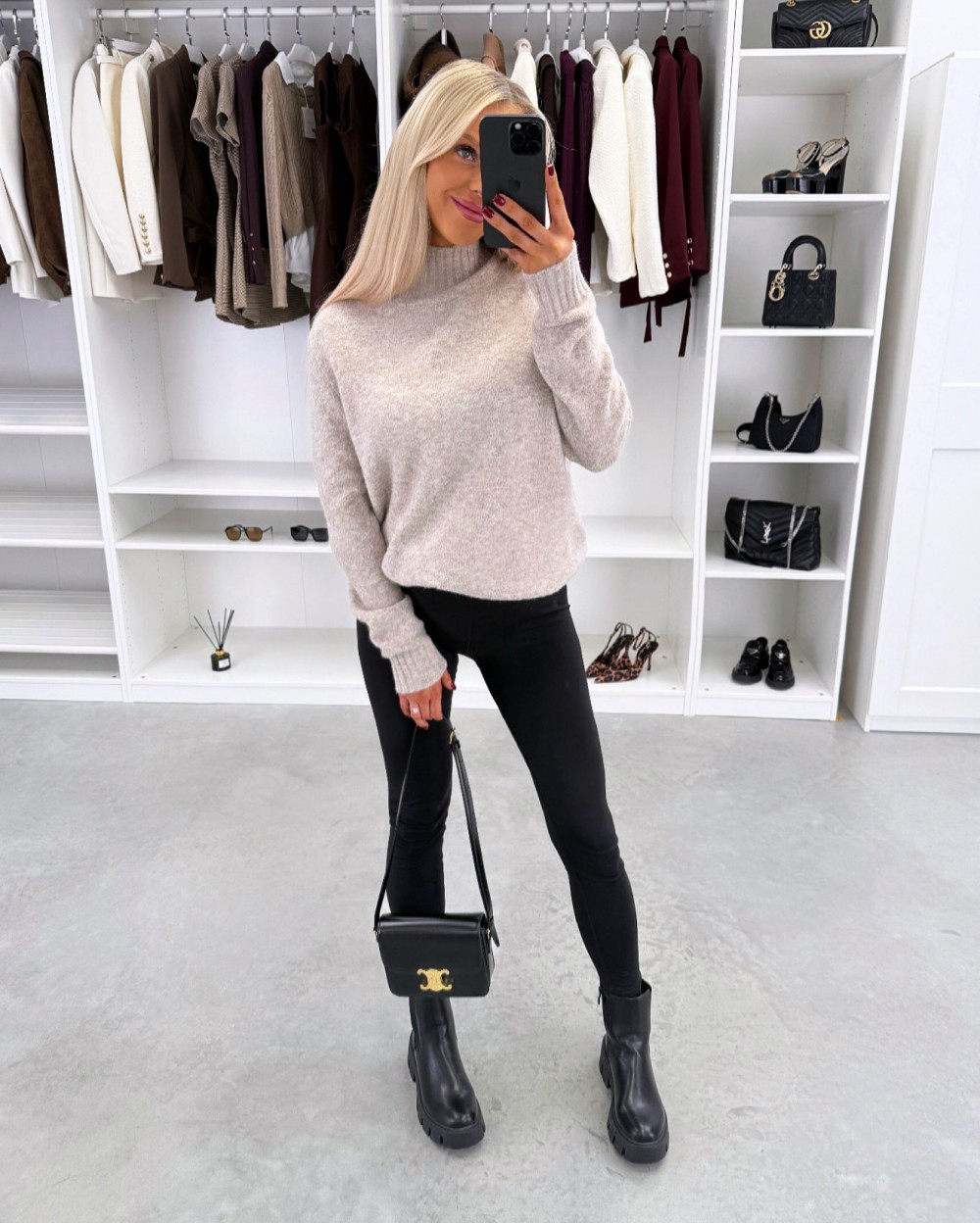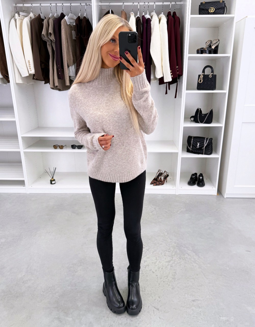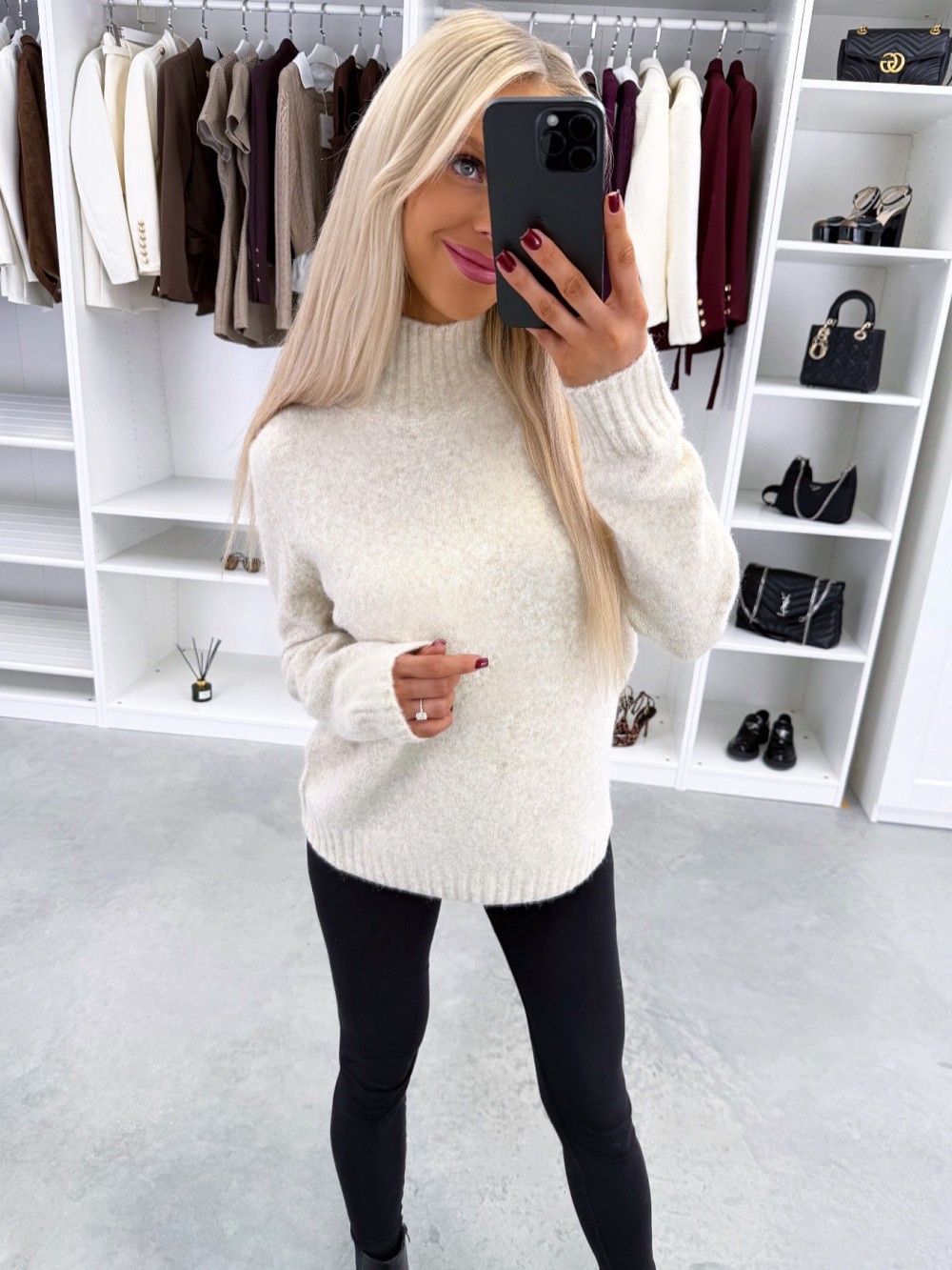 Minkštas megztinis aukštu kaklu (Vienas dydis, Šviesiai smėlio spalvos)