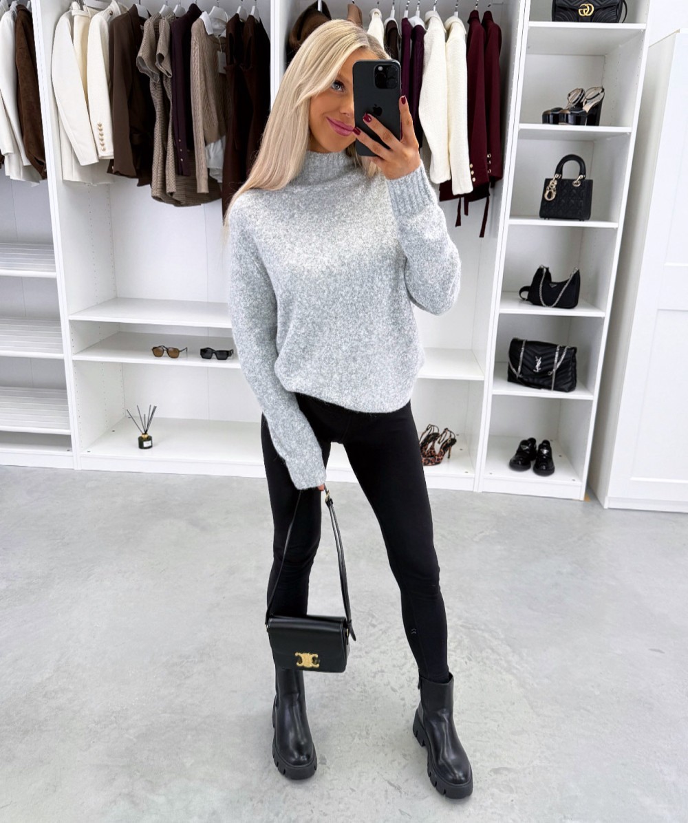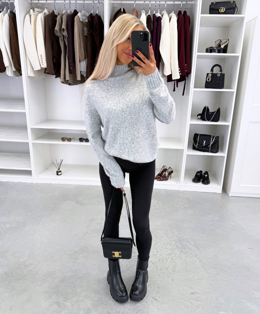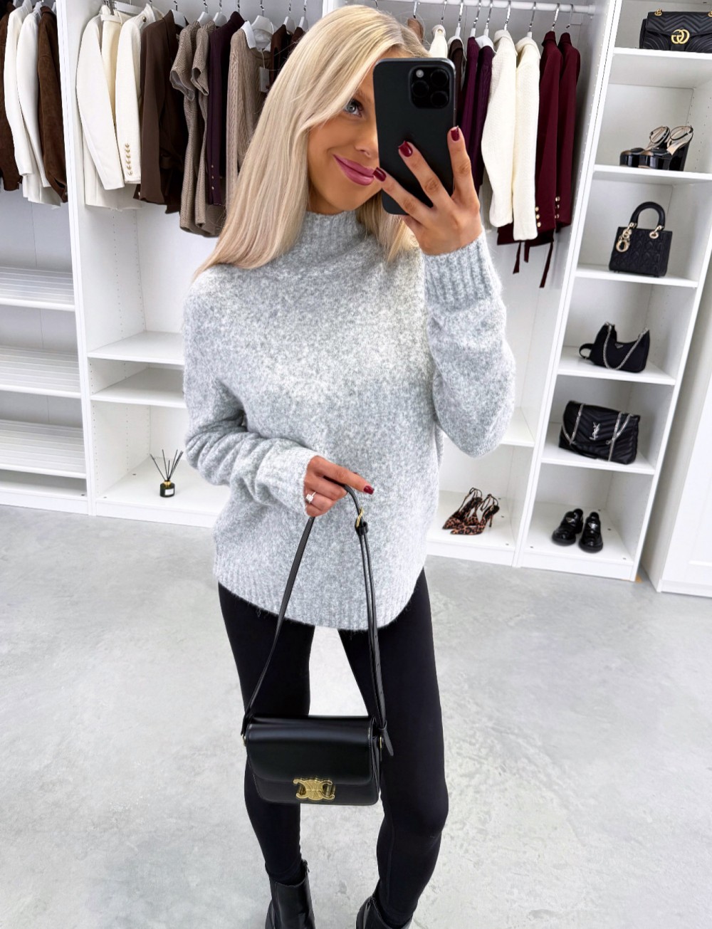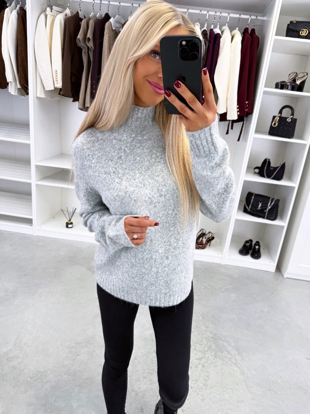 Minkštas megztinis aukštu kaklu (Vienas dydis, Šviesiai smėlio spalvos)