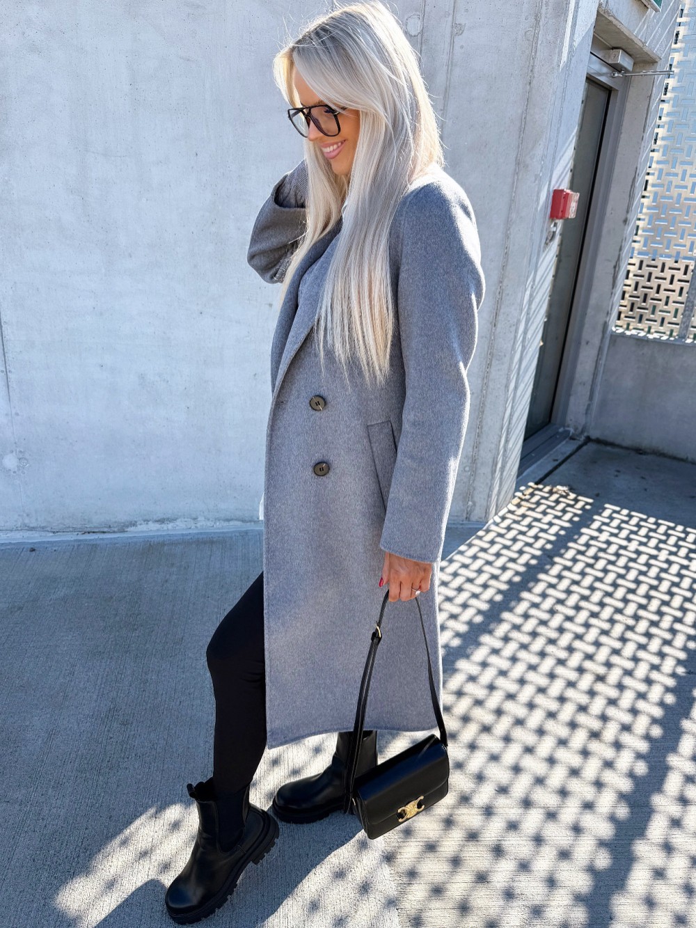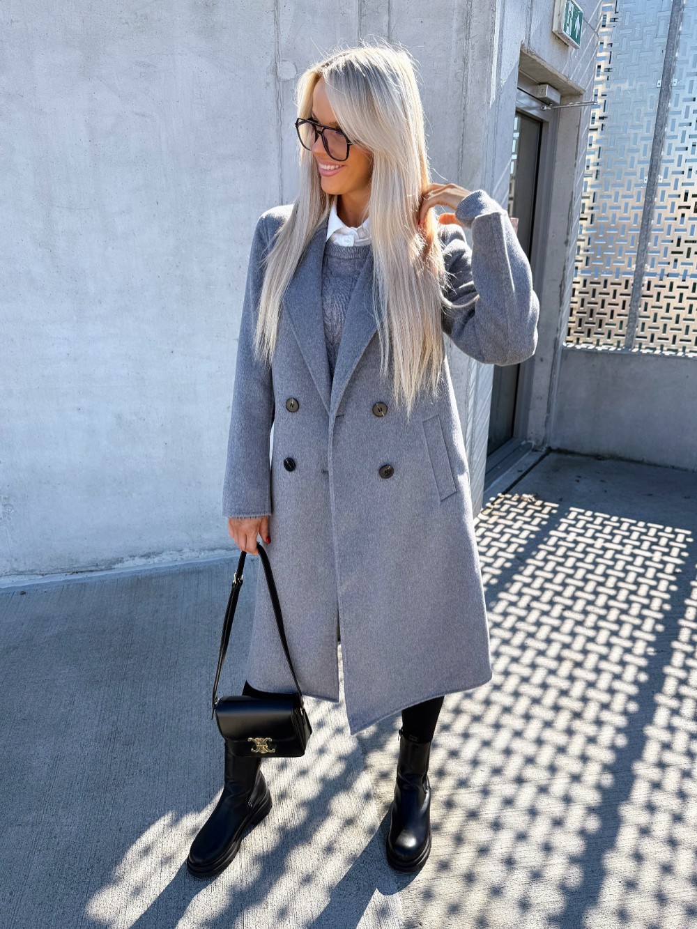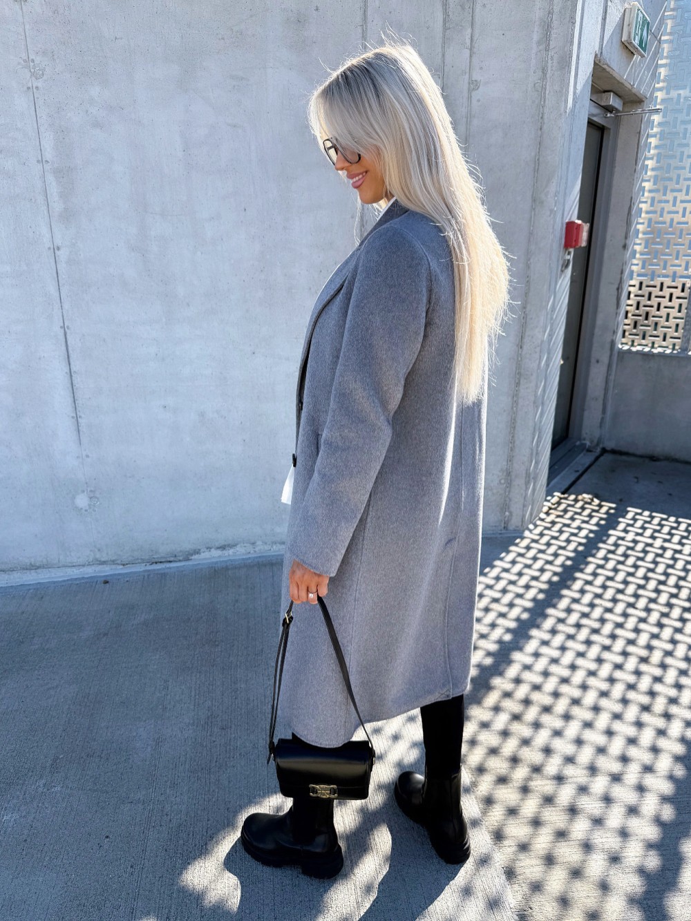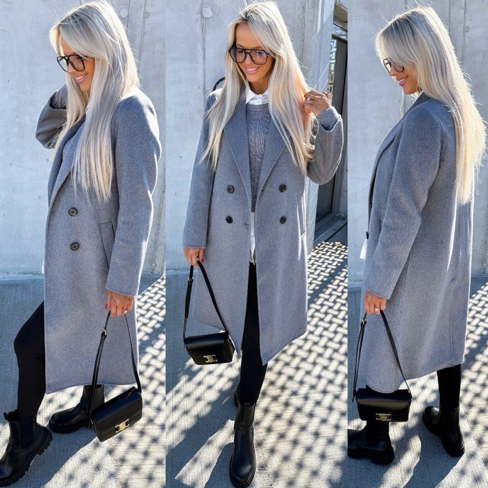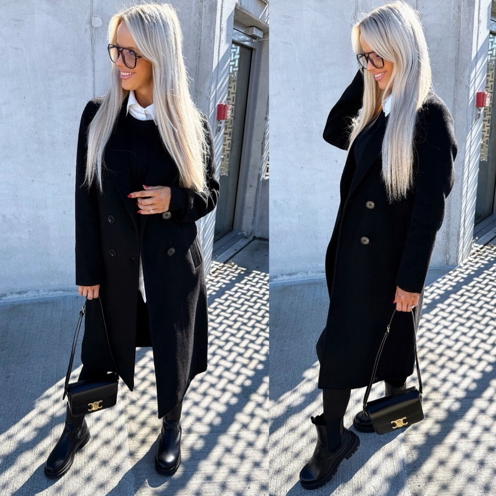 Vilnonis paltas su sagomis (Juoda, M/L)