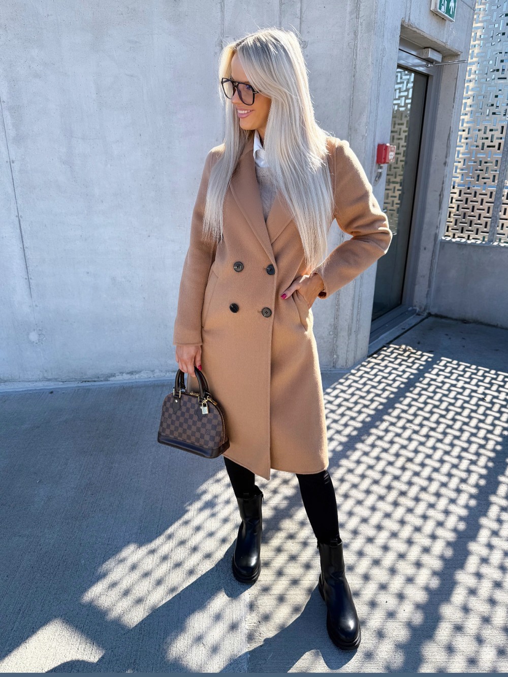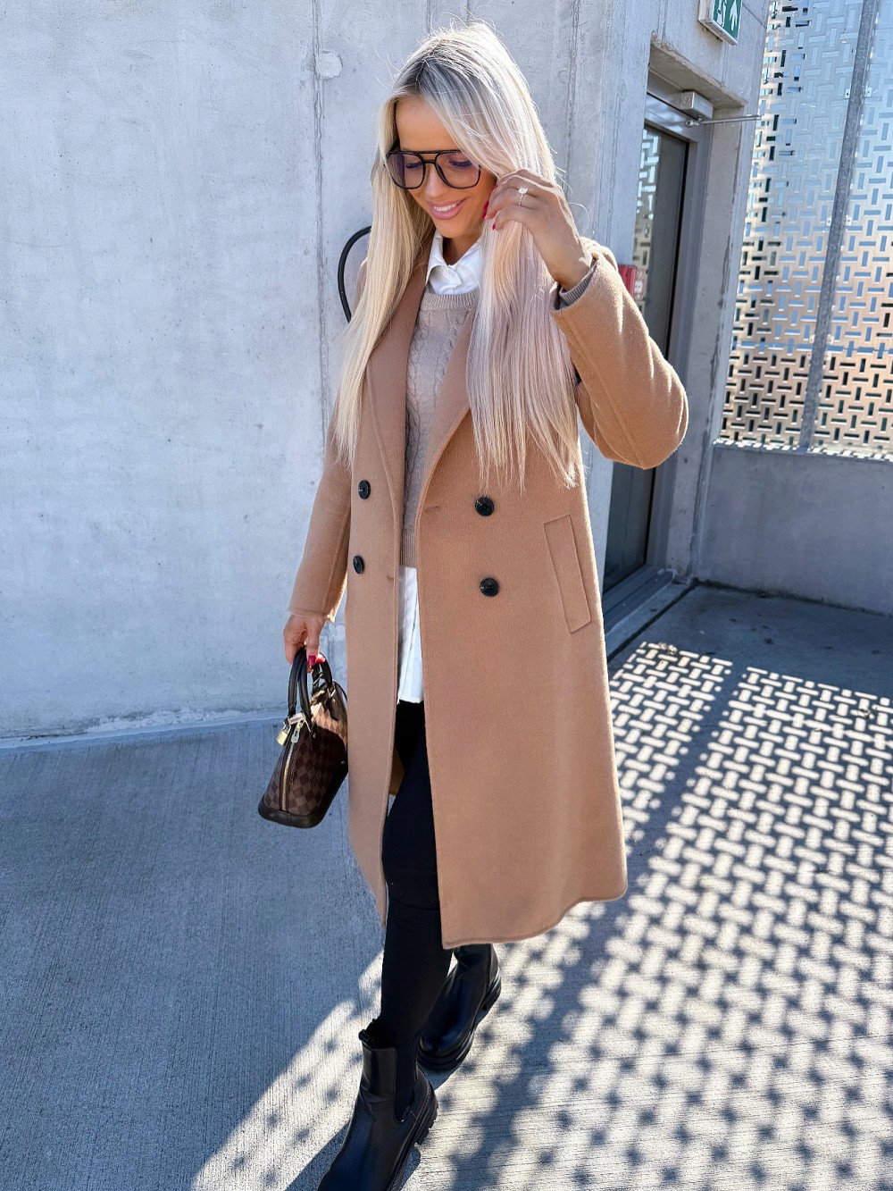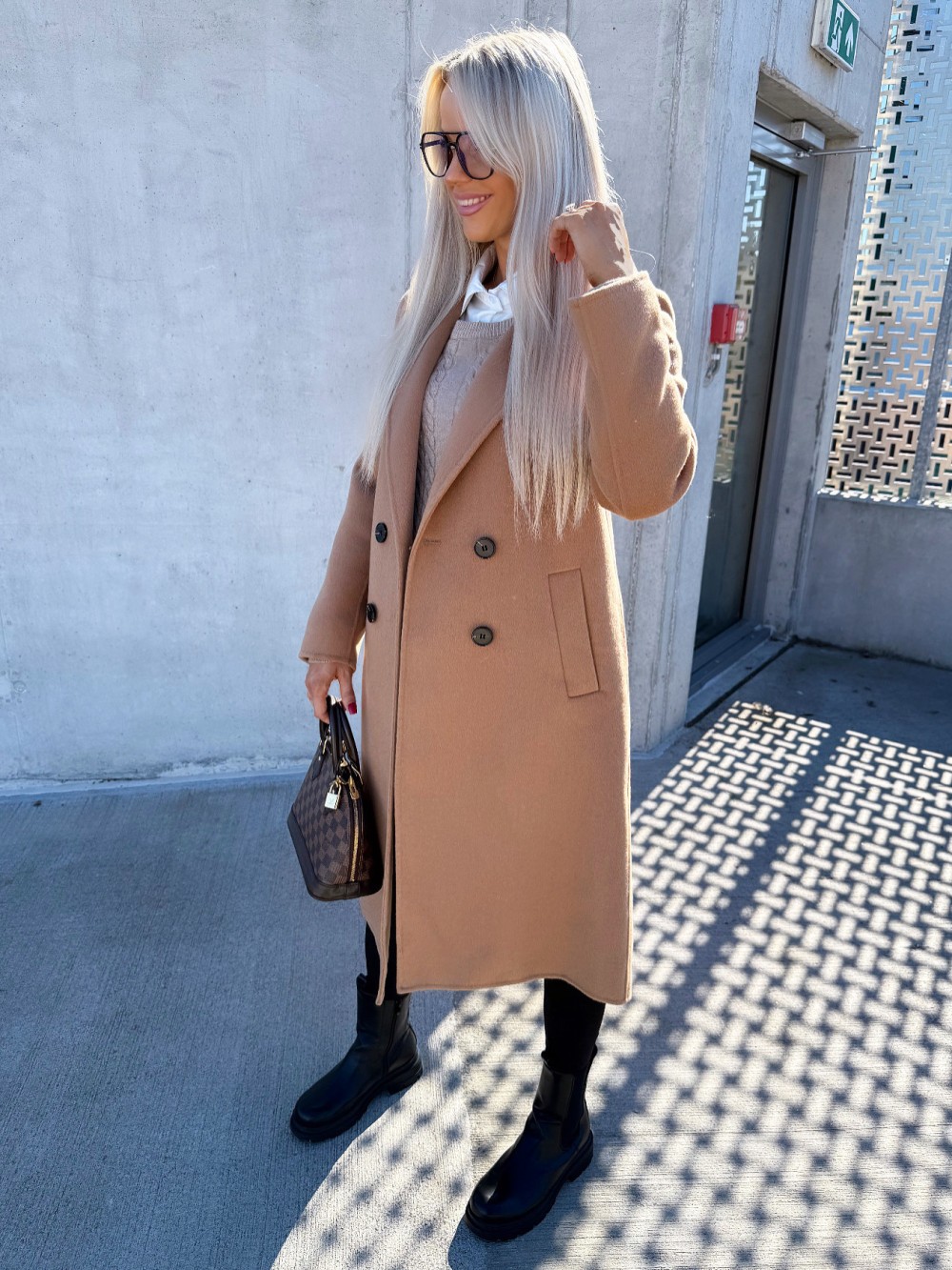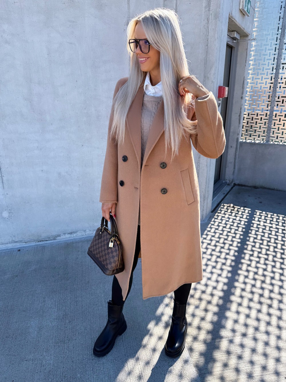 Vilnonis paltas su sagomis (Juoda, M/L)