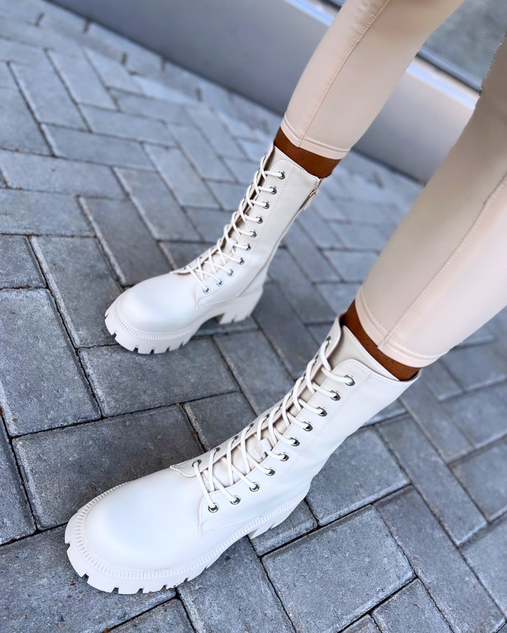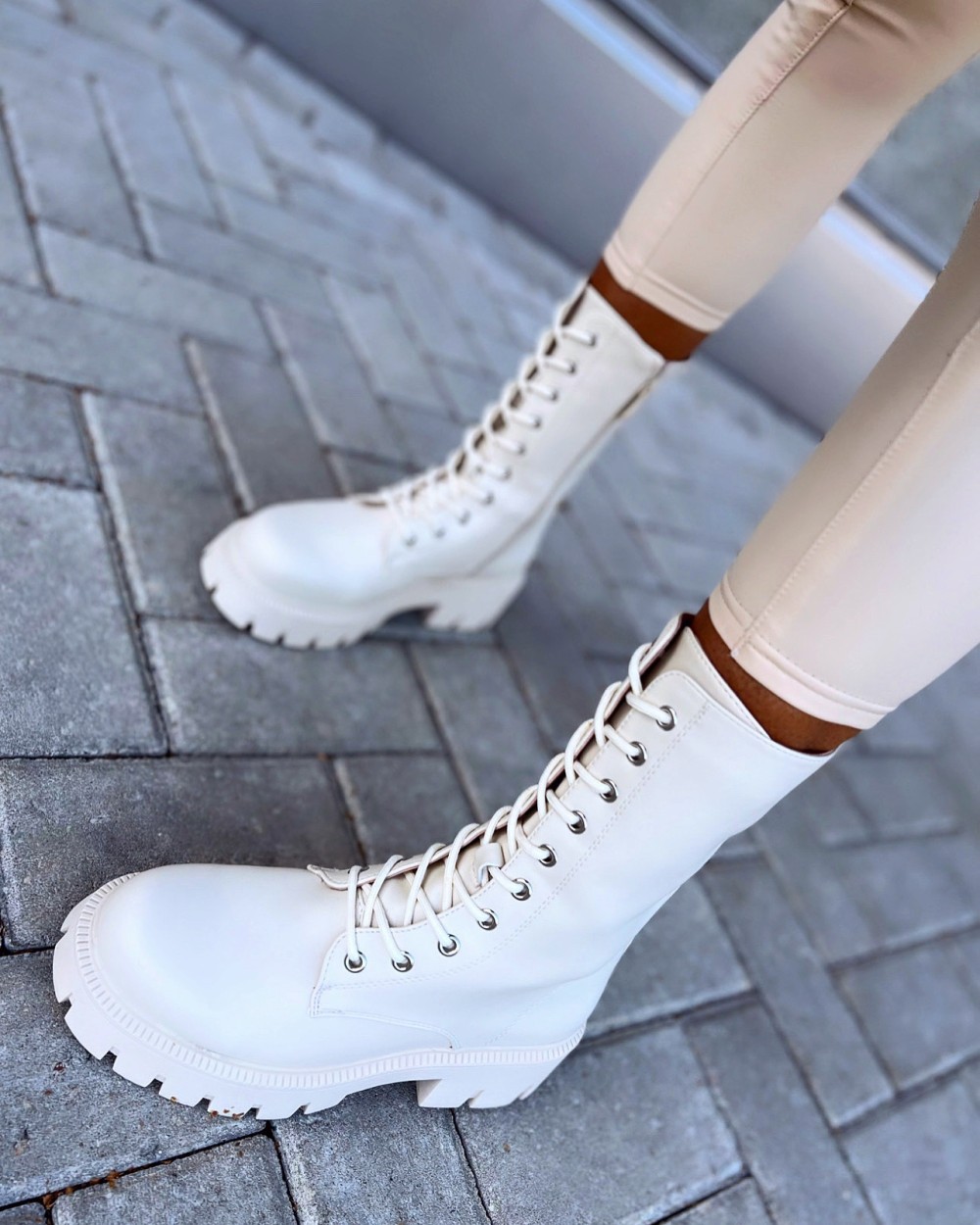 Ērti zābaki ar šņorēm (38, Gaiši bēša)