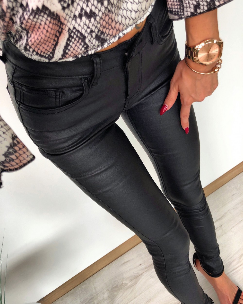 Mākslīgās ādas bikses (elastīgas) (S, Melns)