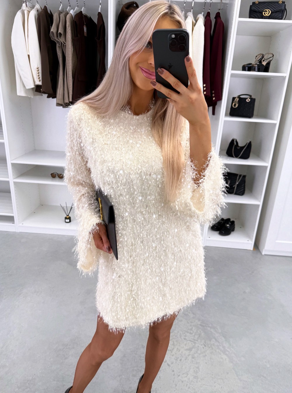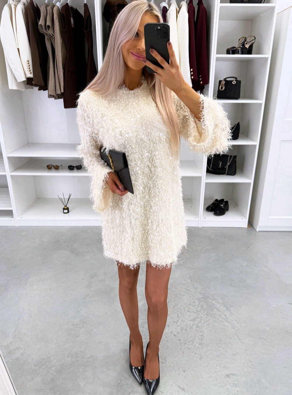 Maiga, brīvi krītoša kleita ar fliteriem (M, Gaiši bēša)