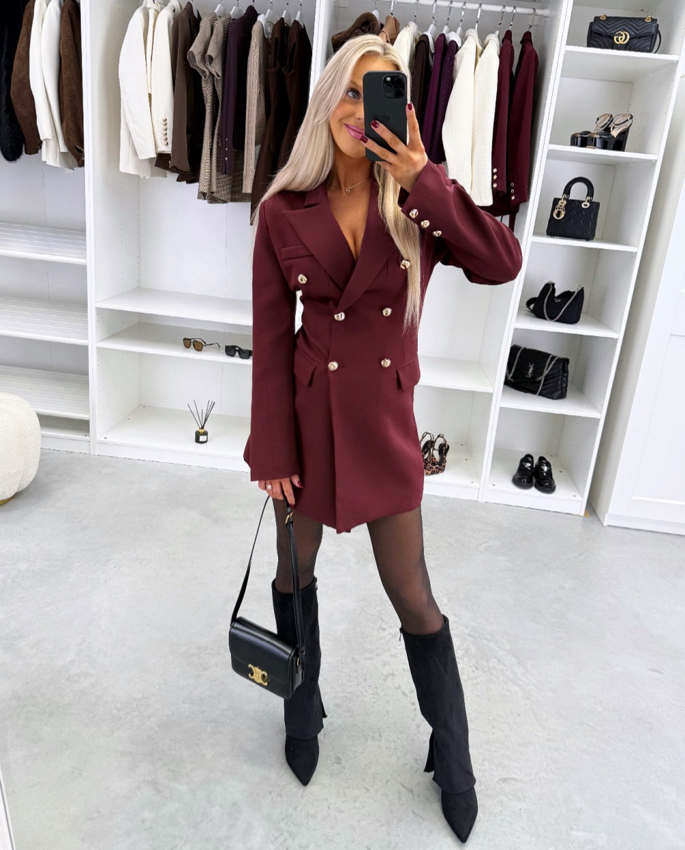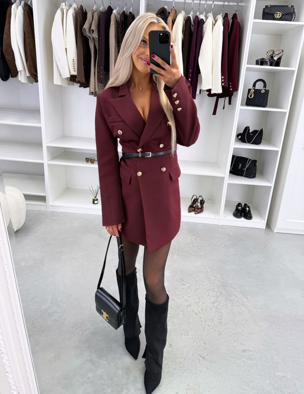 Žakete-kleita ar jostu (S, Tumši sarkans)