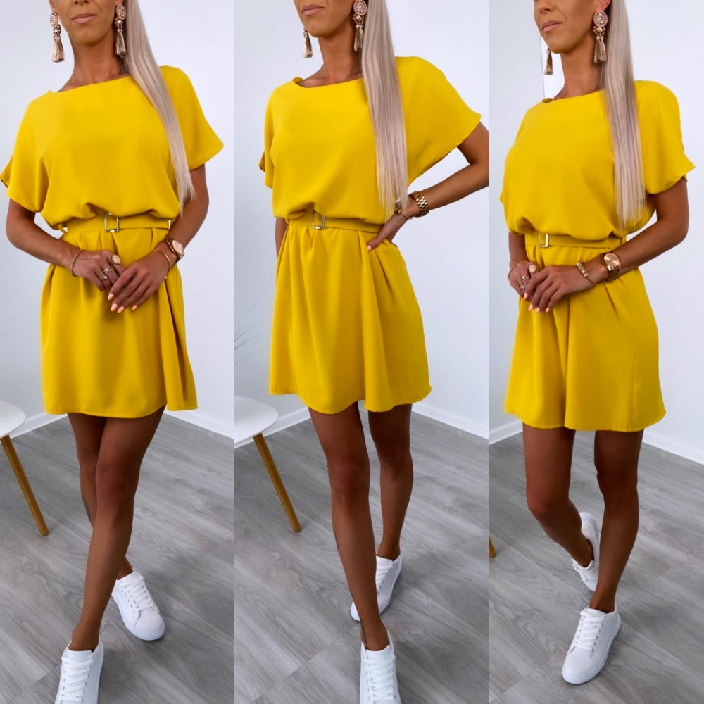 Ikdienas kleita ar jostu (Viens izmērs, Dzeltens)