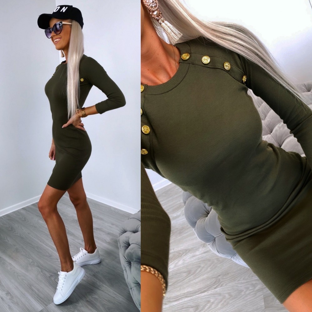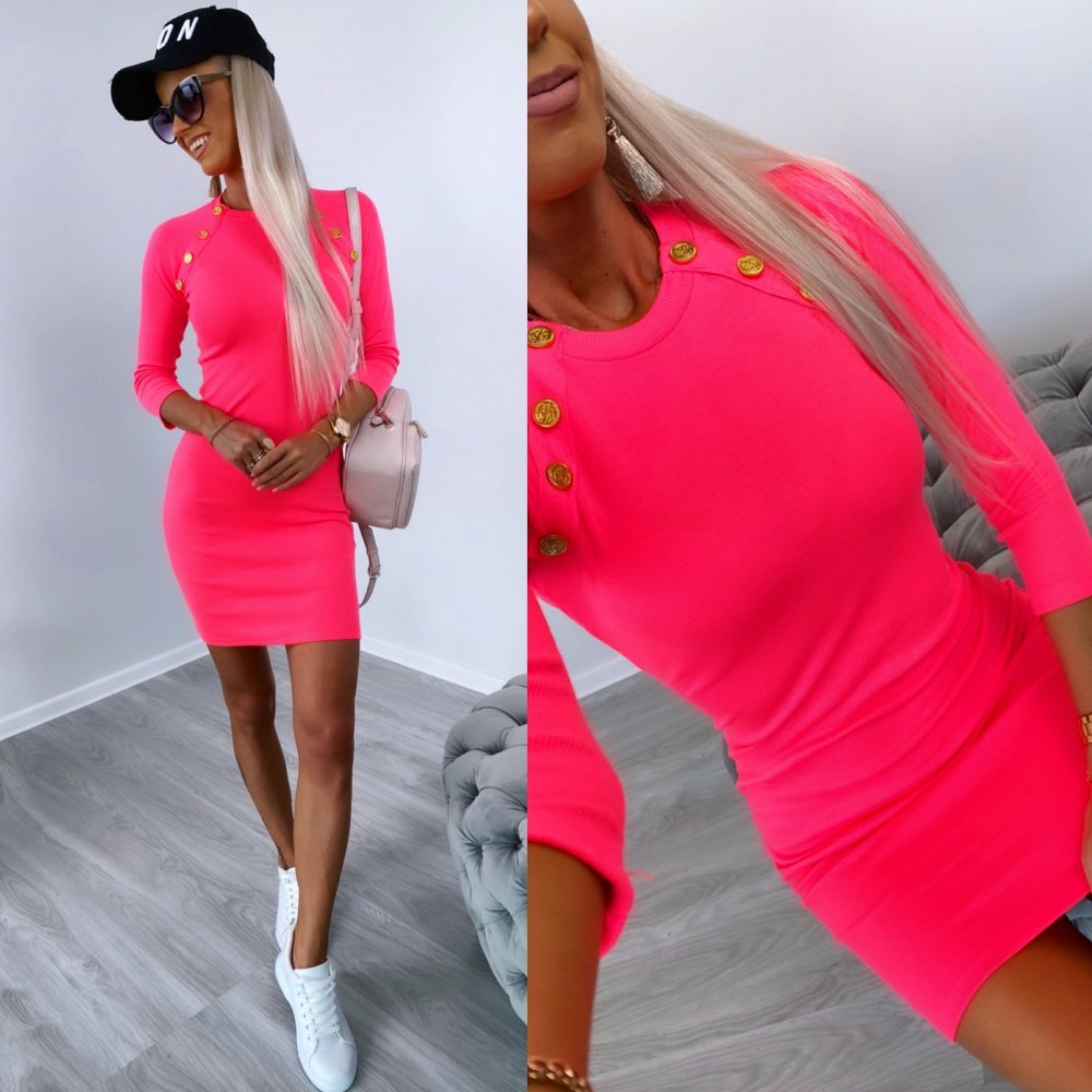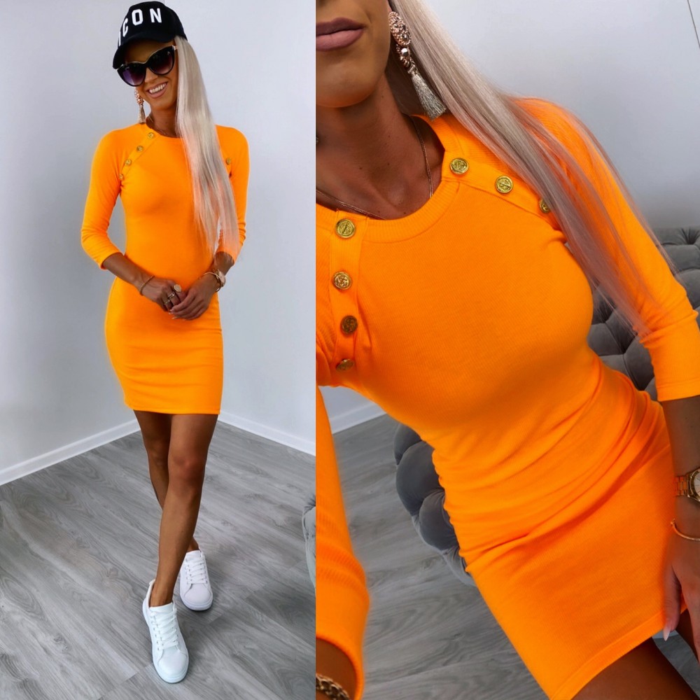 Ikdienas kleita ar zelta pogām (Viens izmērs, Apelsīns)