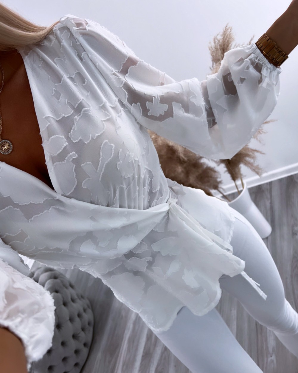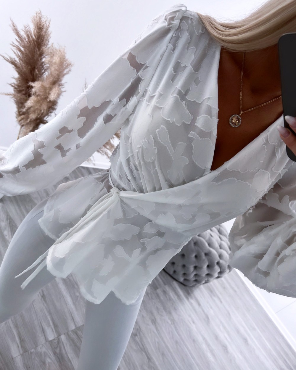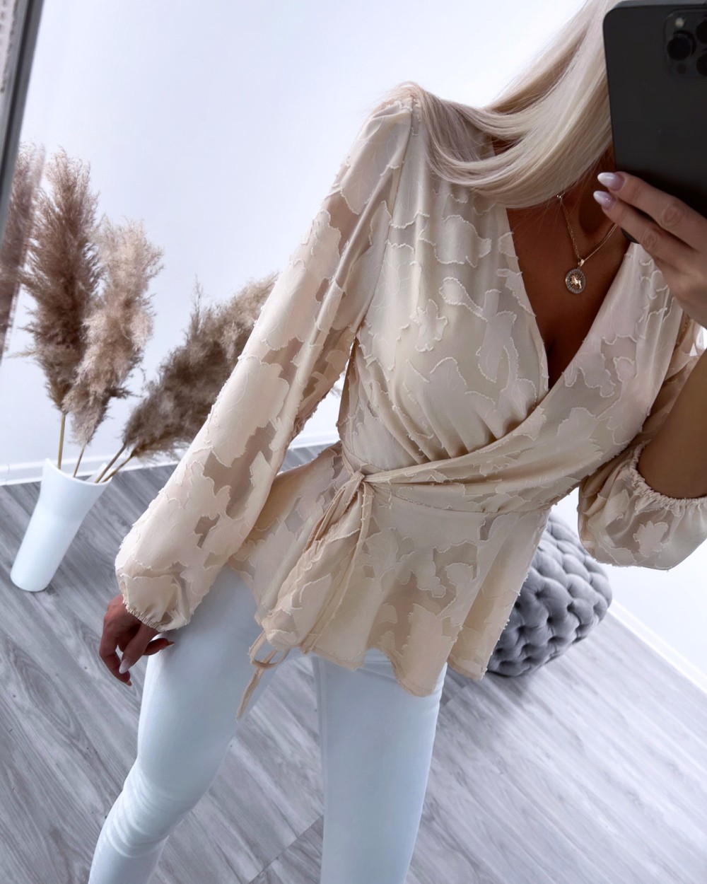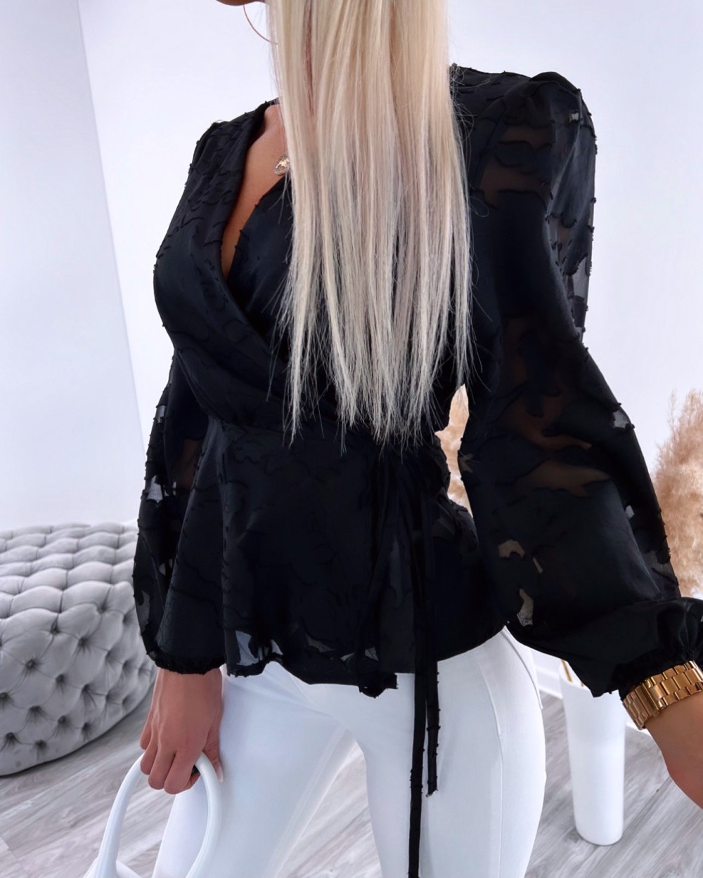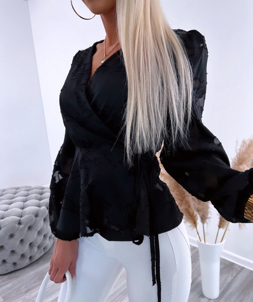Aptinama blūze ar ziedu rakstu (Melns, S/M)