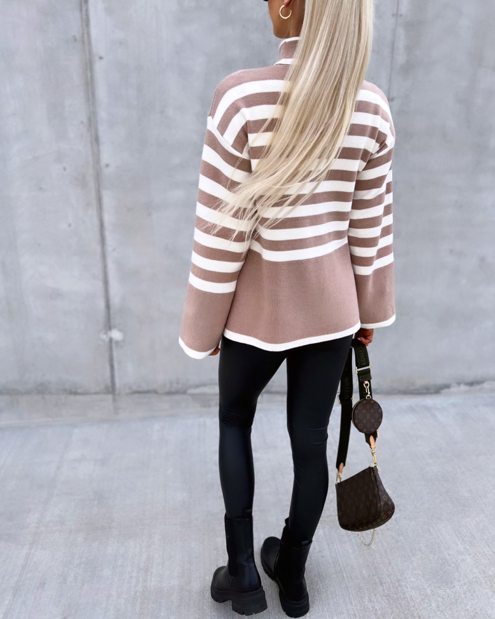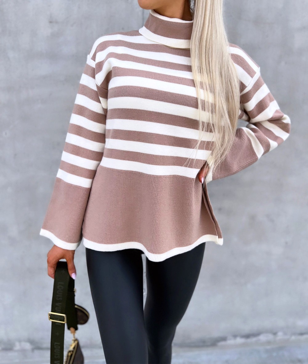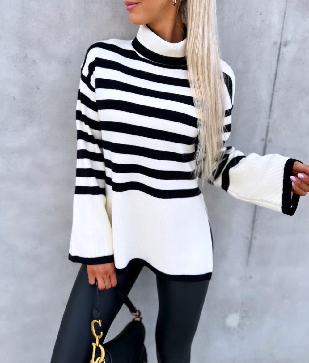 Svītrains džemperis ar apkakli (Viens izmērs, Balts)