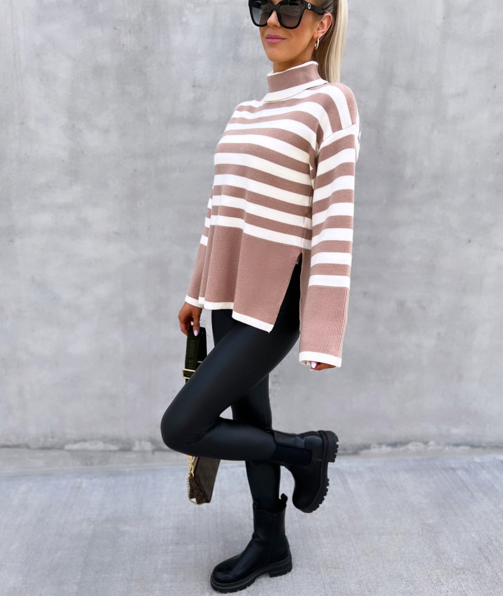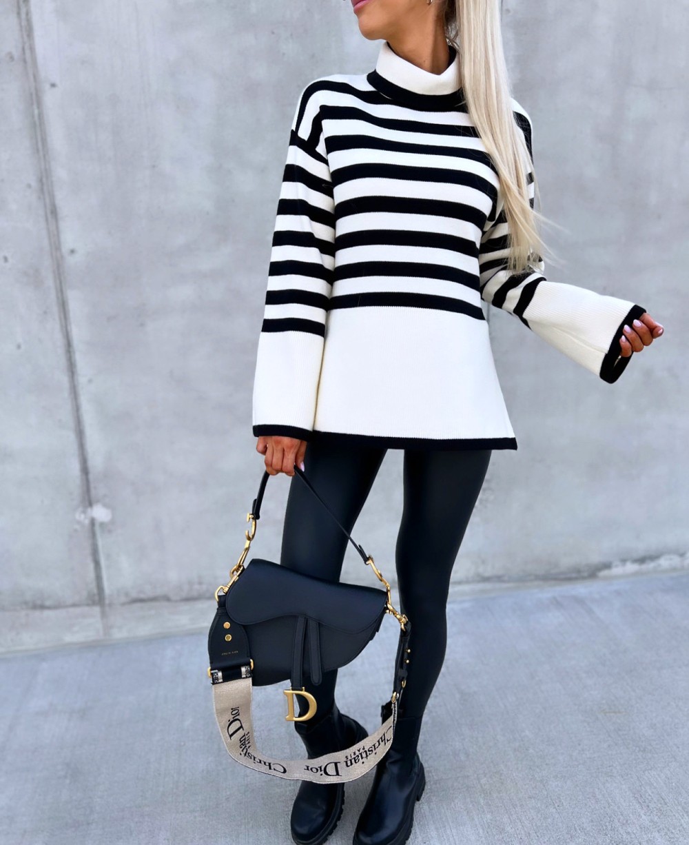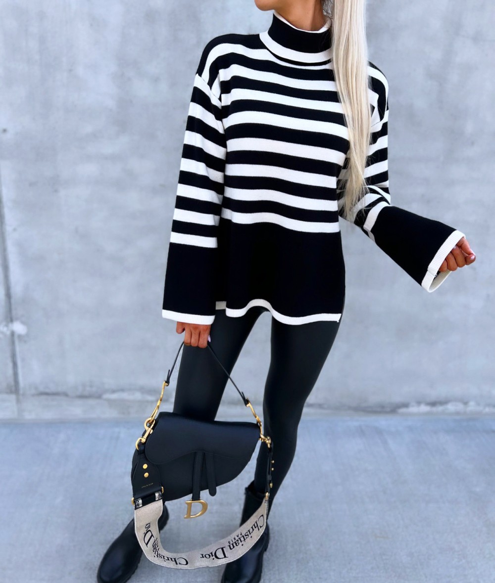 Svītrains džemperis ar apkakli (Viens izmērs, Balts)