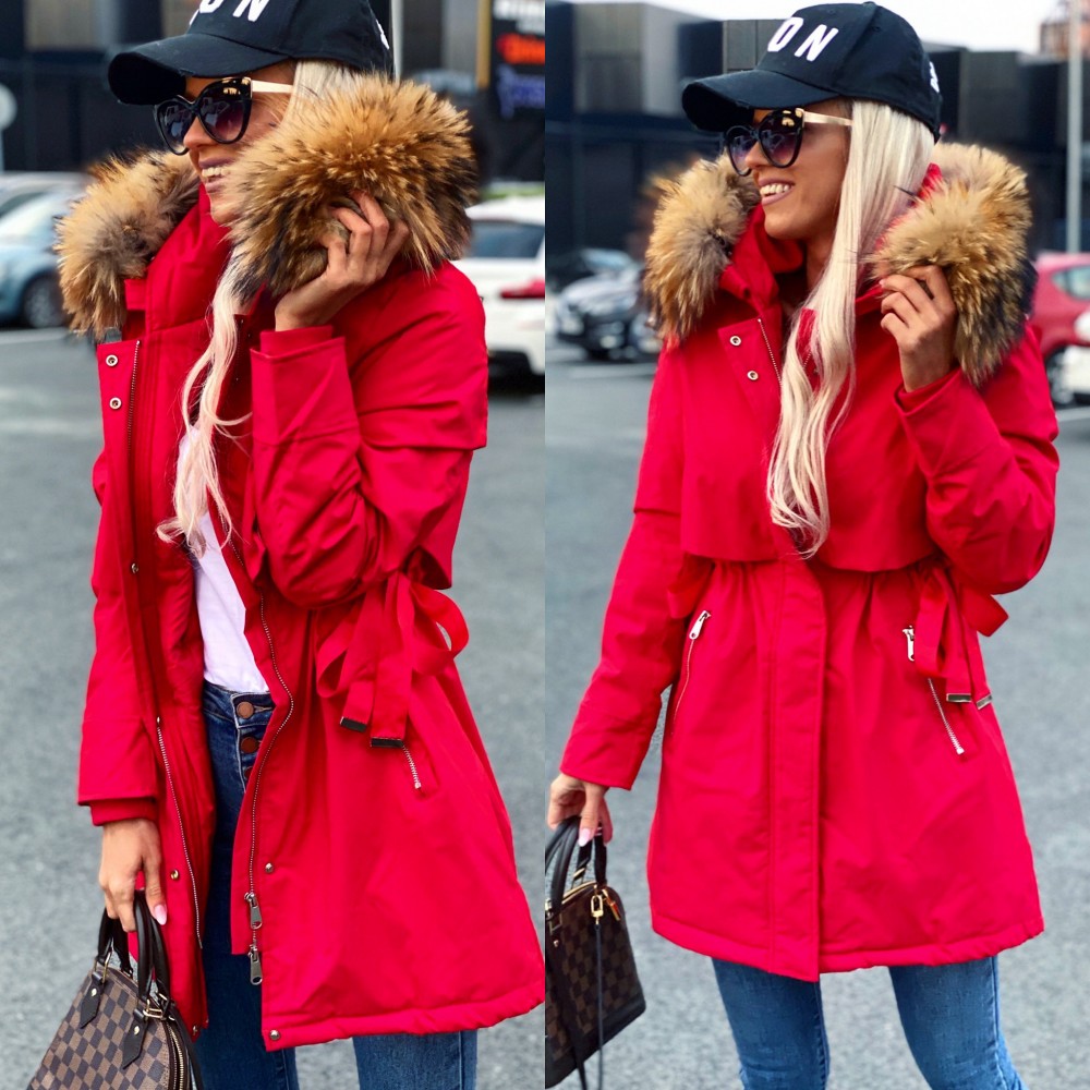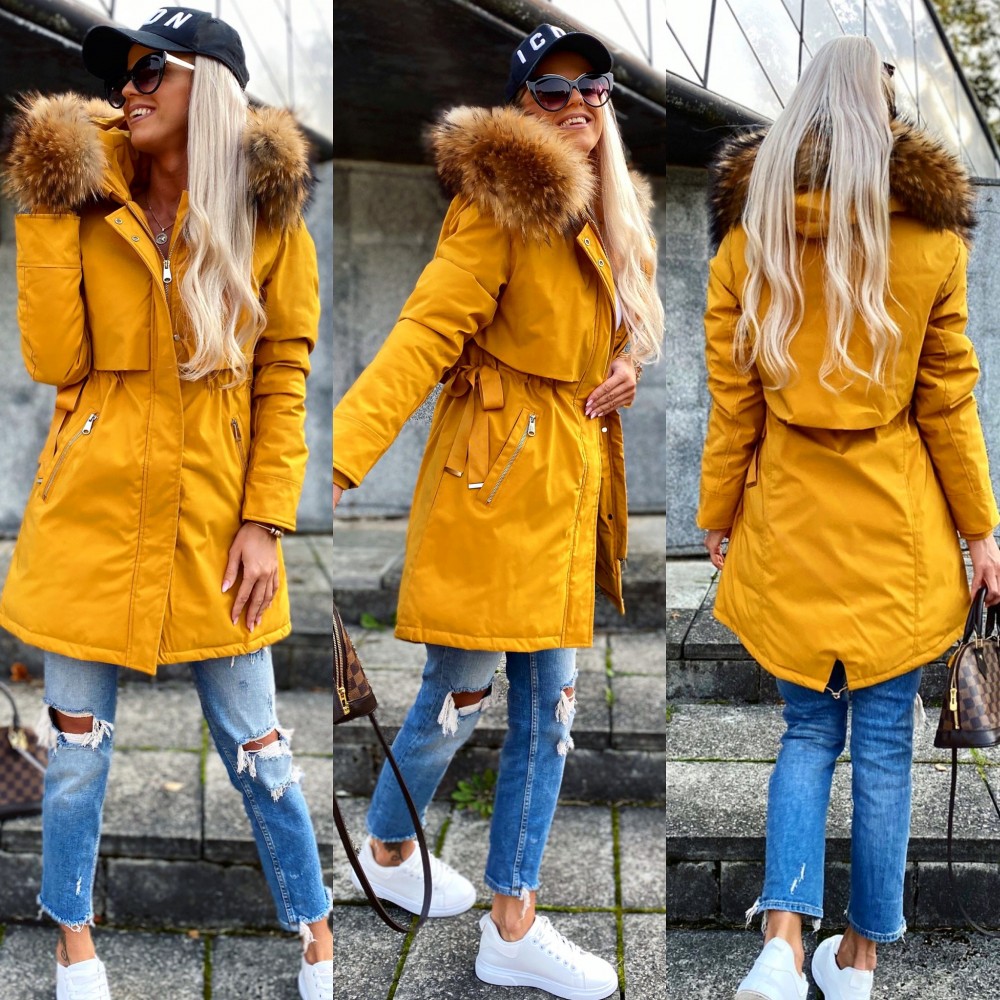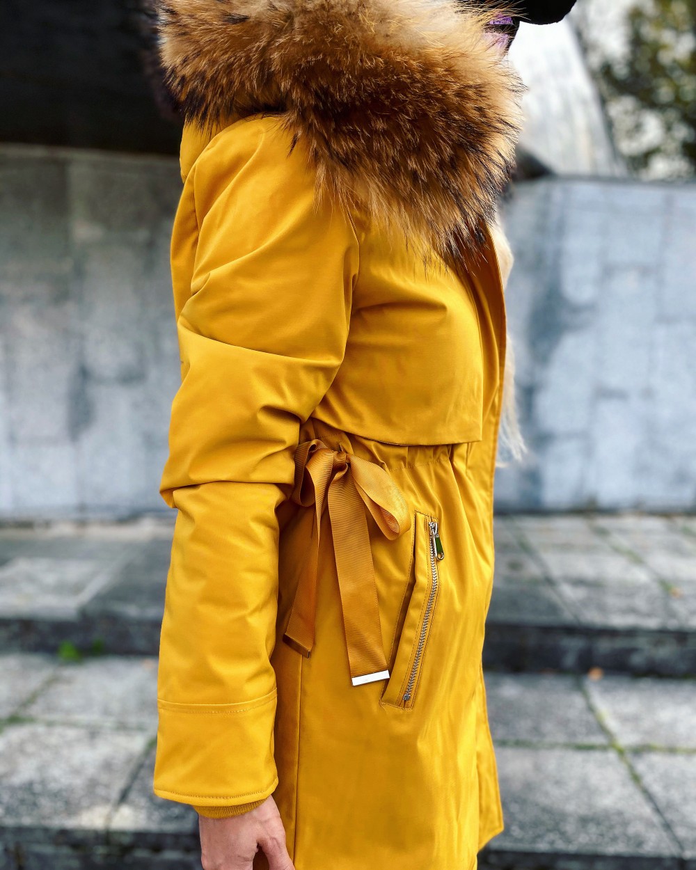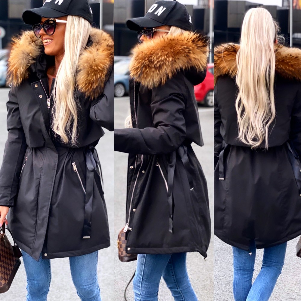 Ziemas parka ar dabisku kažokādu un regulējamu jostasvietu (S, Melns)